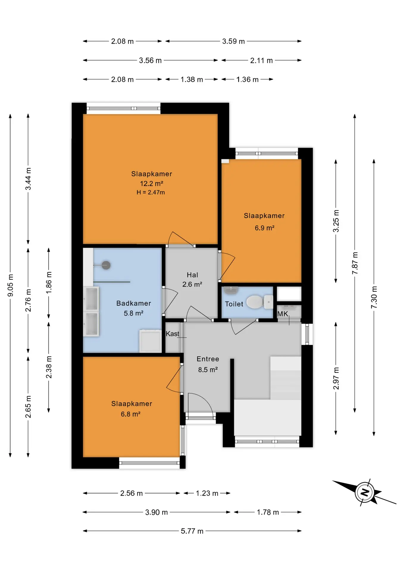 - Drie volwaardige slaapkamers