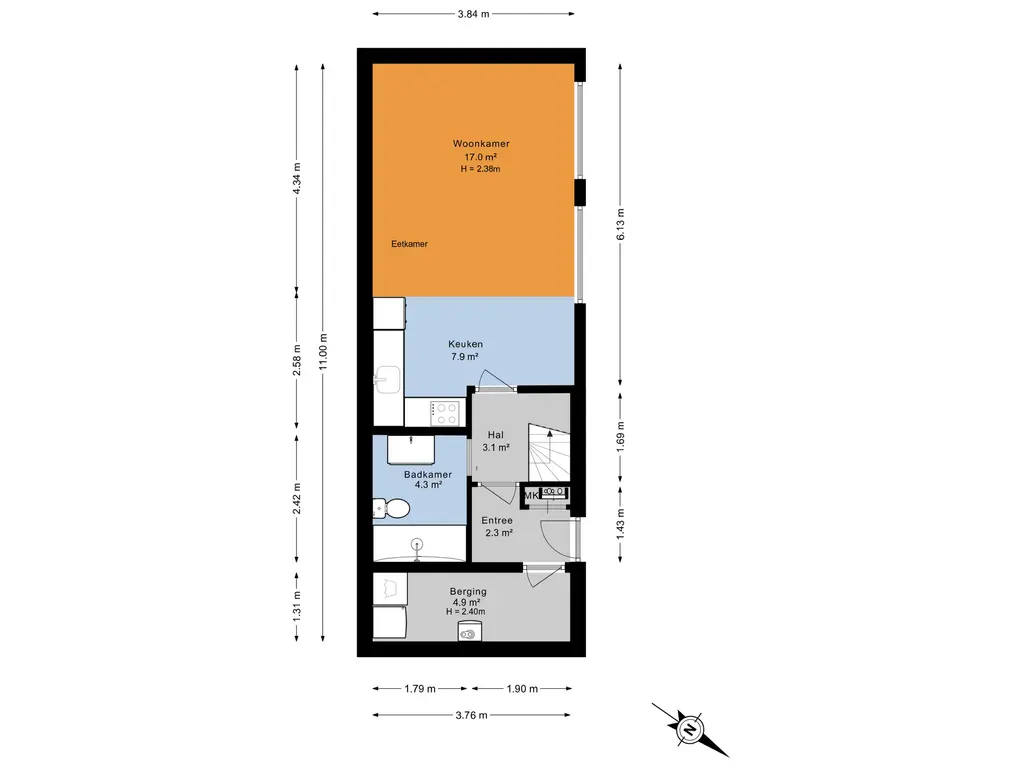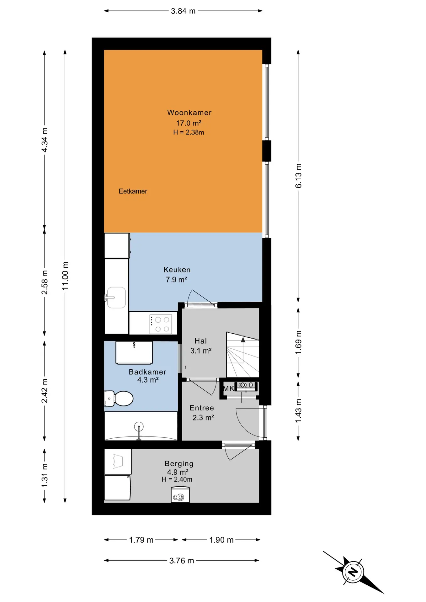 De gezellige woonkamer is verrassend licht dankzij de twee grote ramen die uitzicht bieden op het hofje. De open keuken – vernieuwd in 2021 – sluit hier naadloos op aan en is uitgevoerd in een frisse, moderne stijl. Deze is compleet uitgerust met een inductiekookplaat, combi-oven/magnetron, koelkast en een recirculatiekap, zodat je hier direct kunt koken en genieten.