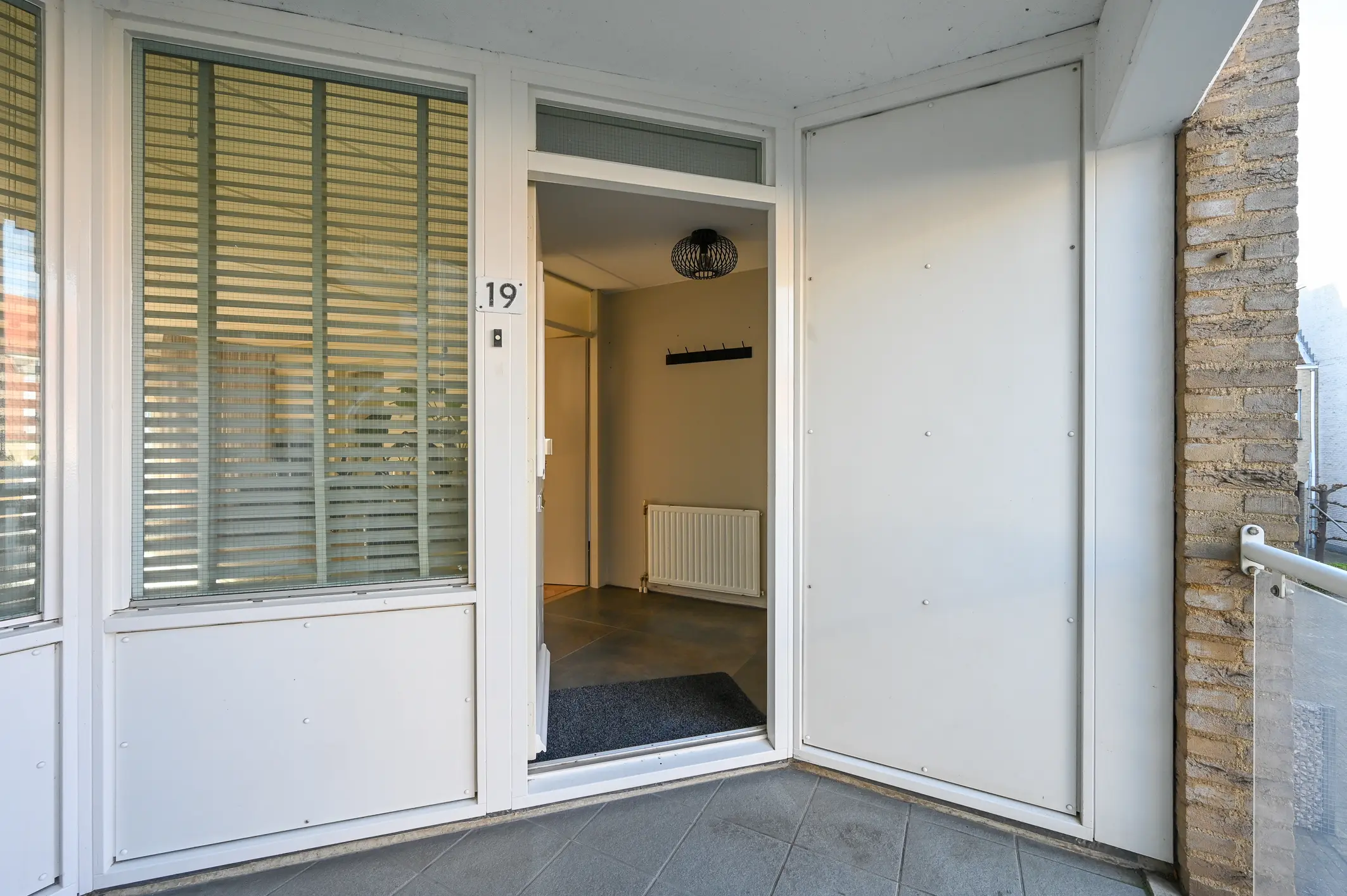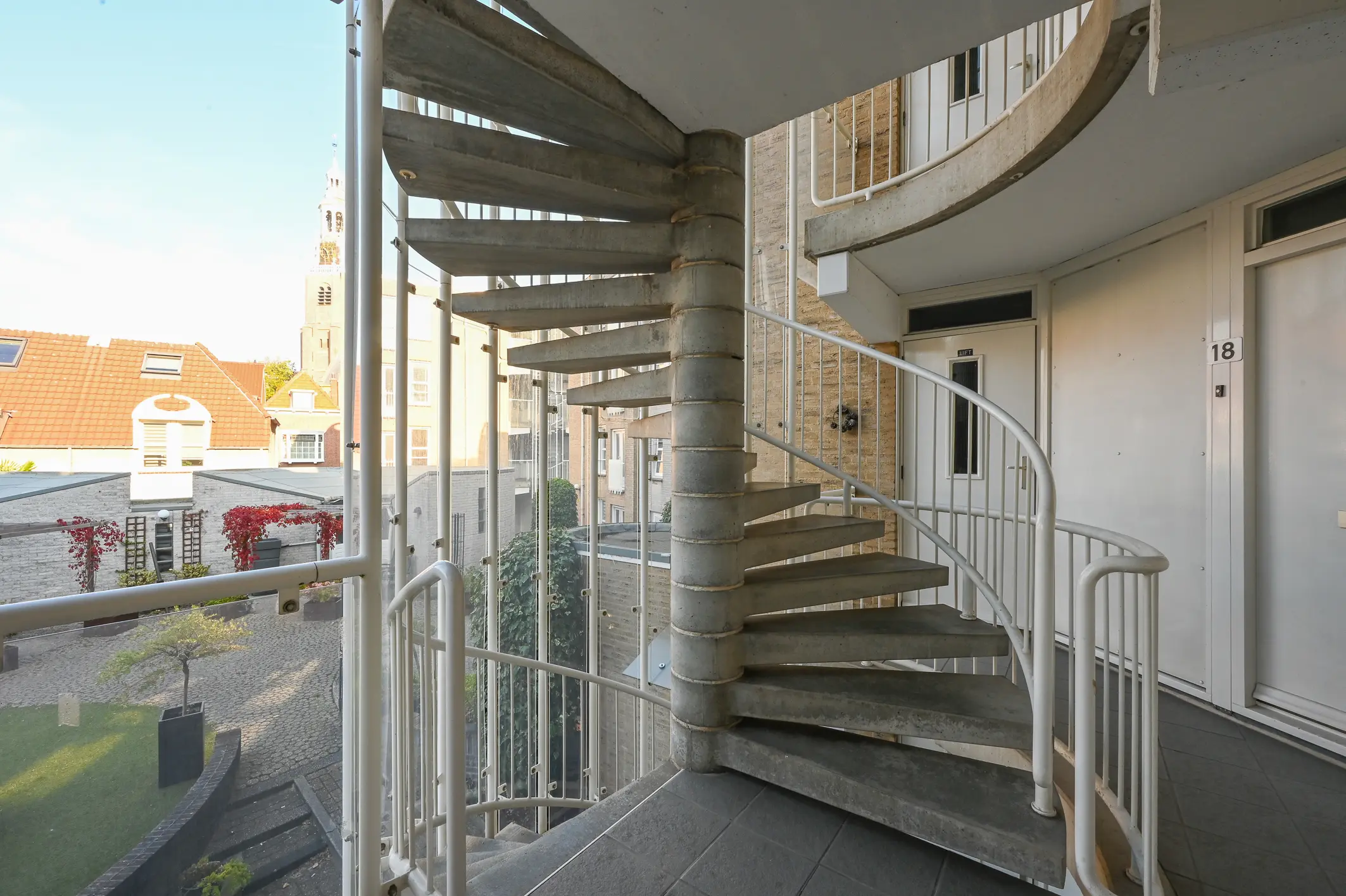 Via de gezamenlijke entree met brievenbussen, bellentableau en intercom bereik je het trappenhuis en de lift.