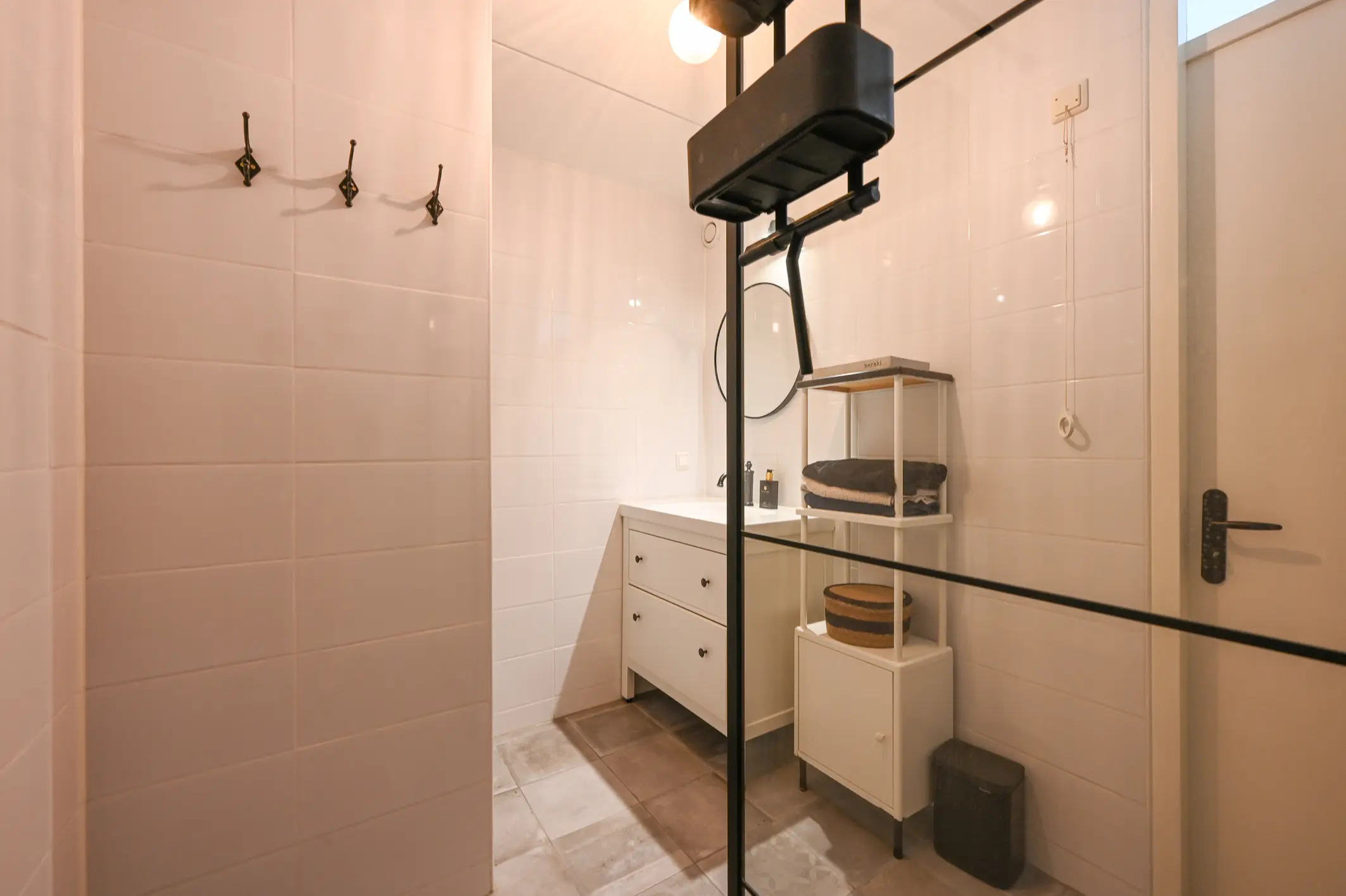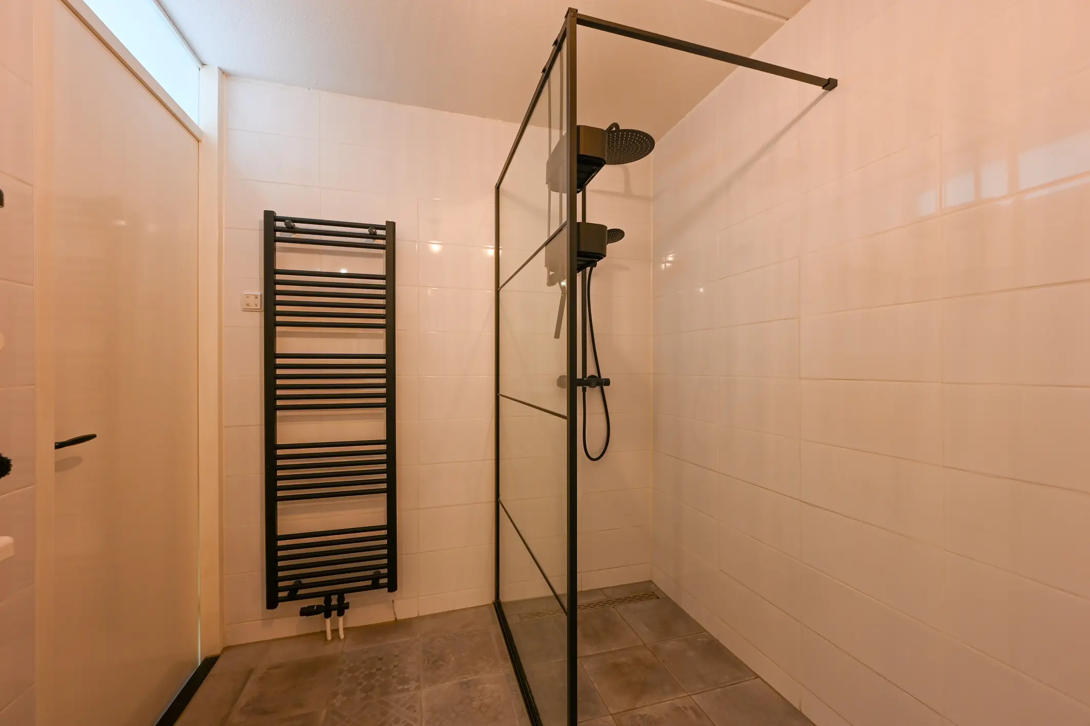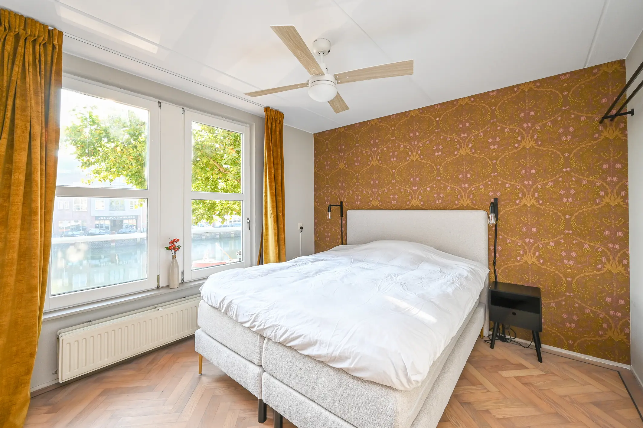De royale woonkeuken biedt ruimte voor een grote eettafel en kijkt uit op de groene binnentuin – een fijne plek om te koken én te tafelen. Via een tweede gang bereik je een handige kast met de CV-combiketel (2025) en de aansluiting voor je wasmachine. Het toilet is keurig betegeld en voorzien van een fonteintje. De ruime slaapkamer aan de haven zijde heeft ook toegang tot het balkon. De moderne badkamer is uitgerust met een royale inloopdouche, een stijlvol wastafelmeubel en een praktische bergkast.