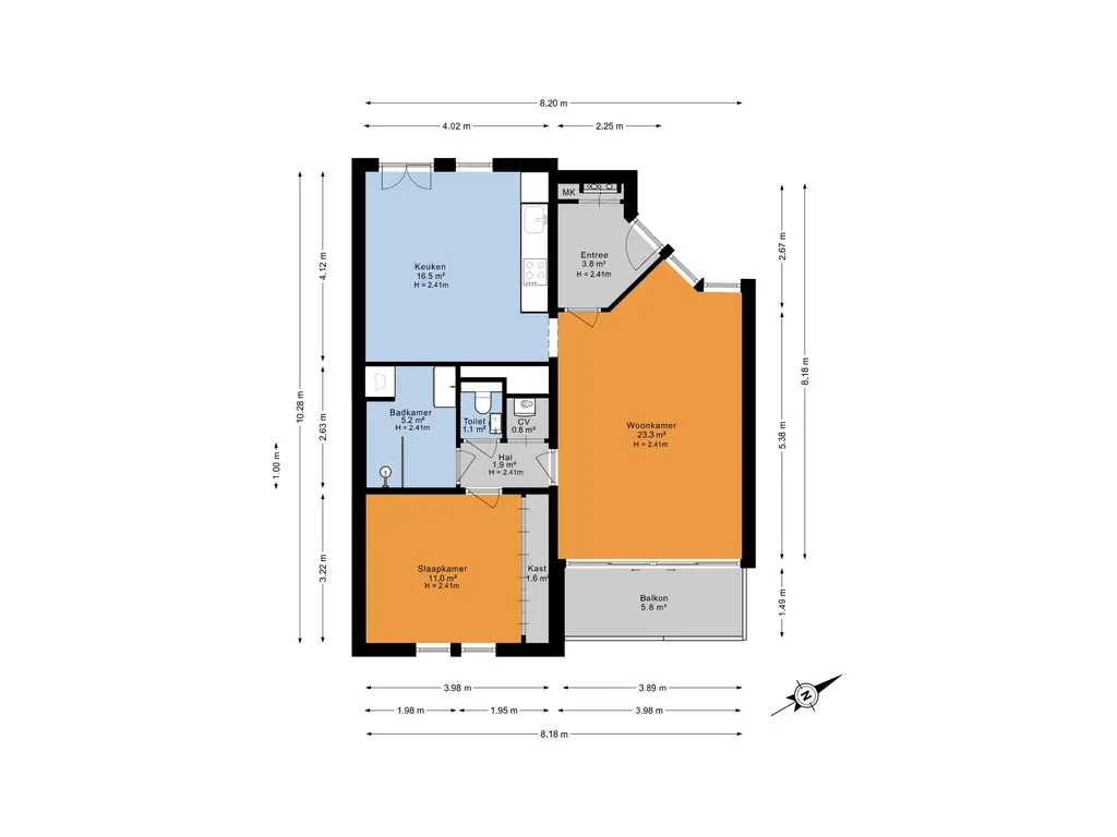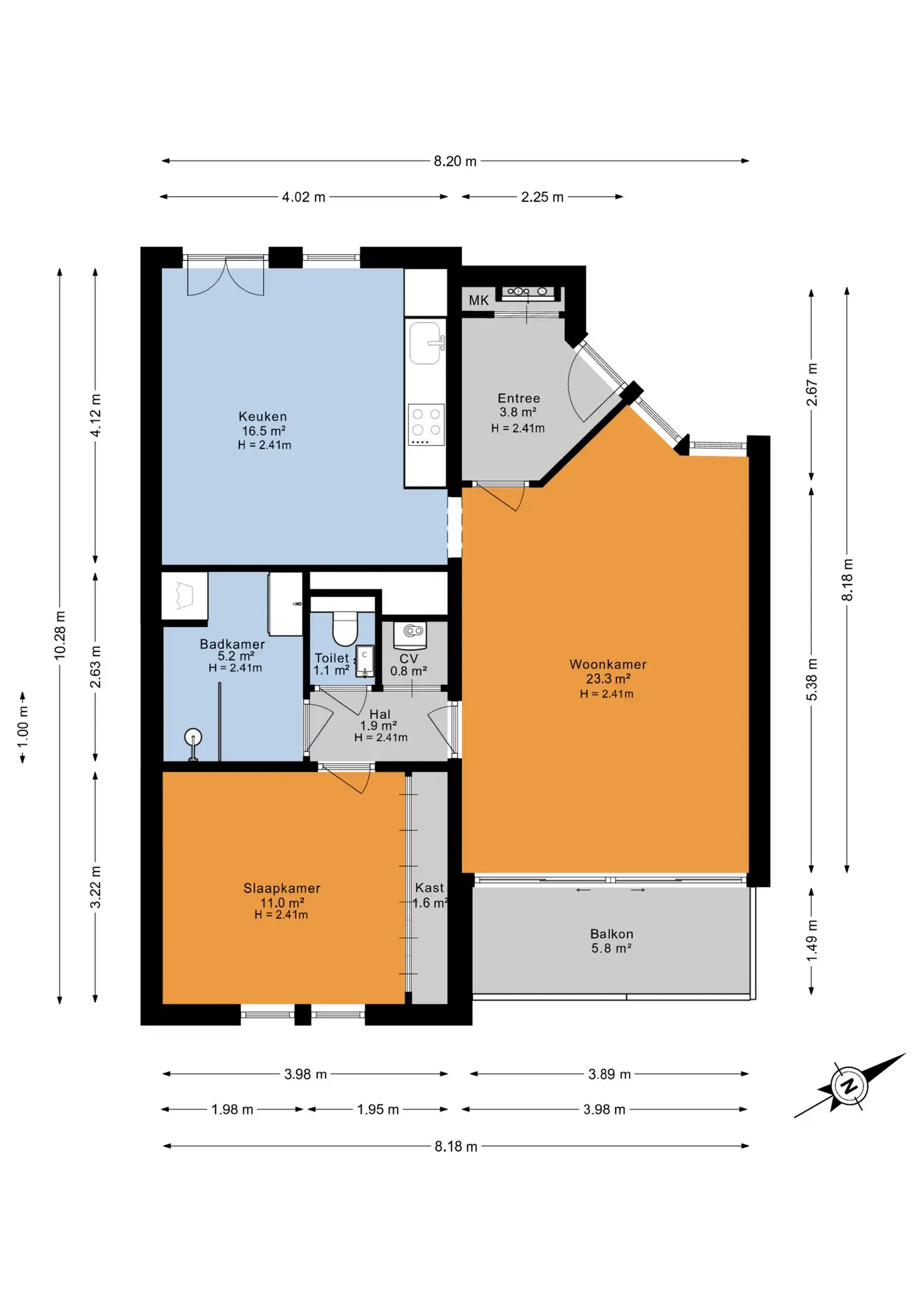 Je komt binnen in een nette hal met garderoberuimte en meterkast. De lichte woonkamer heeft een schuifpui naar het balkon waar je heerlijk beschut zit met uitzicht op de haven.