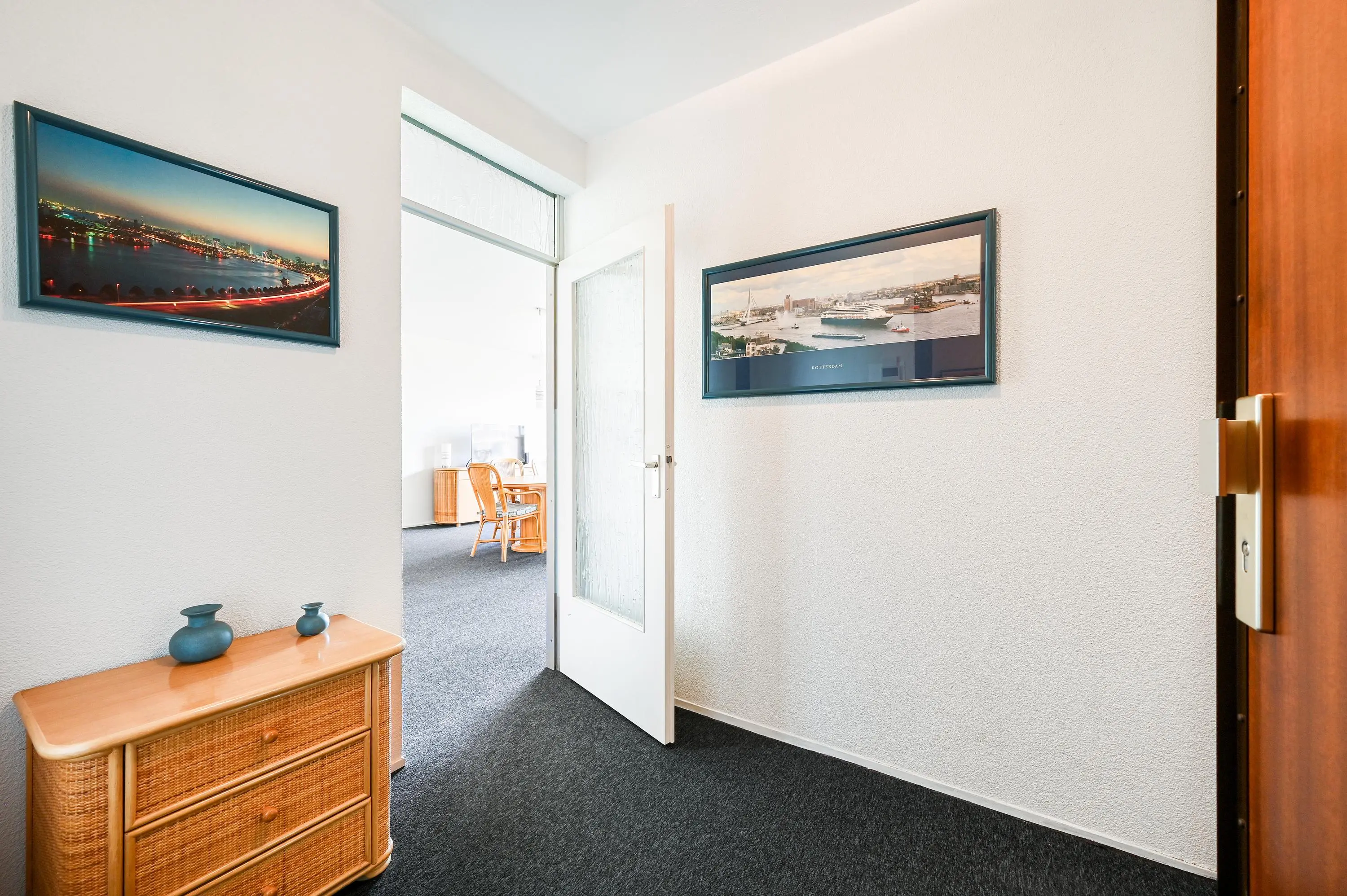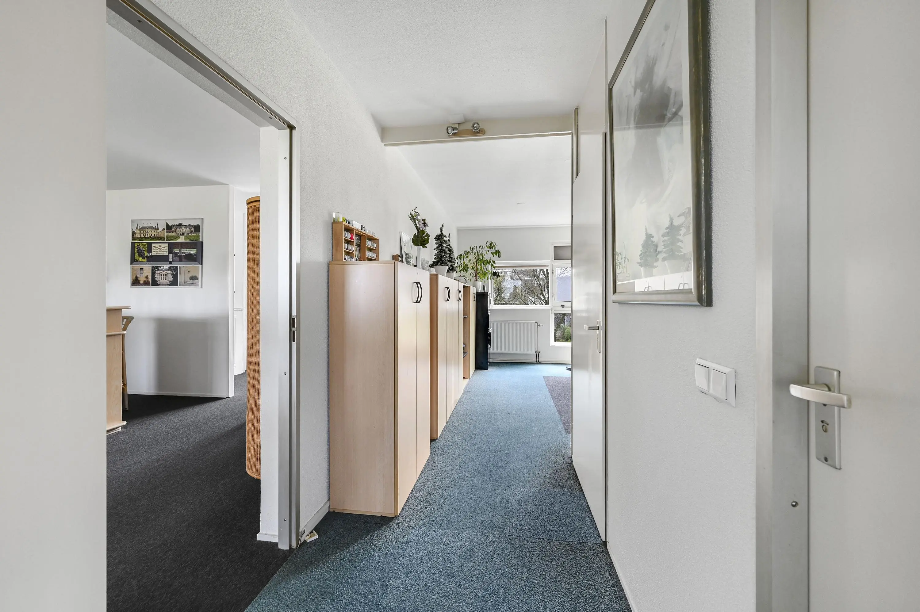 Bij binnenkomst tref je een ruime hal met garderoberuimte, videofoon-installatie en meterkast. Vanuit hier heb je toegang naar de andere vertrekken.