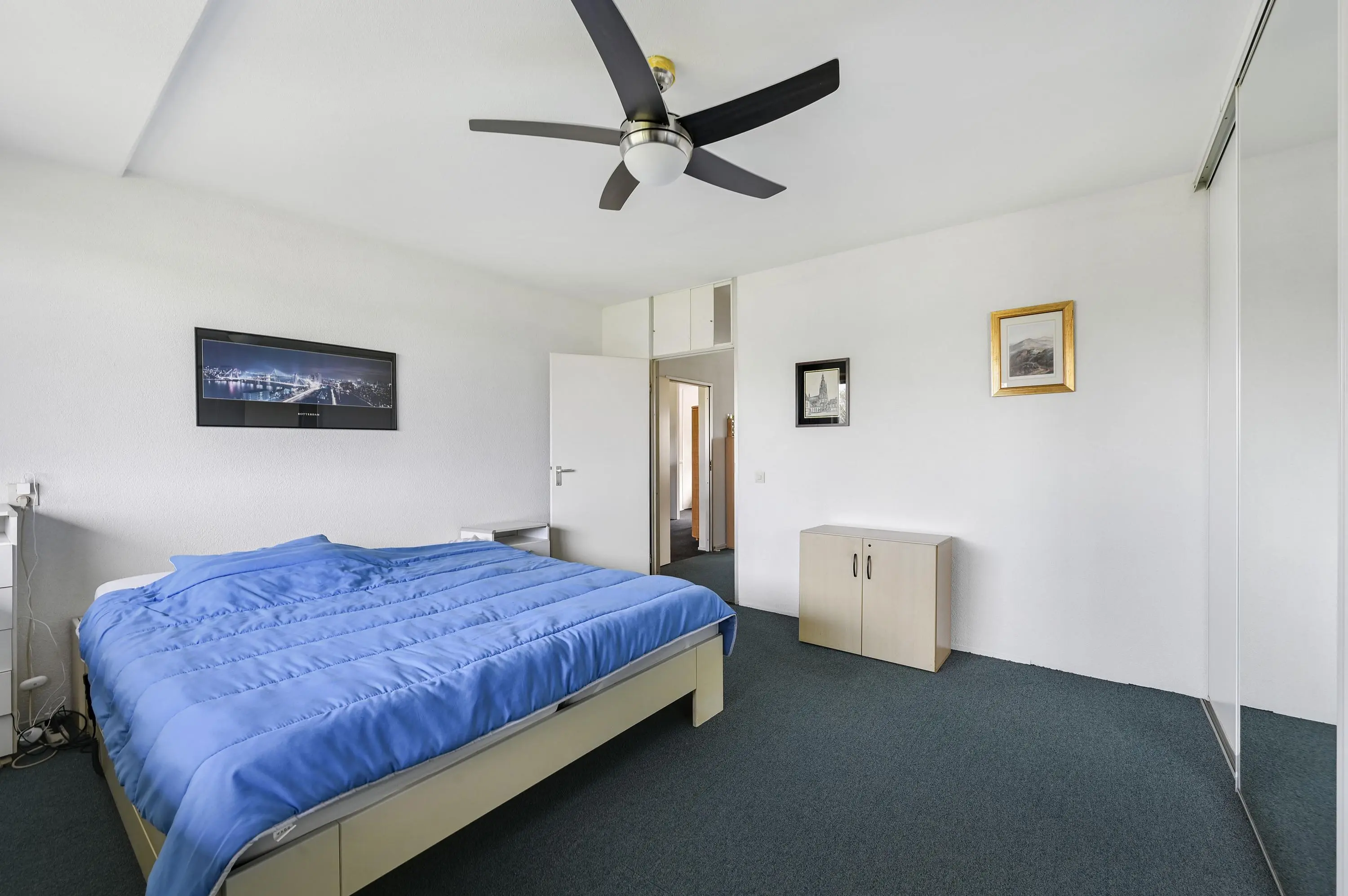 Het appartement beschikt over twee bijzonder ruime slaapkamers. De kamer aan de voorzijde is ontstaan door het samenvoegen van twee kamers, wat zorgt voor een royale en flexibele ruimte – perfect als slaapkamer, werkruimte of hobbykamer. De tweede slaapkamer, de master bedroom, ligt rustig aan de parkzijde en biedt eveneens veel comfort en ruimte.
