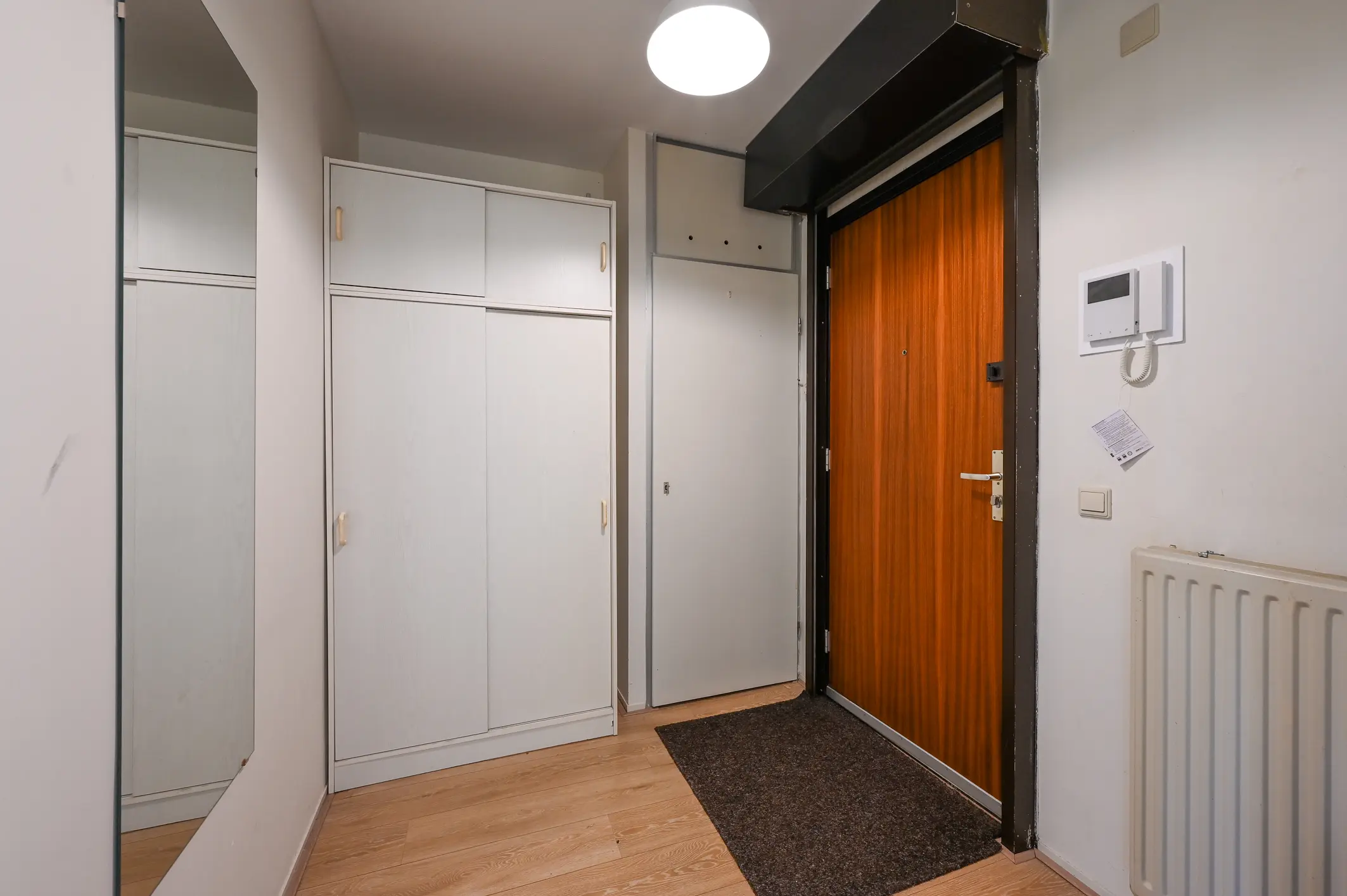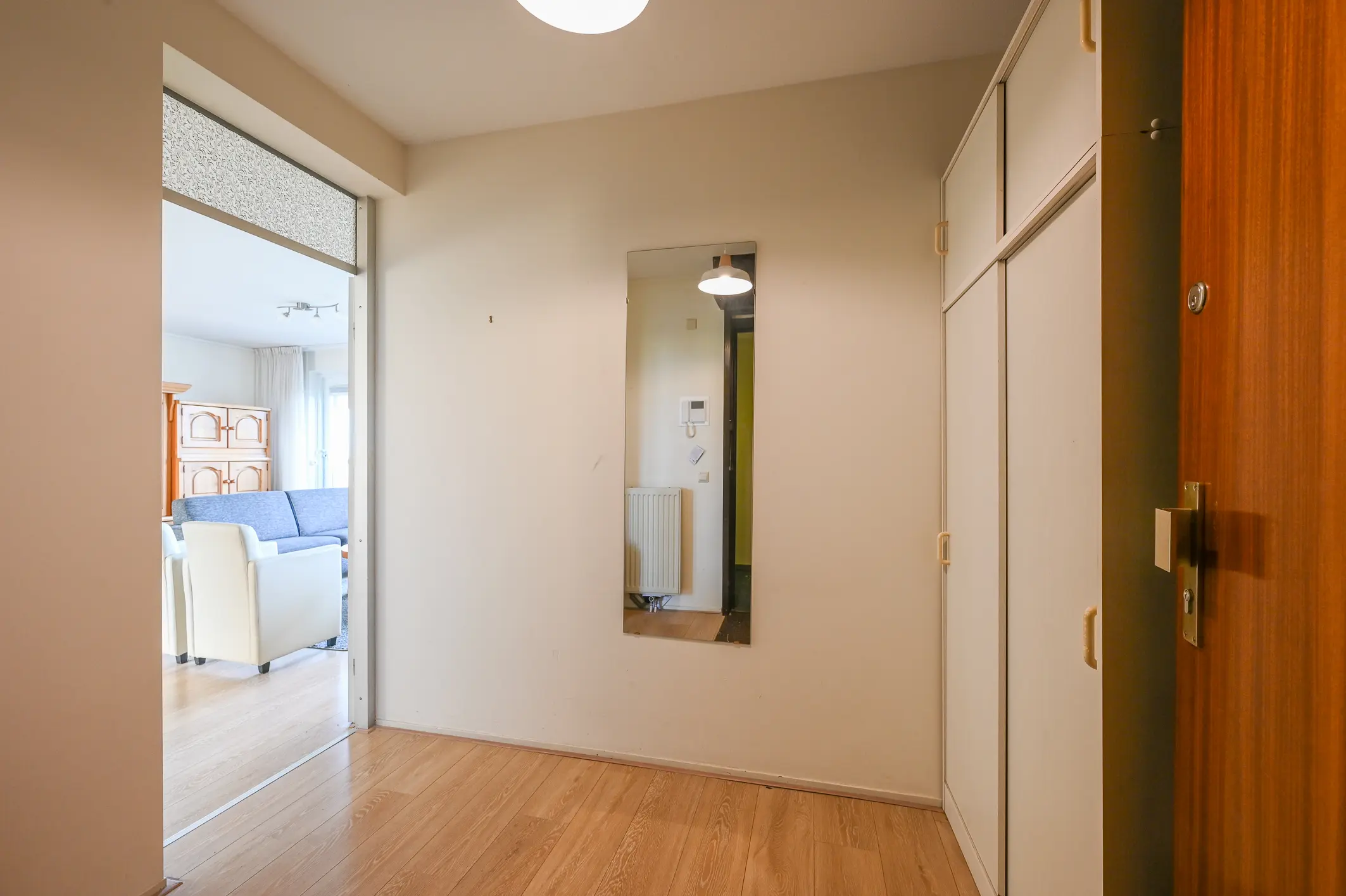 Bij binnenkomst in het appartement bevindt zich de ruime entreehal met meterkast en voldoende plek voor een garderobe. Vanuit hier heeft u toegang tot de woonkamer.