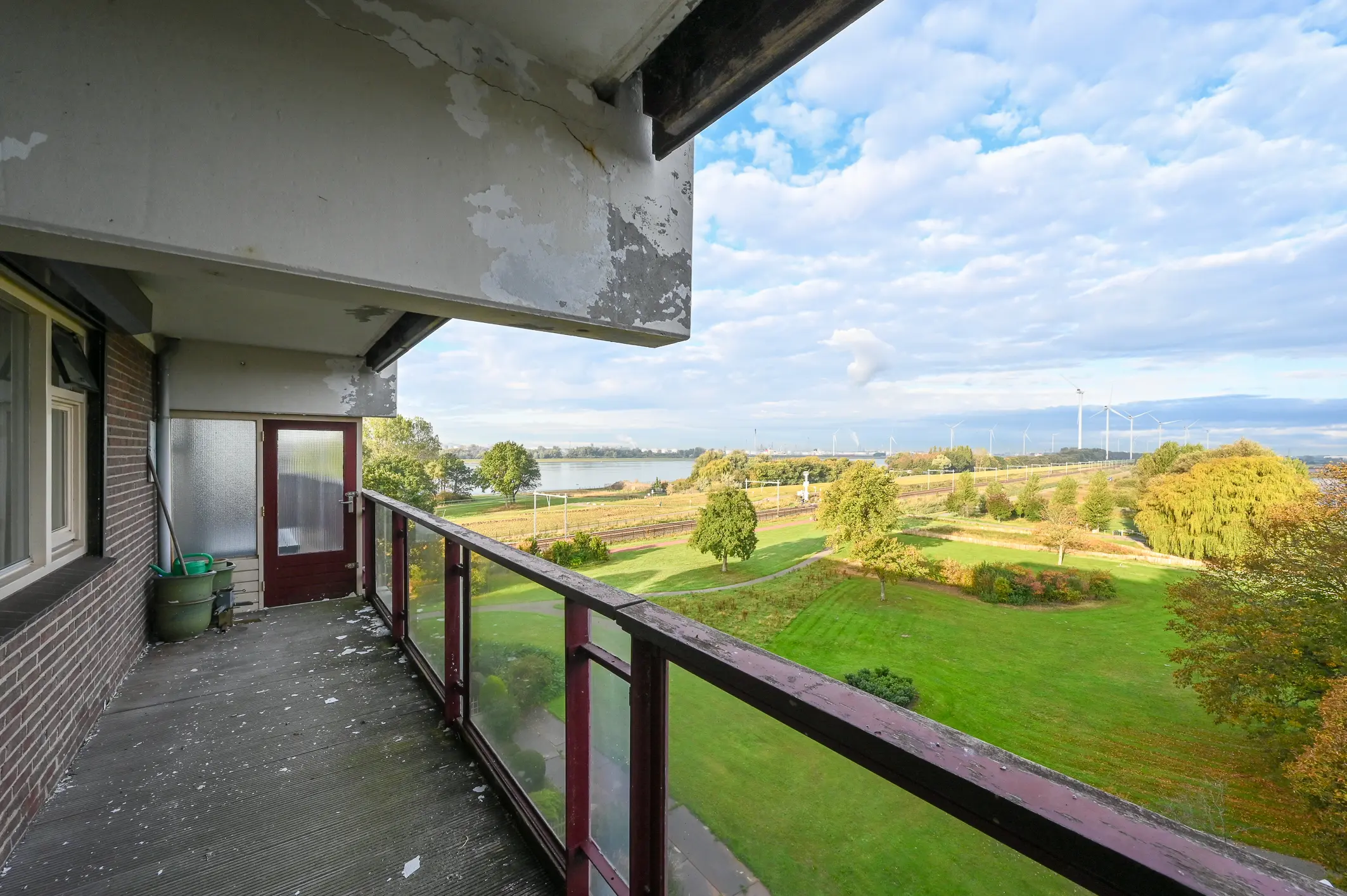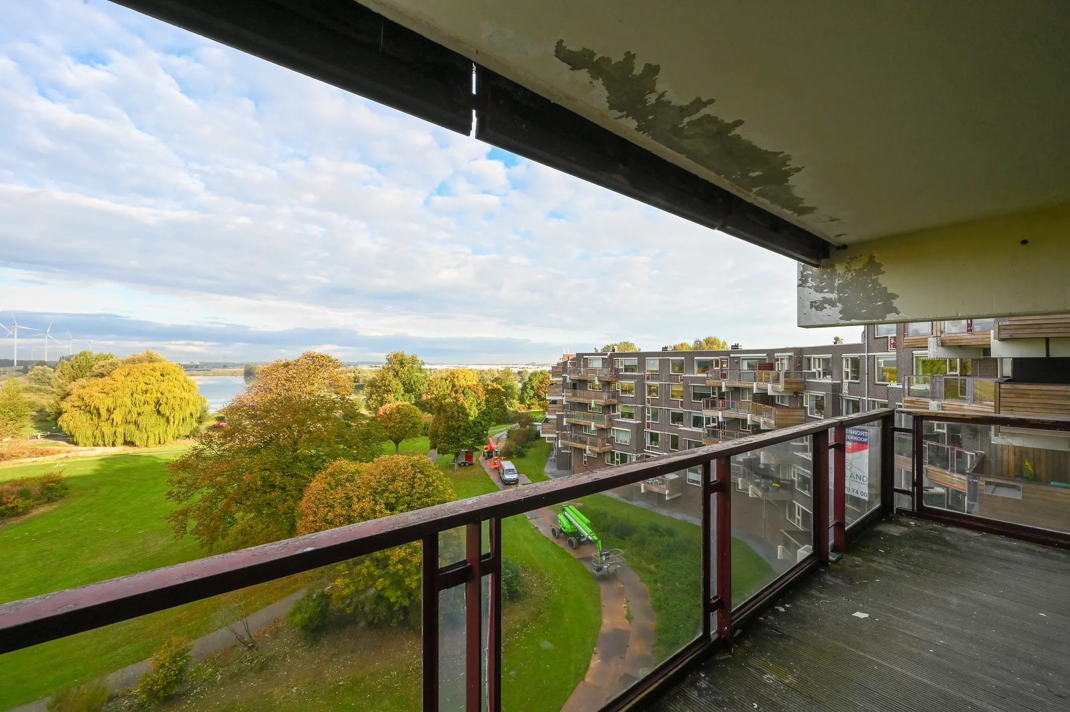 De balkons worden heden onderhouden, de foto's zijn gemaakt in de staat vóór het onderhoud.