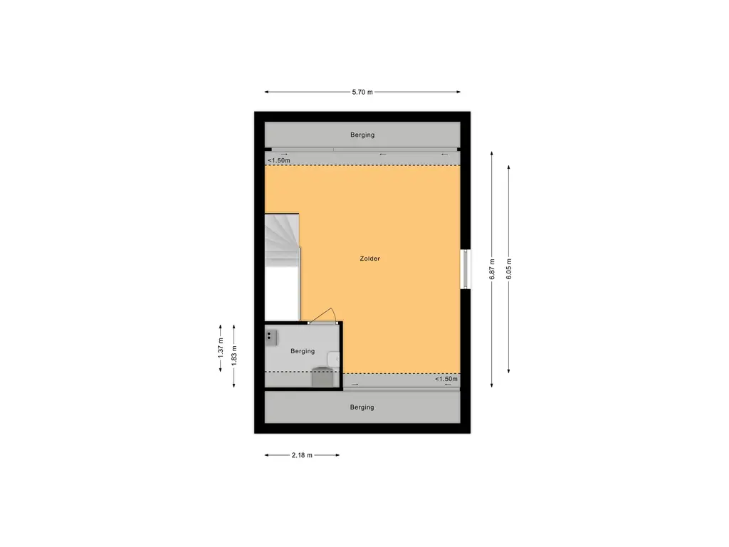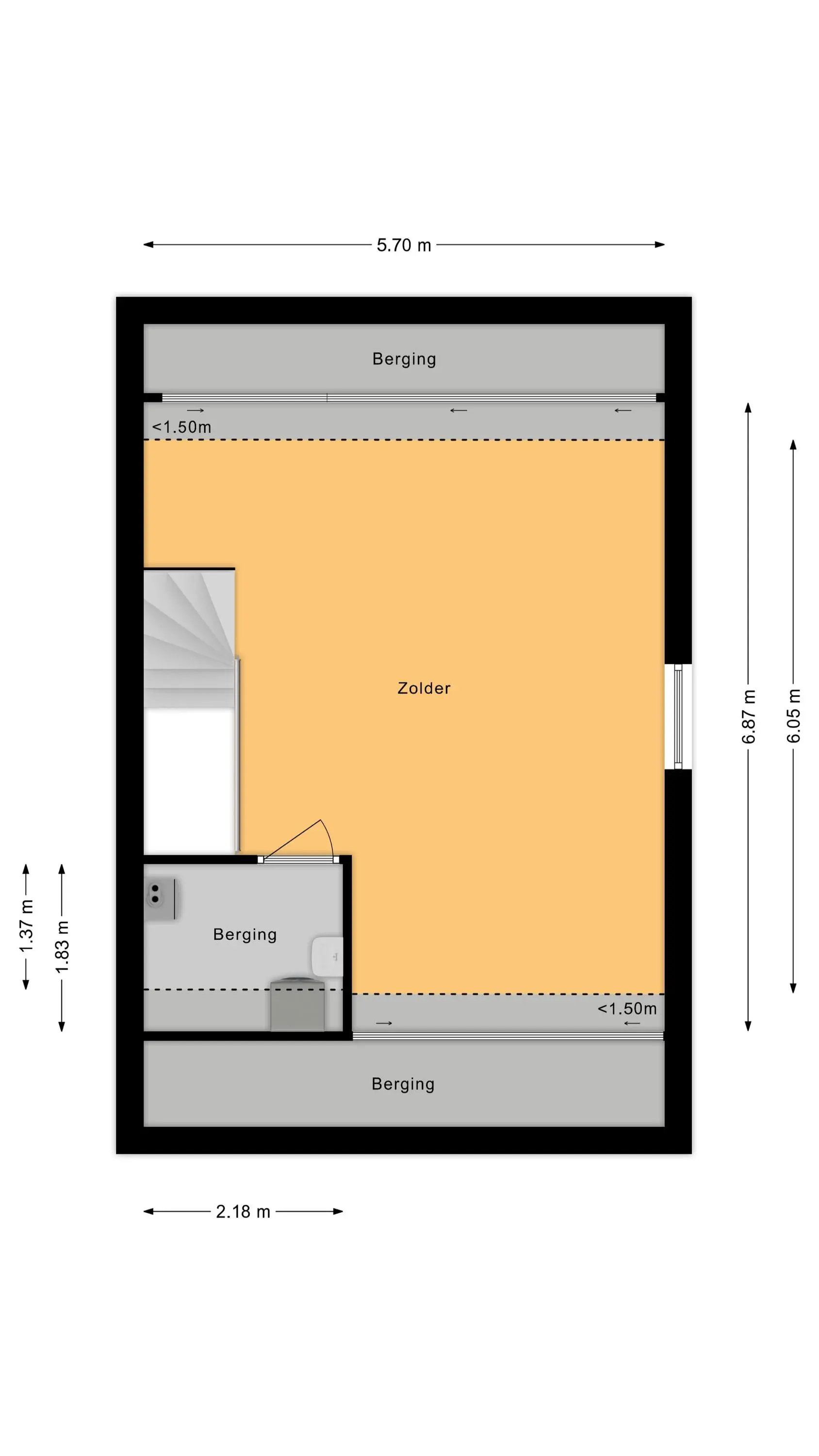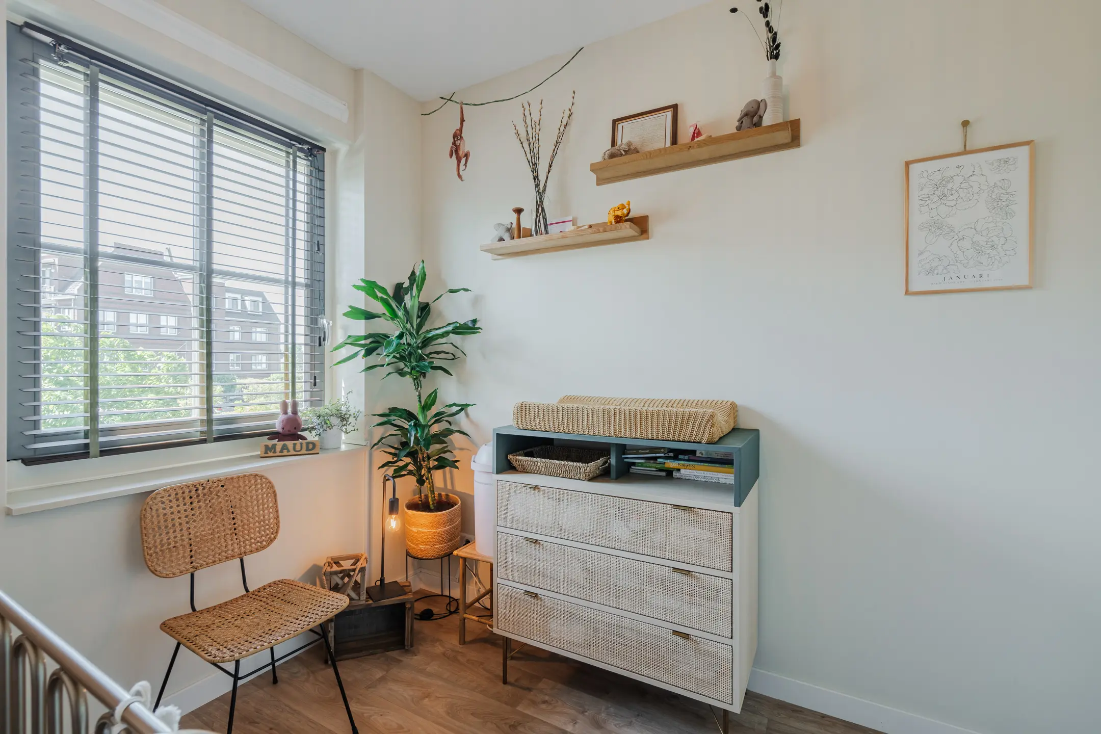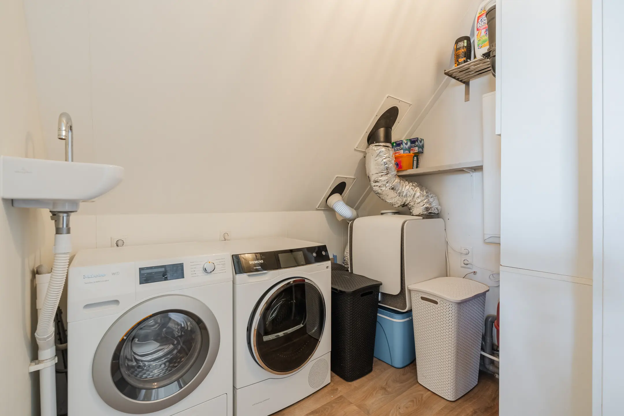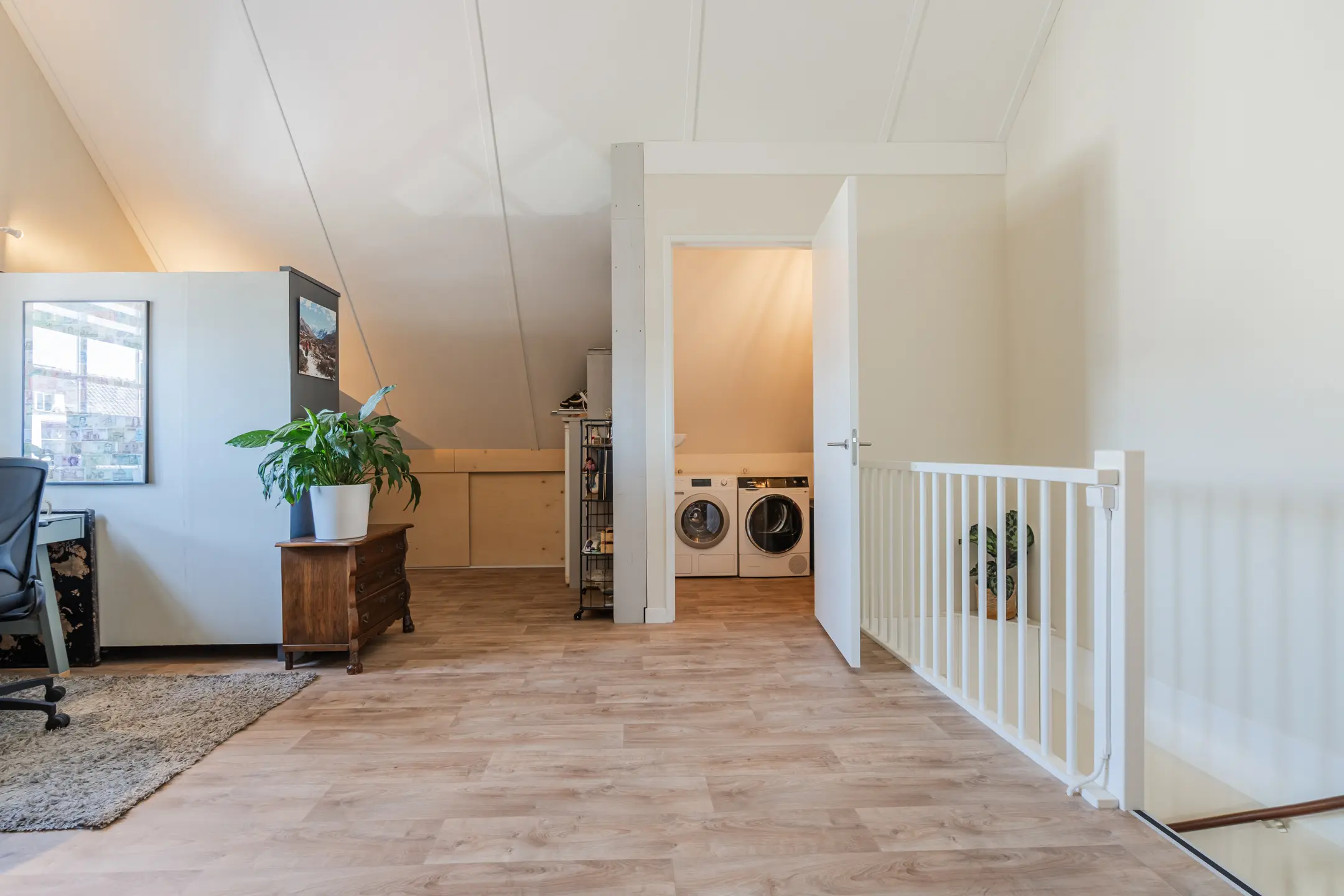 De tweede verdieping biedt een ruime open zolderverdieping die eenvoudig kan worden ingericht als extra slaapkamers en/of werkruimte. Hier bevinden zich tevens de technische installaties, waaronder de cv-ketel (2018), luchtwarmtepomp(2022) en de wasmachine- en drogeraansluiting. Achter de knieschotten is praktische bergruimte aanwezig.
