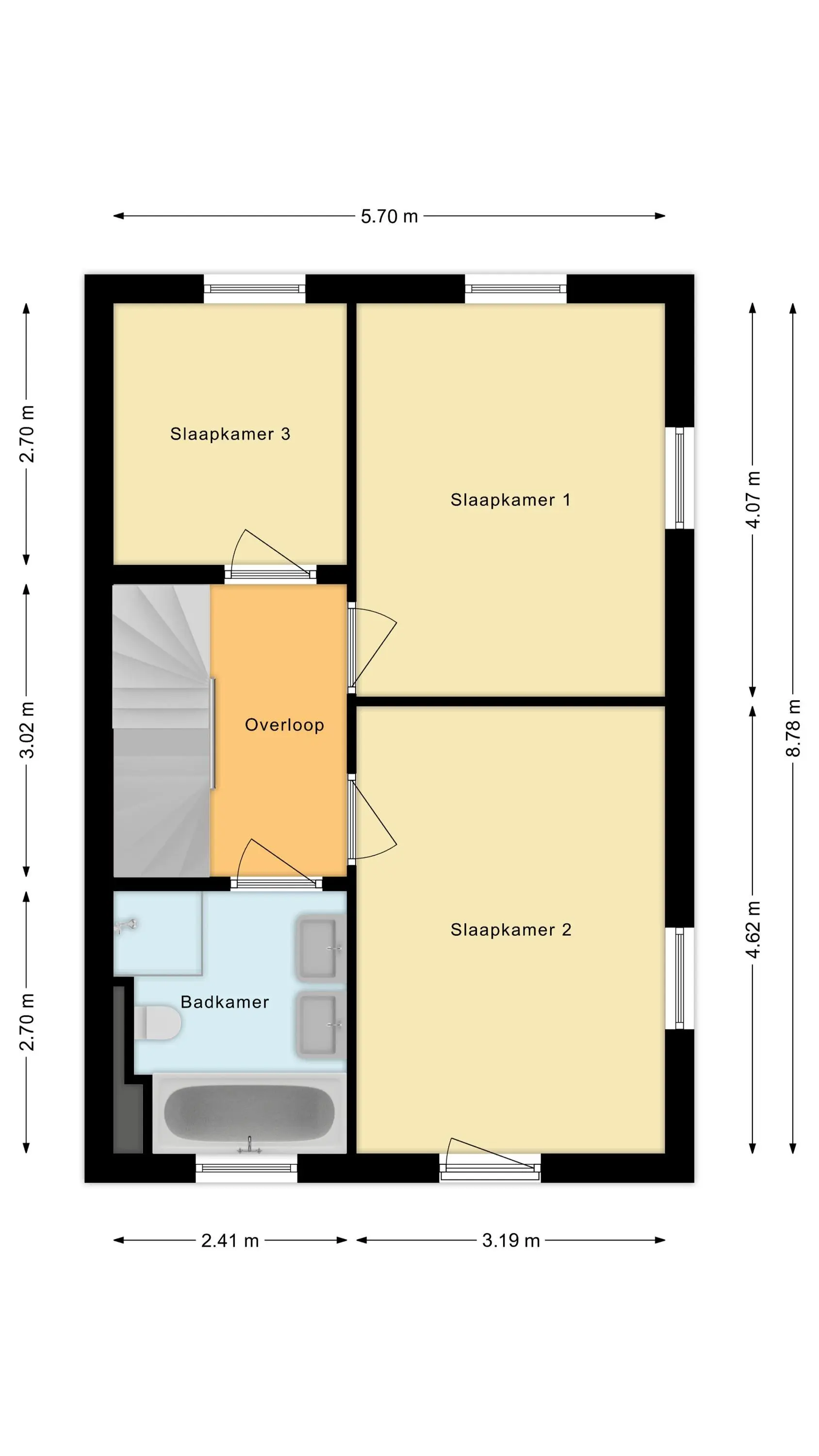 - Drie slaapkamers met mogelijkheid tot een vierde en vijfde
