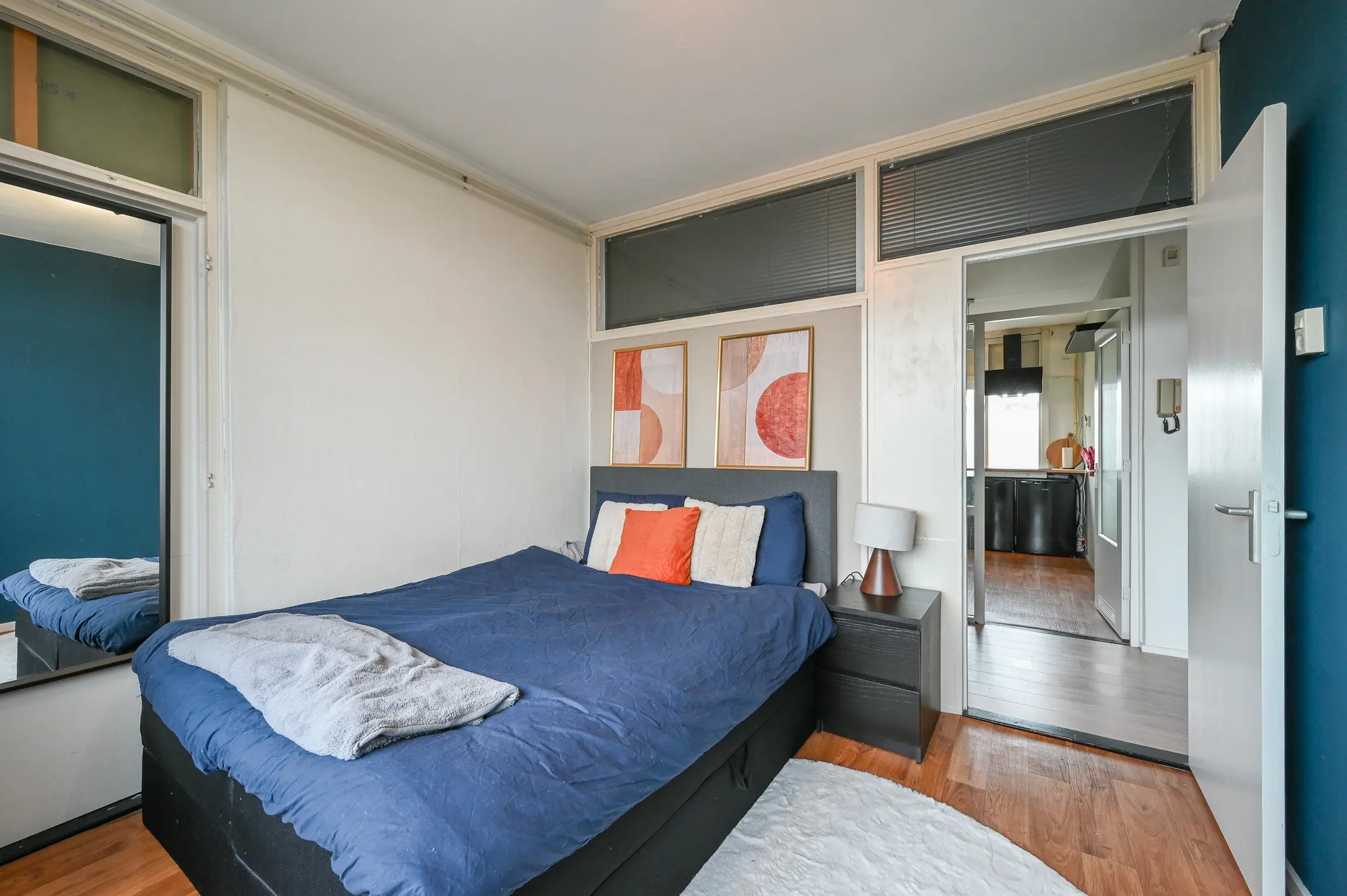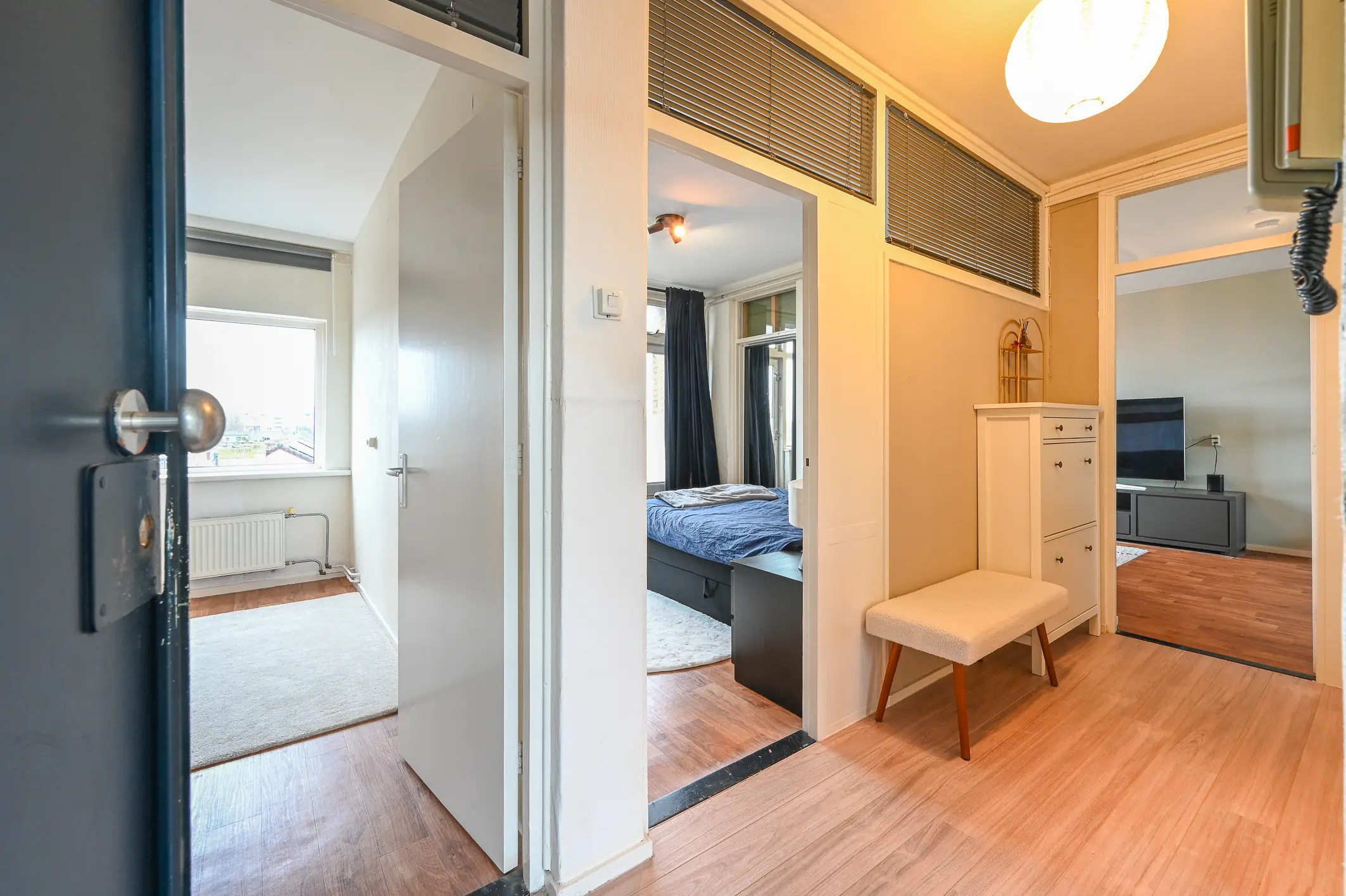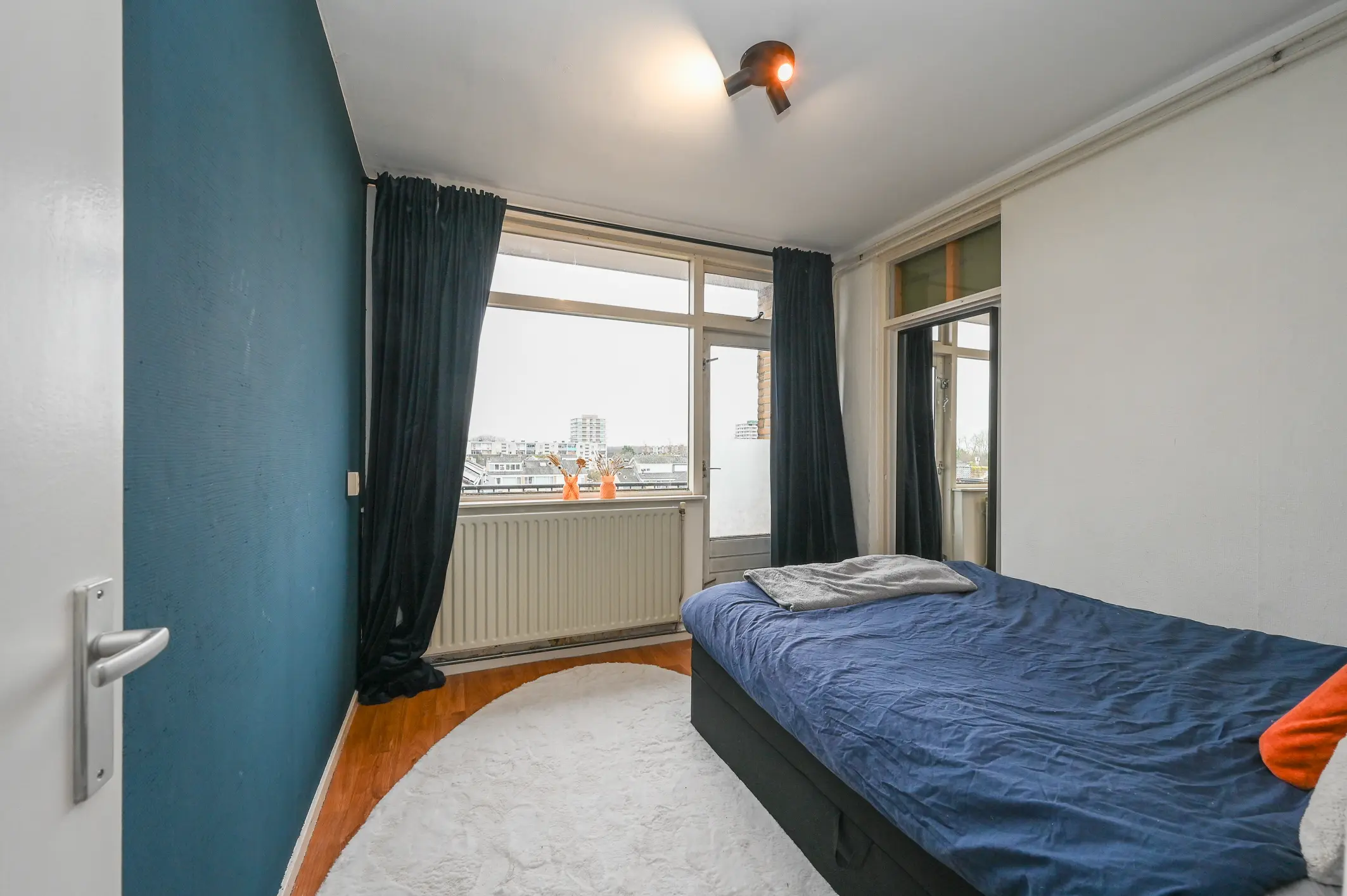 Het appartement beschikt over twee ruime slaapkamers. De master bedroom biedt directe toegang tot het balkon aan de zuidoostzijde, een heerlijke plek om ’s ochtends van de zon te genieten. De tweede slaapkamer is eveneens goed bemeten en geschikt als slaap-, werk- of logeerkamer.