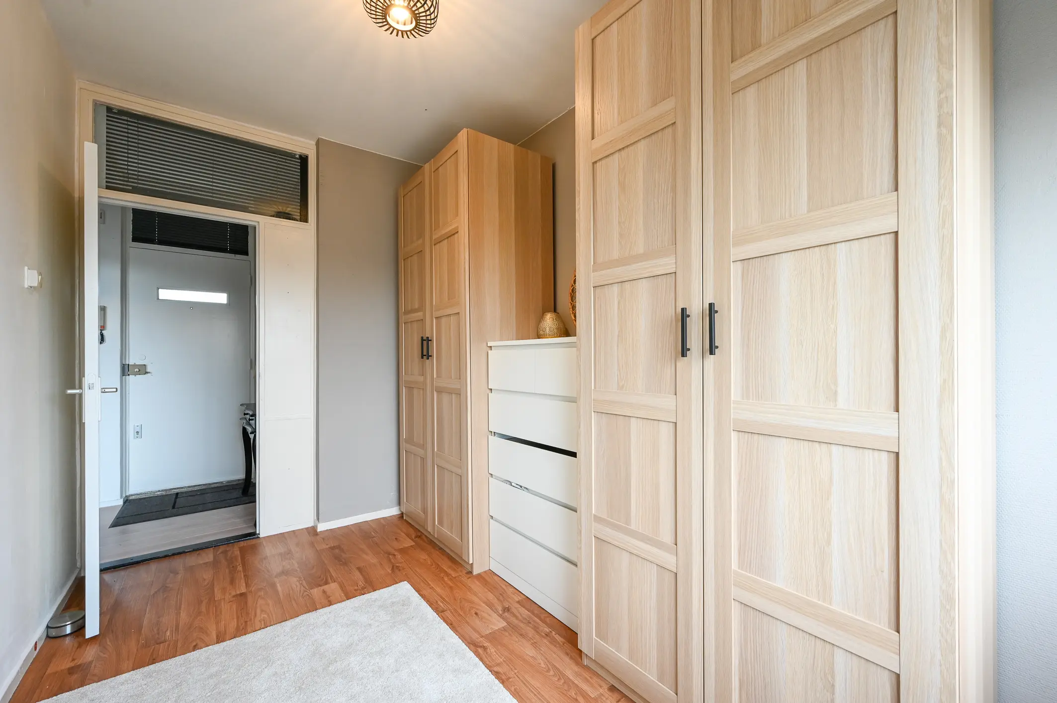 Via het nette en afgesloten portiek, voorzien van bellentableau, bereik je de entree van het complex. Vanuit hier heb je tevens toegang tot de bergingen in de onderbouw, ideaal voor het stallen van fietsen of extra opslag.