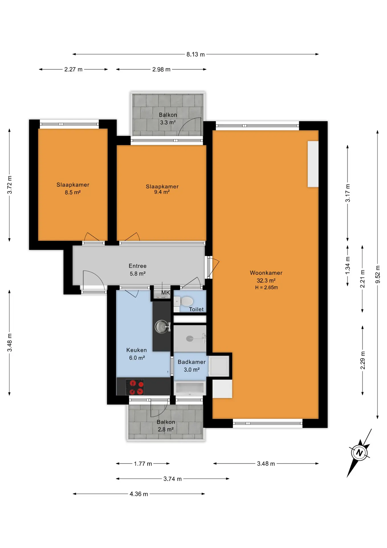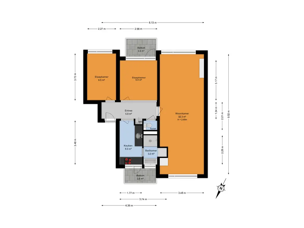 - Twee balkons (zuidoosten en noordwesten)