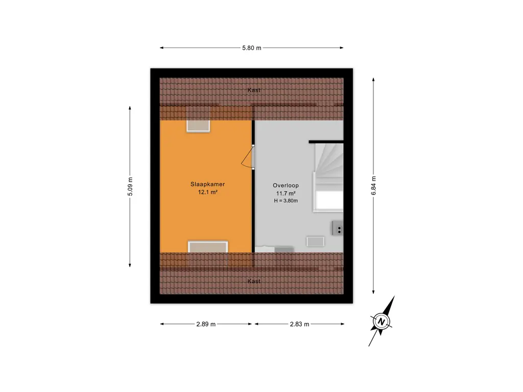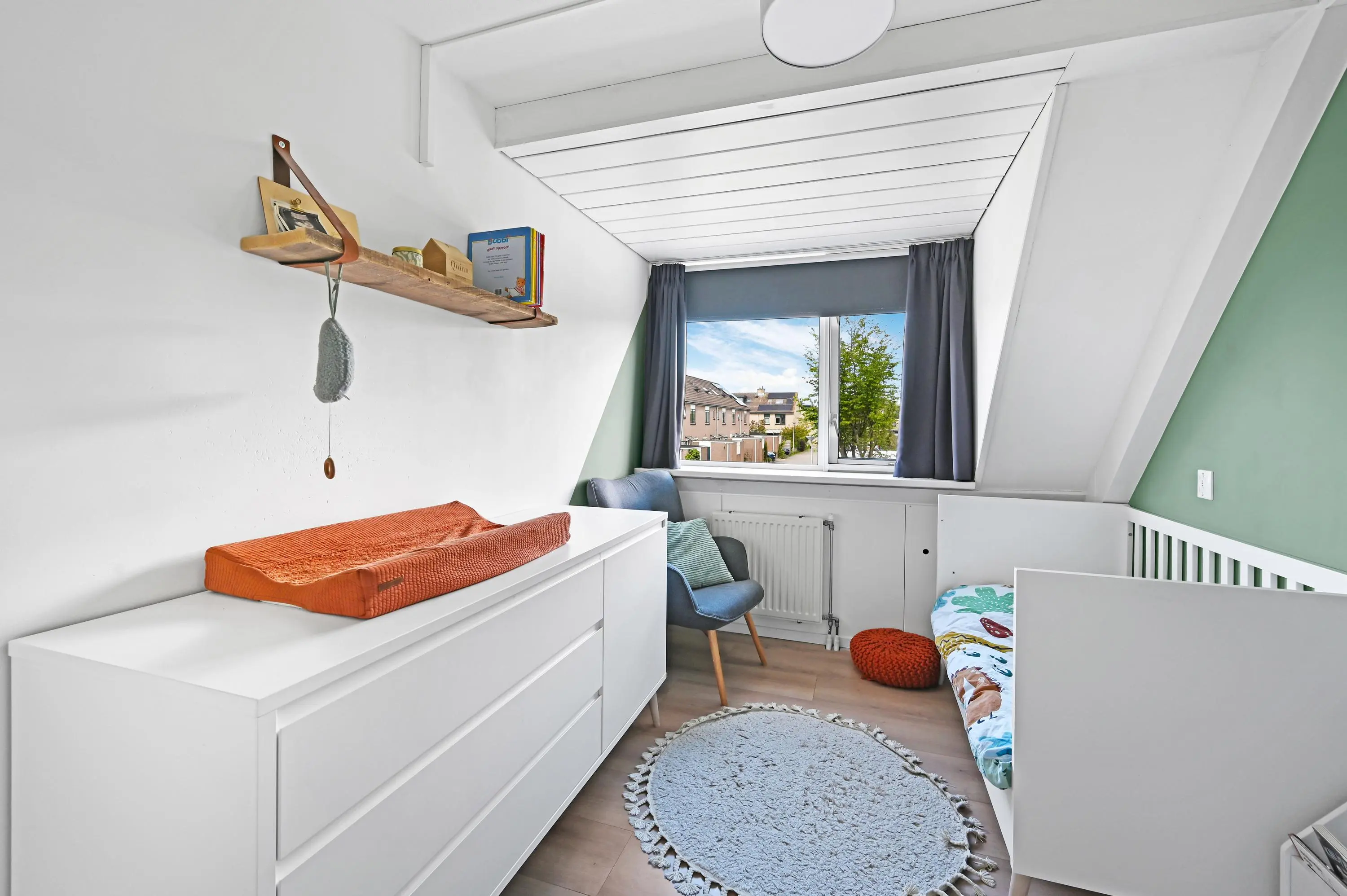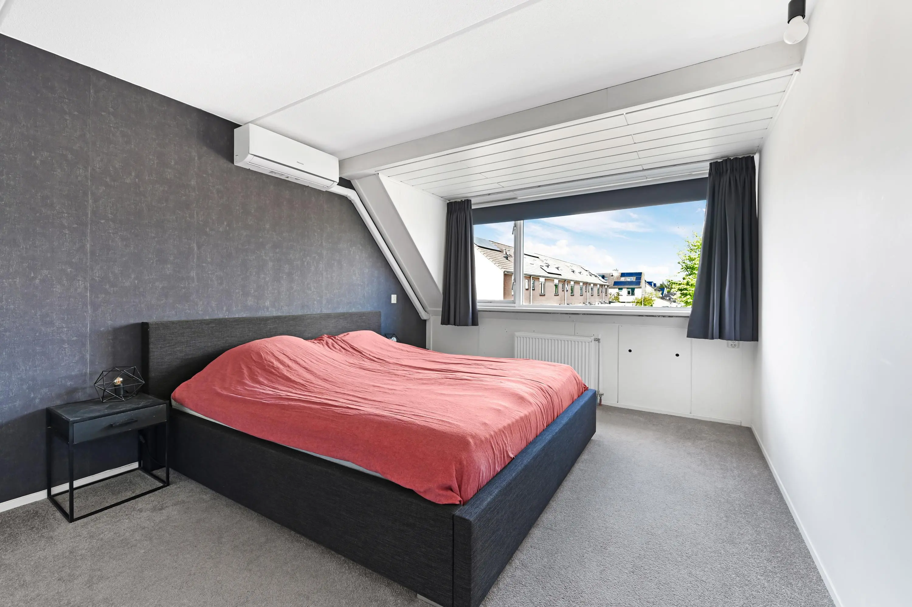 De vierde slaapkamer is heerlijk licht dankzij de grote dakramen en voelt extra ruim aan door de hoge nok.