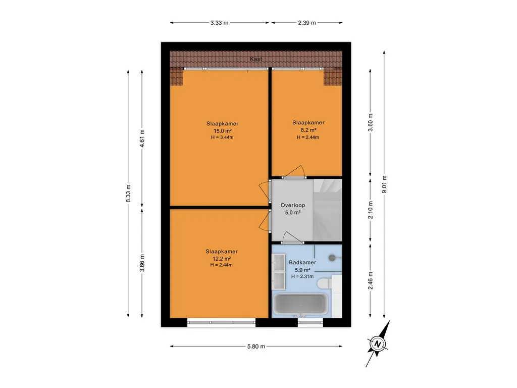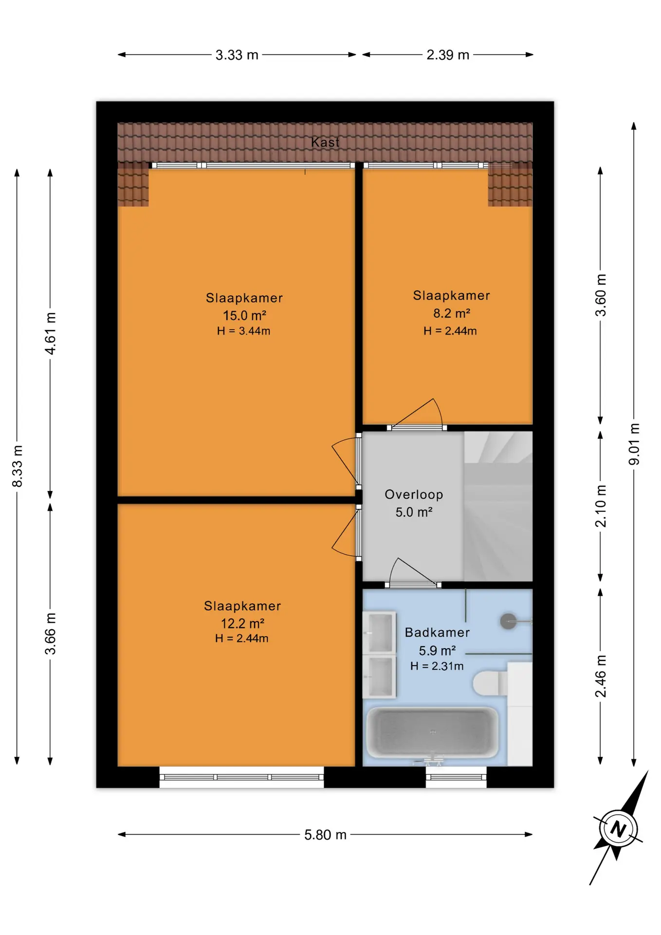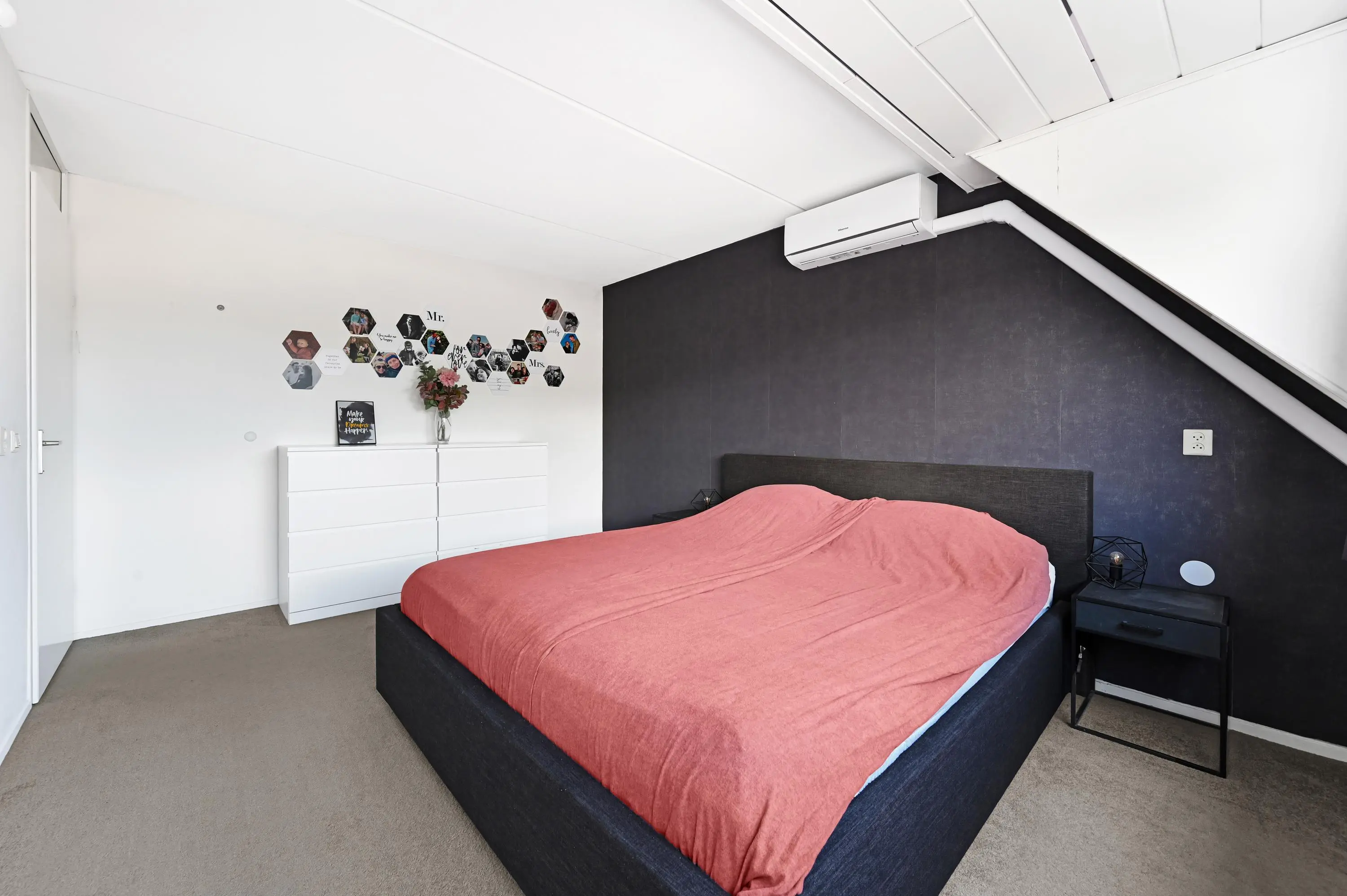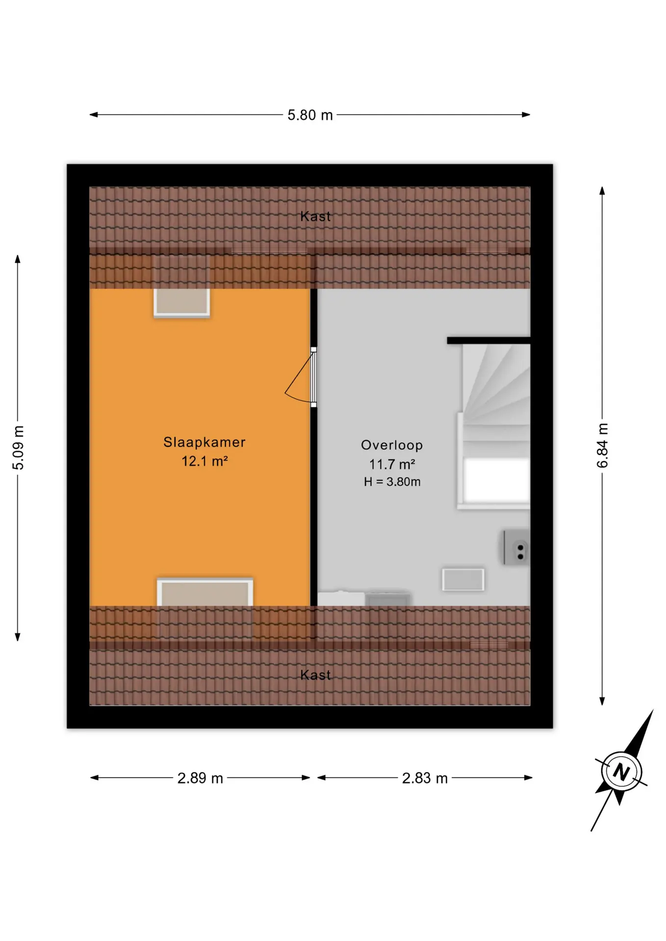 De vierde slaapkamer is heerlijk licht dankzij de grote dakramen en voelt extra ruim aan door de hoge nok.