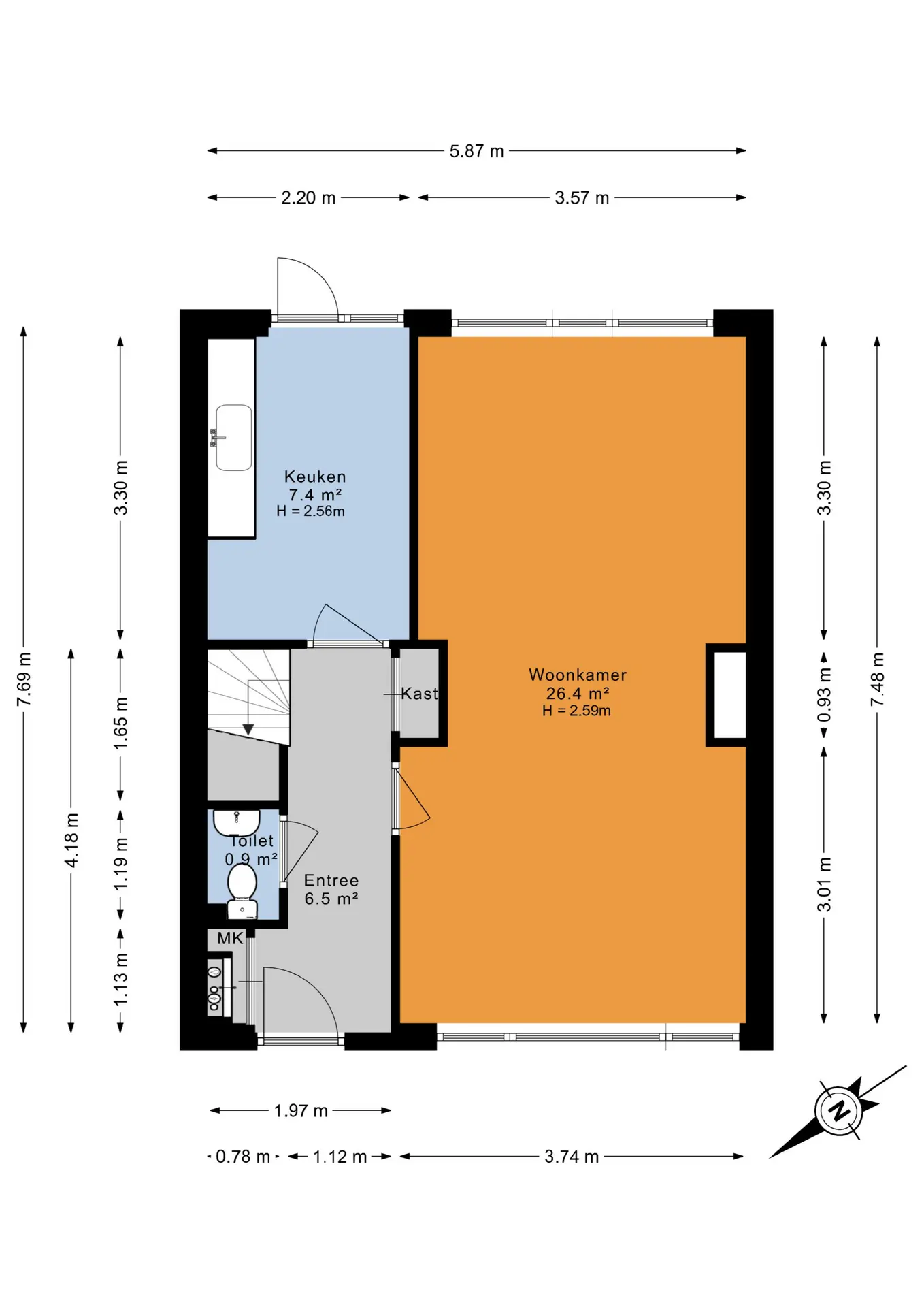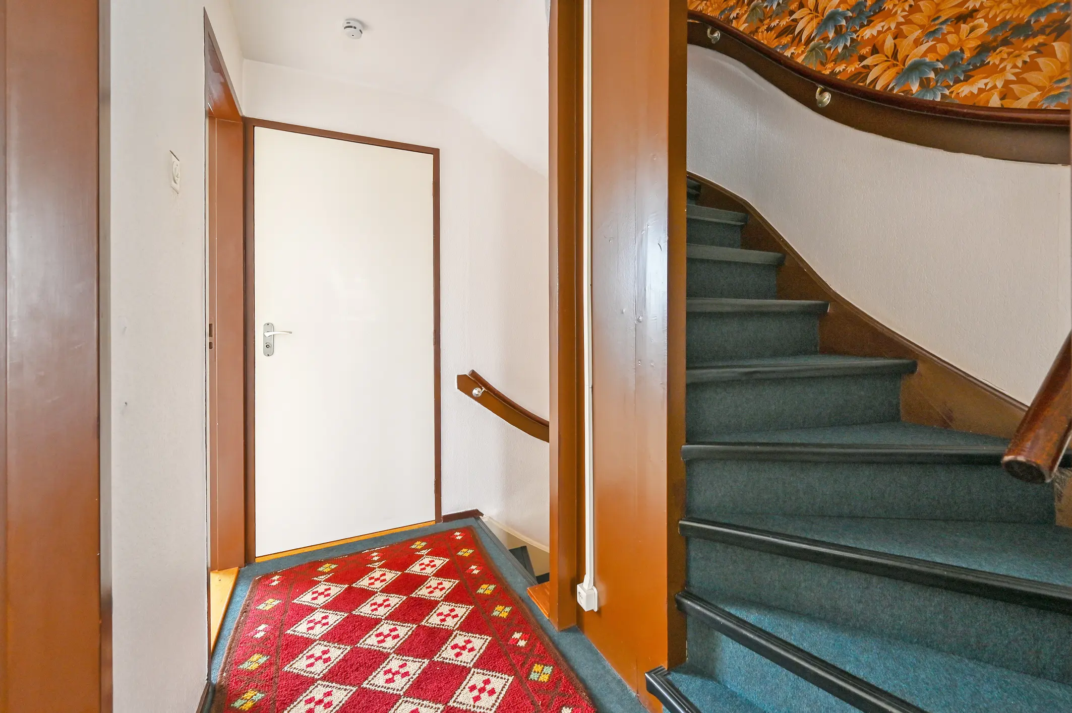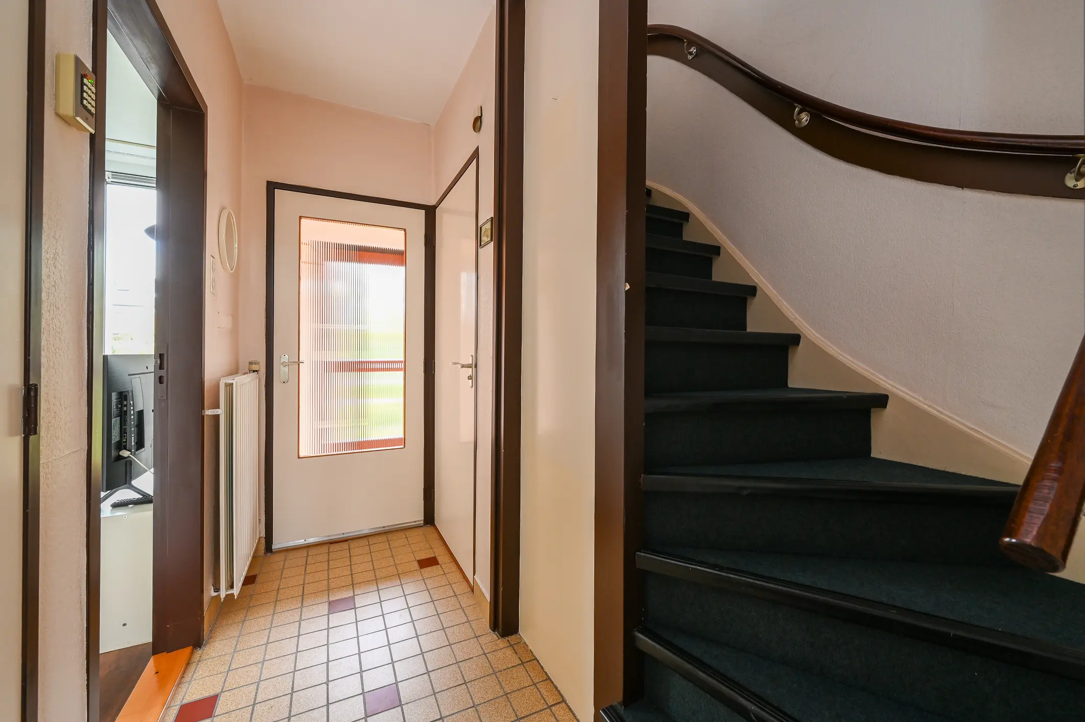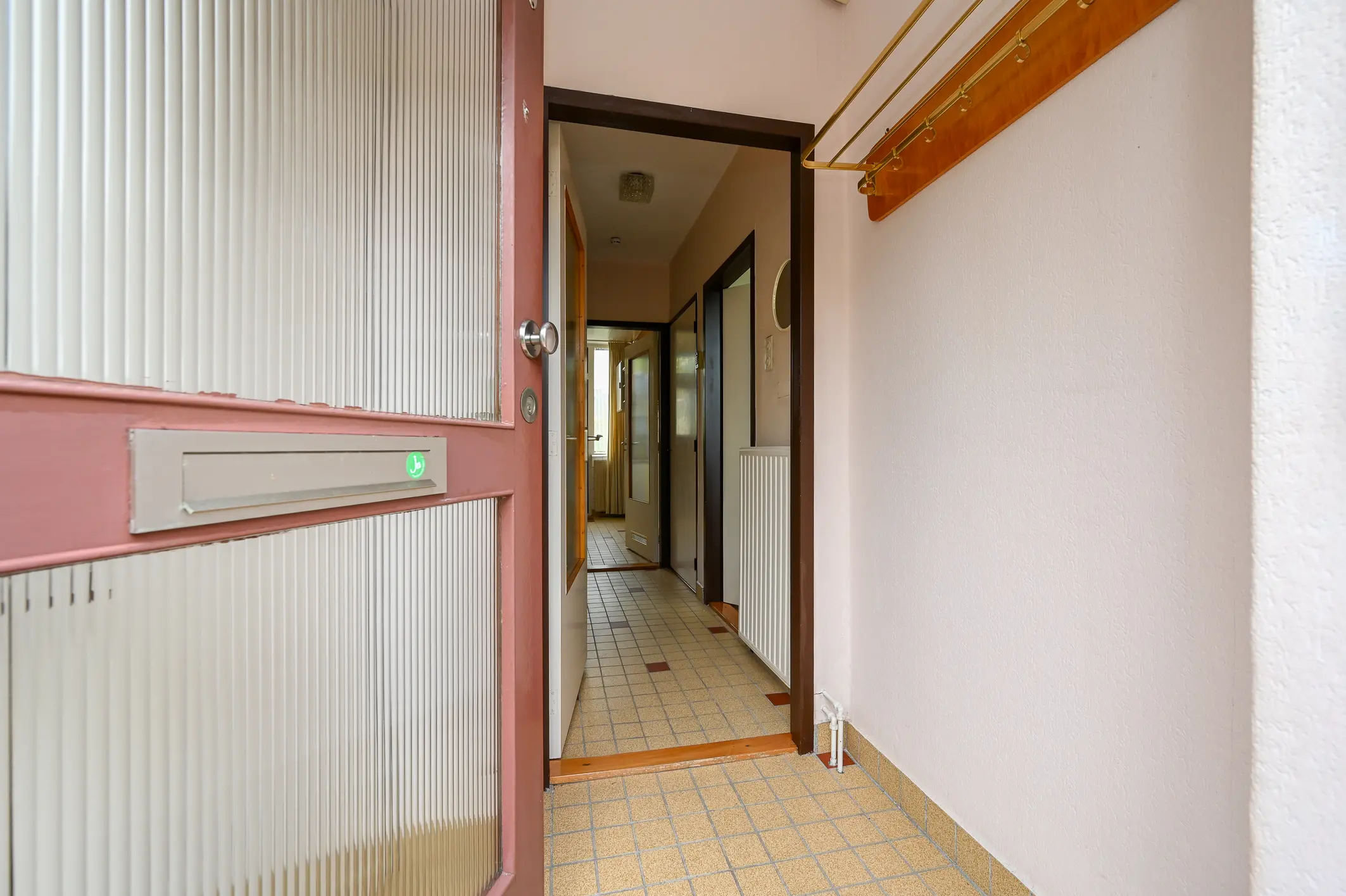 Via de entreehal betreed je de woning. Hier bevinden zich de meterkast, een apart toilet en de toegang tot de woonkamer.