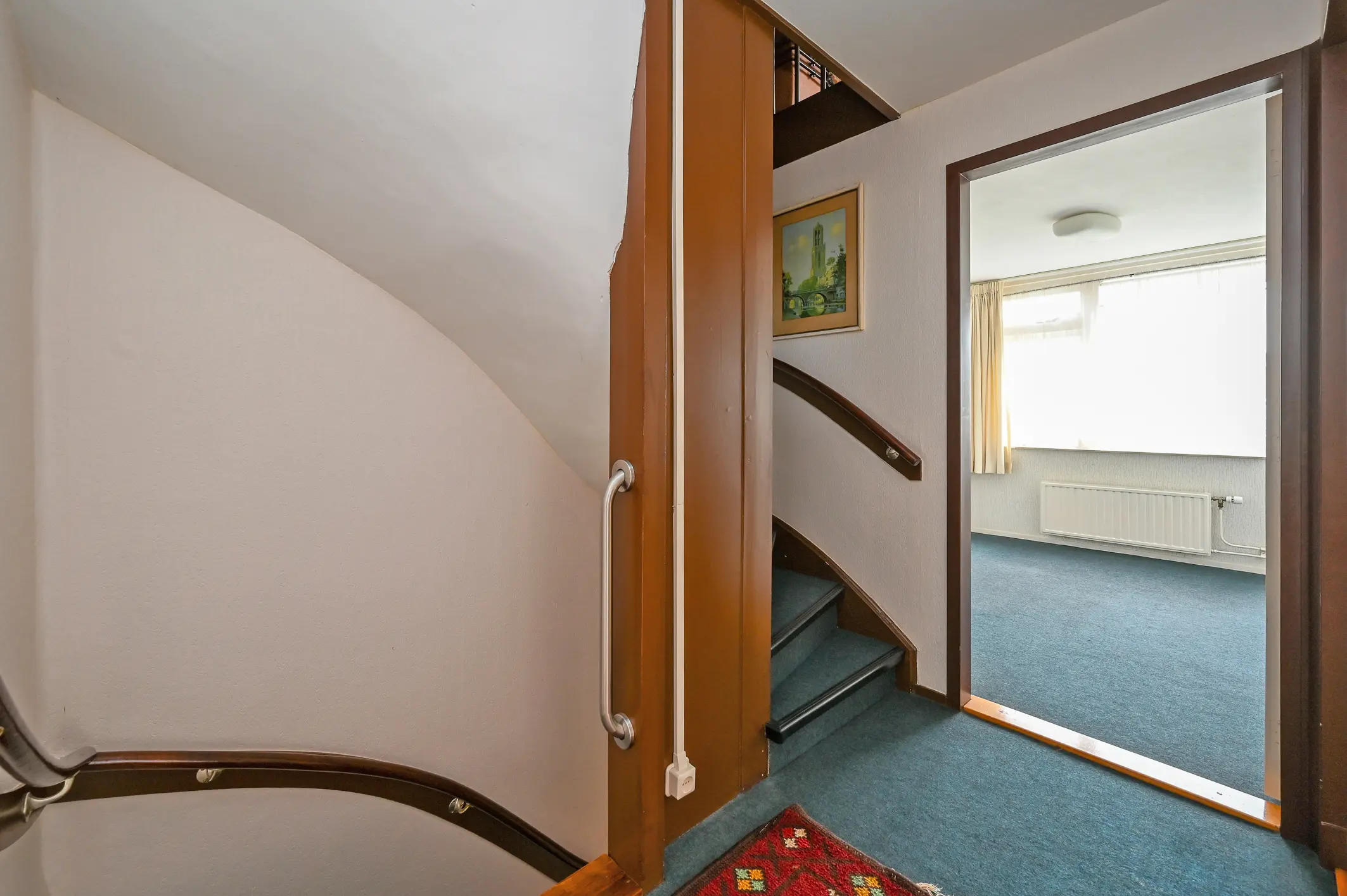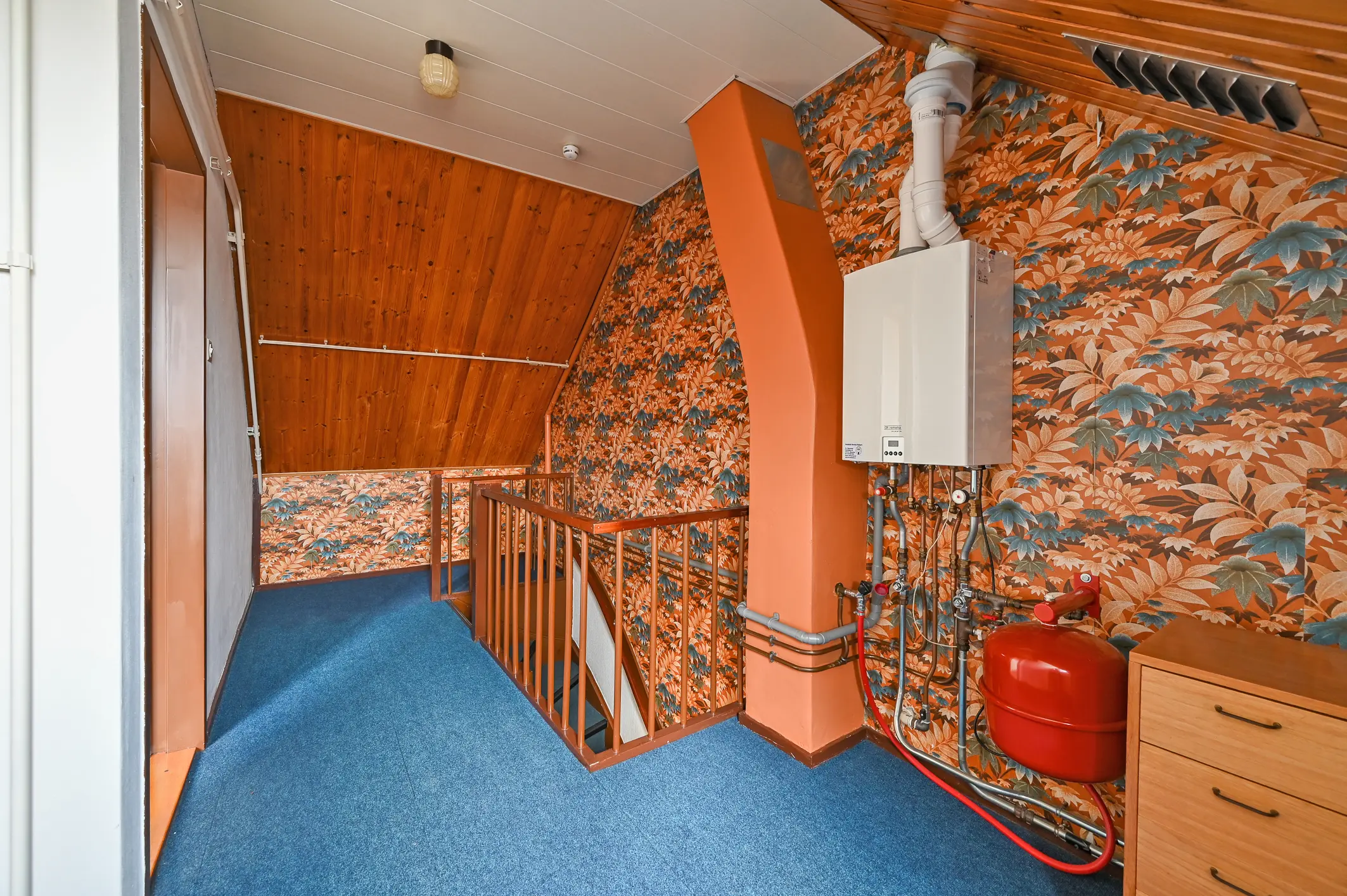 Via de overloop bereik je de tweede verdieping, waar zich een praktische wasruimte bevindt met aansluitingen voor de wasmachine en de opstelling van de cv-ketel (2016).
