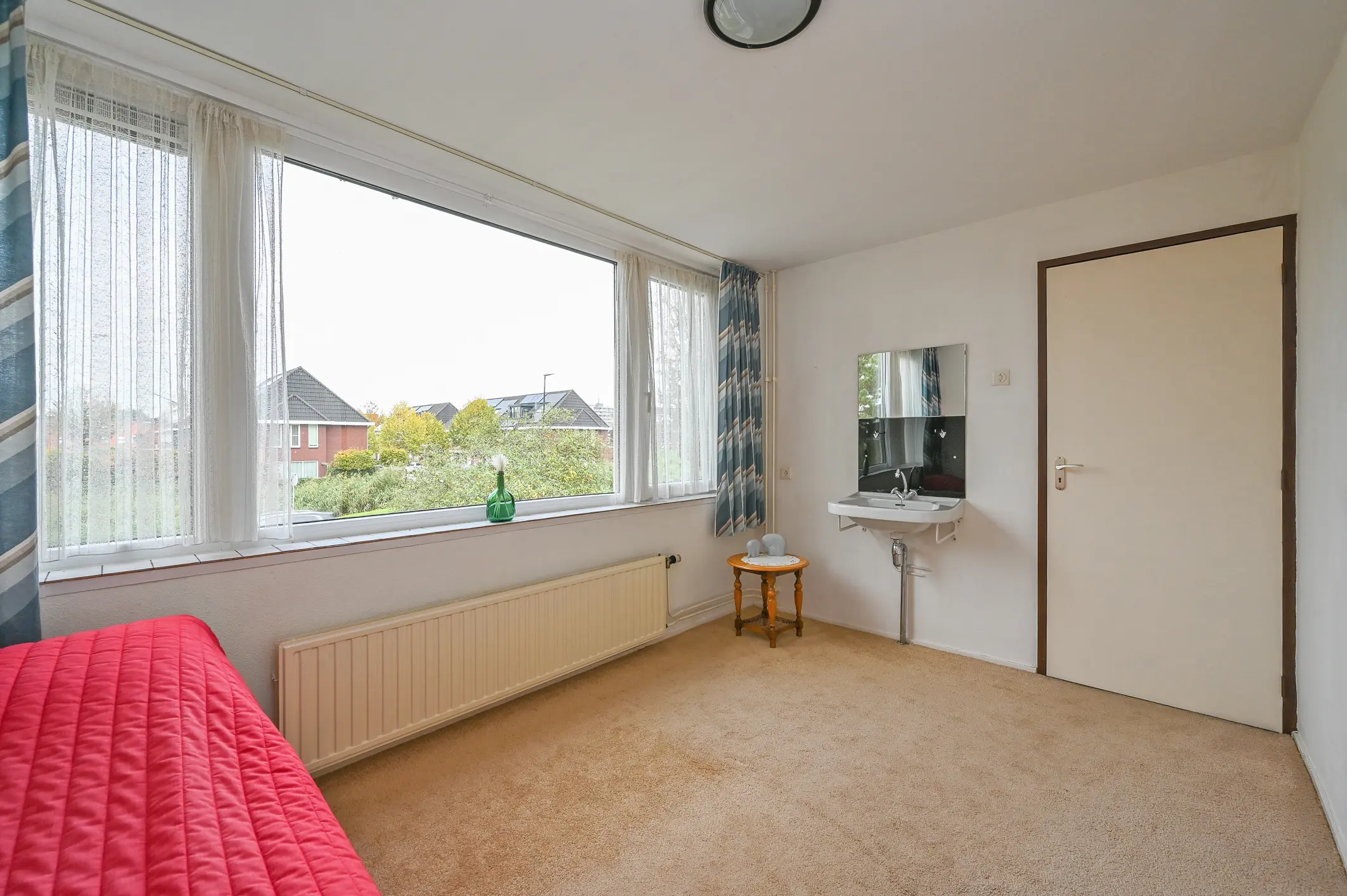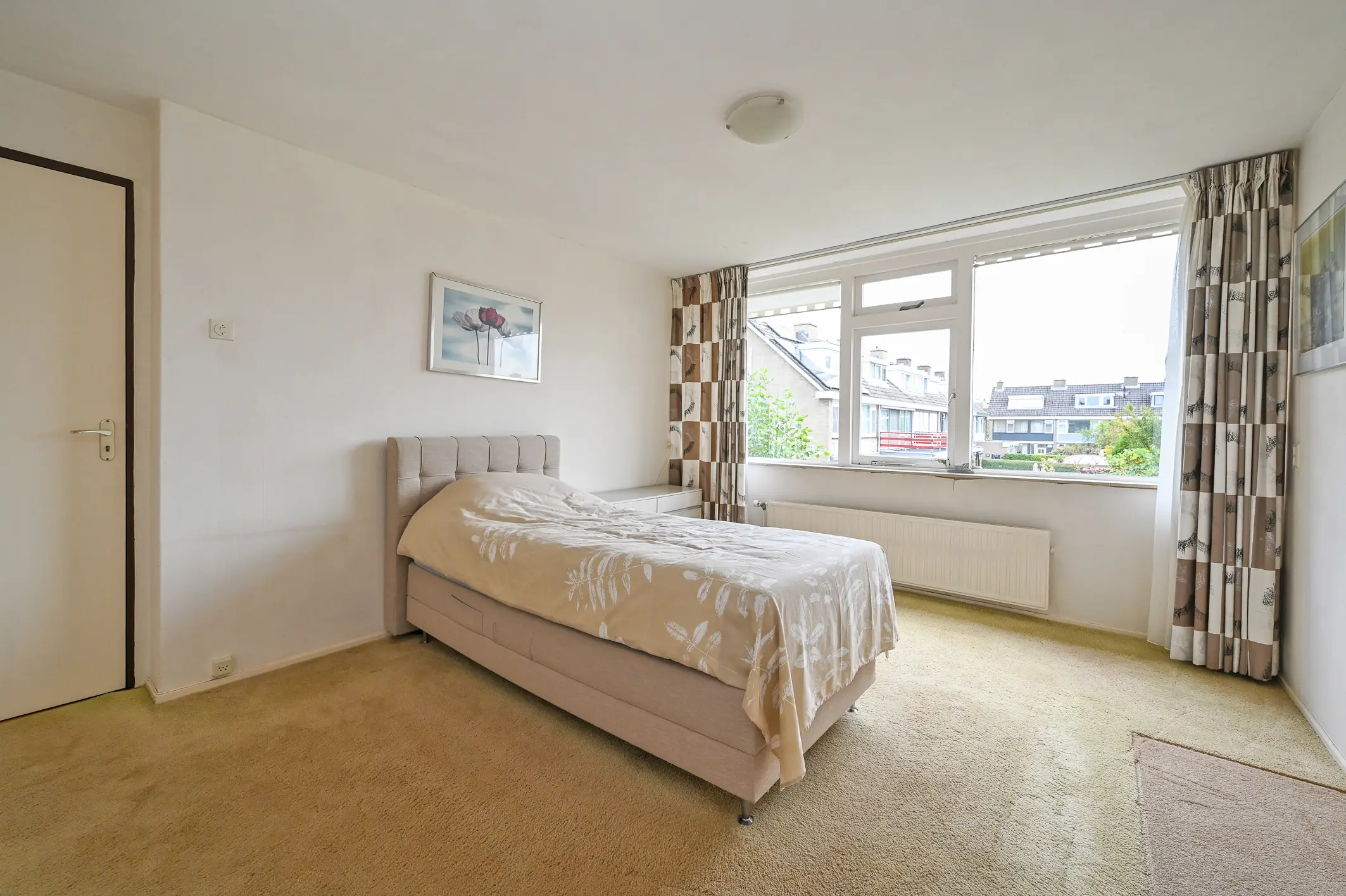 De overloop geeft toegang tot drie ruime slaapkamers. Eén slaapkamer ligt aan de voorzijde van de woning, terwijl de andere twee – waaronder de masterbedroom – zich aan de achterzijde bevinden.