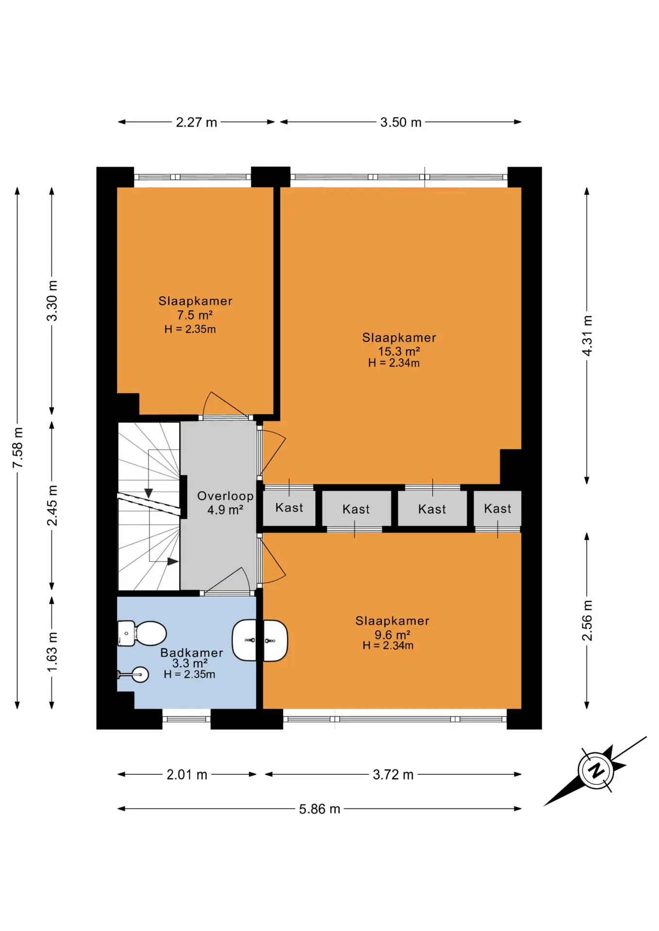 - Aantal kamers: 5 (waarvan 4 slaapkamers)