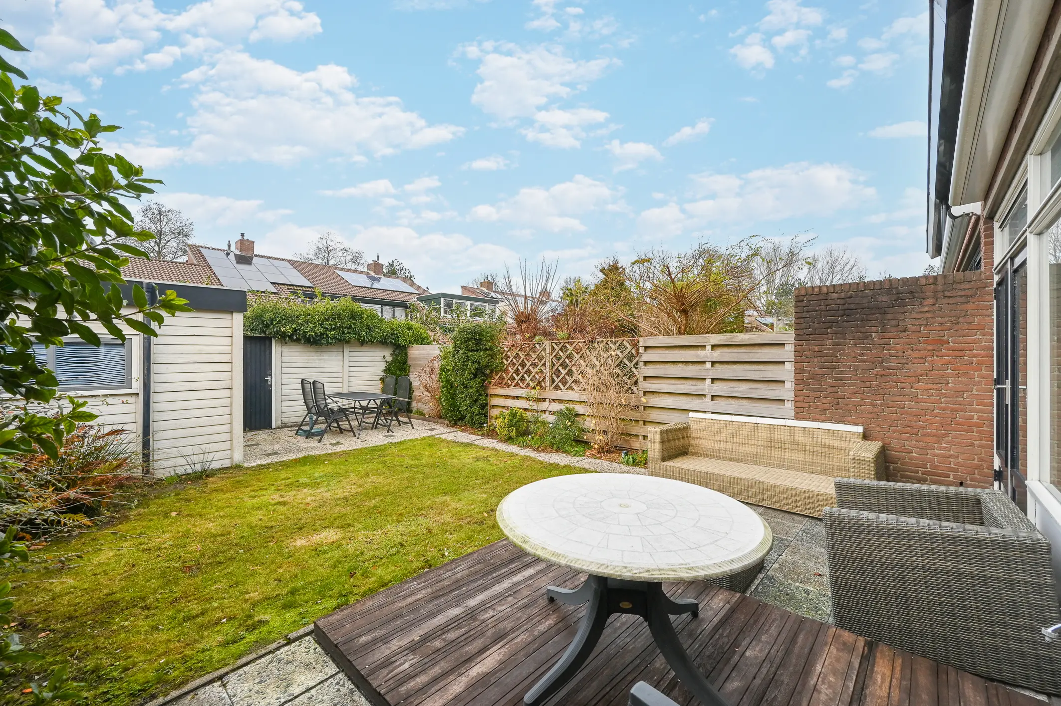 De achtertuin is gelegen op het noordwesten, waardoor je vrij de gehele dag kunt genieten van de zon. De tuin beschikt over een schuur, is bereikbaar via een achterom en biedt volop mogelijkheden om een fijne buitenplek te creëren.