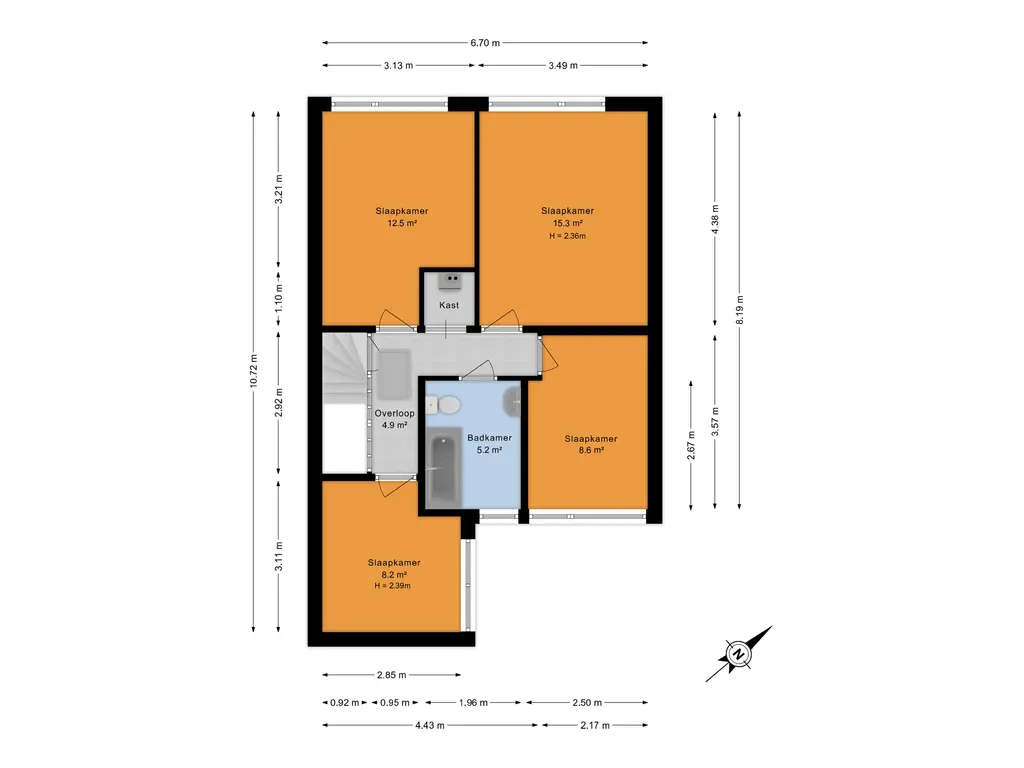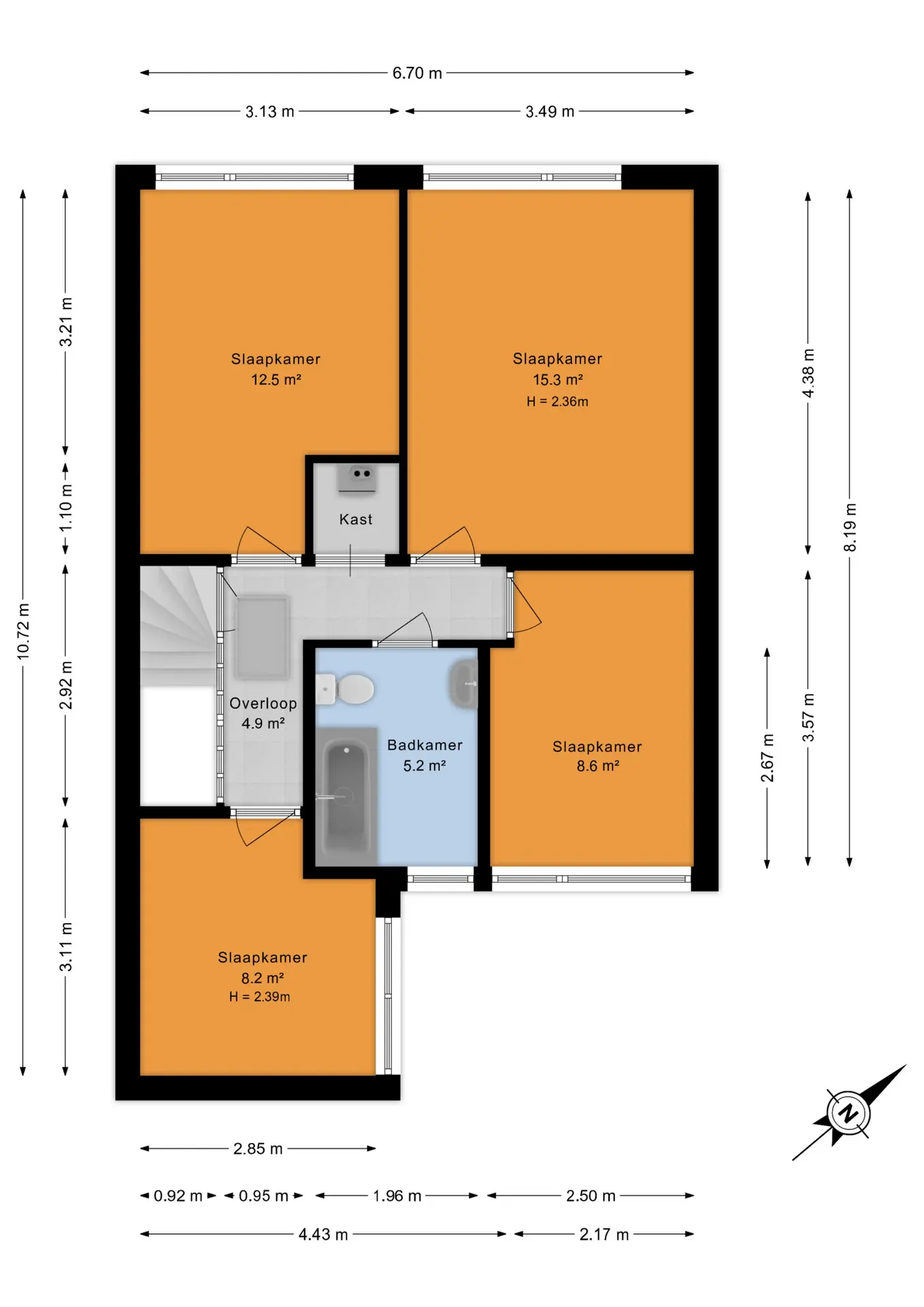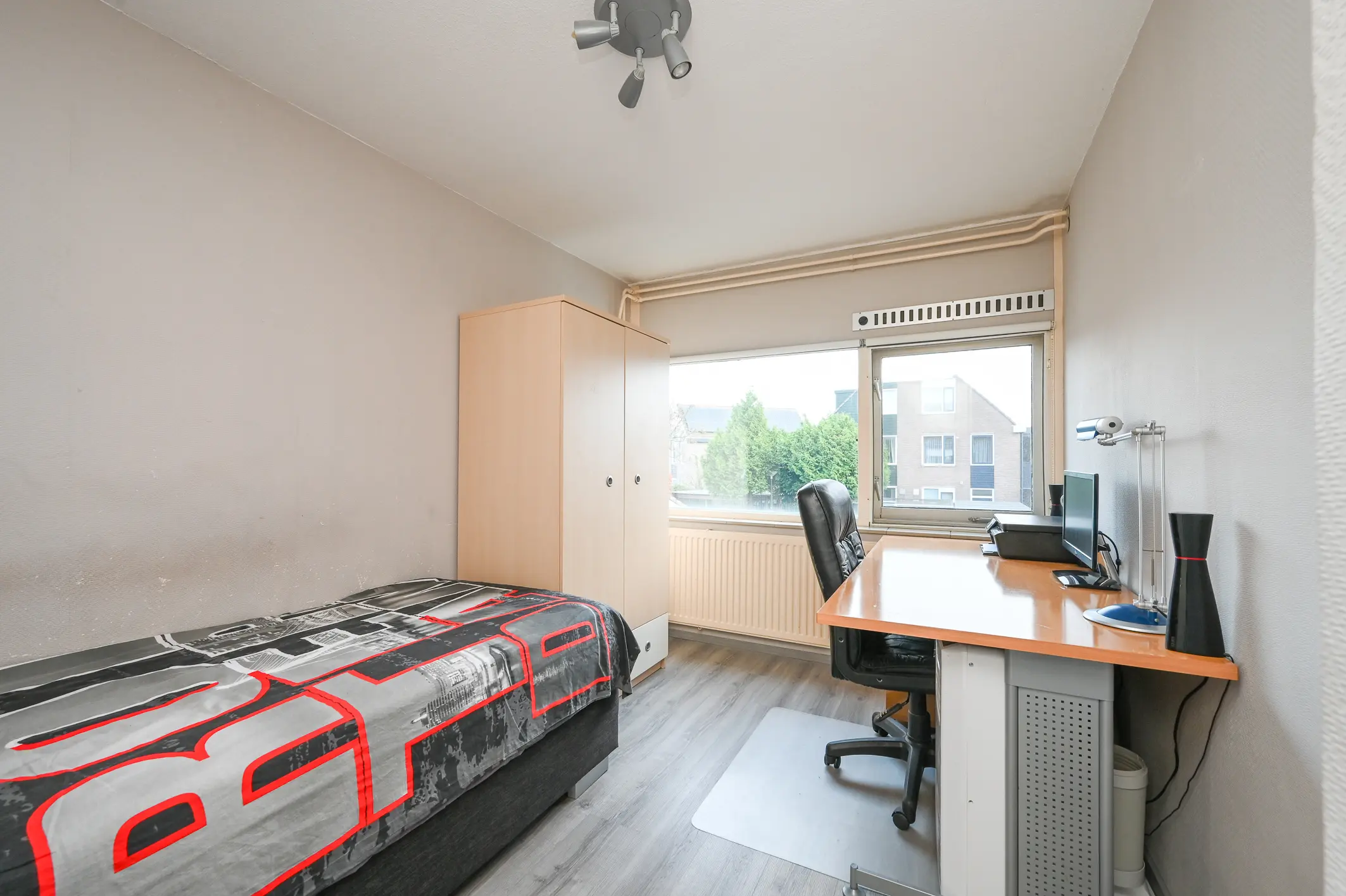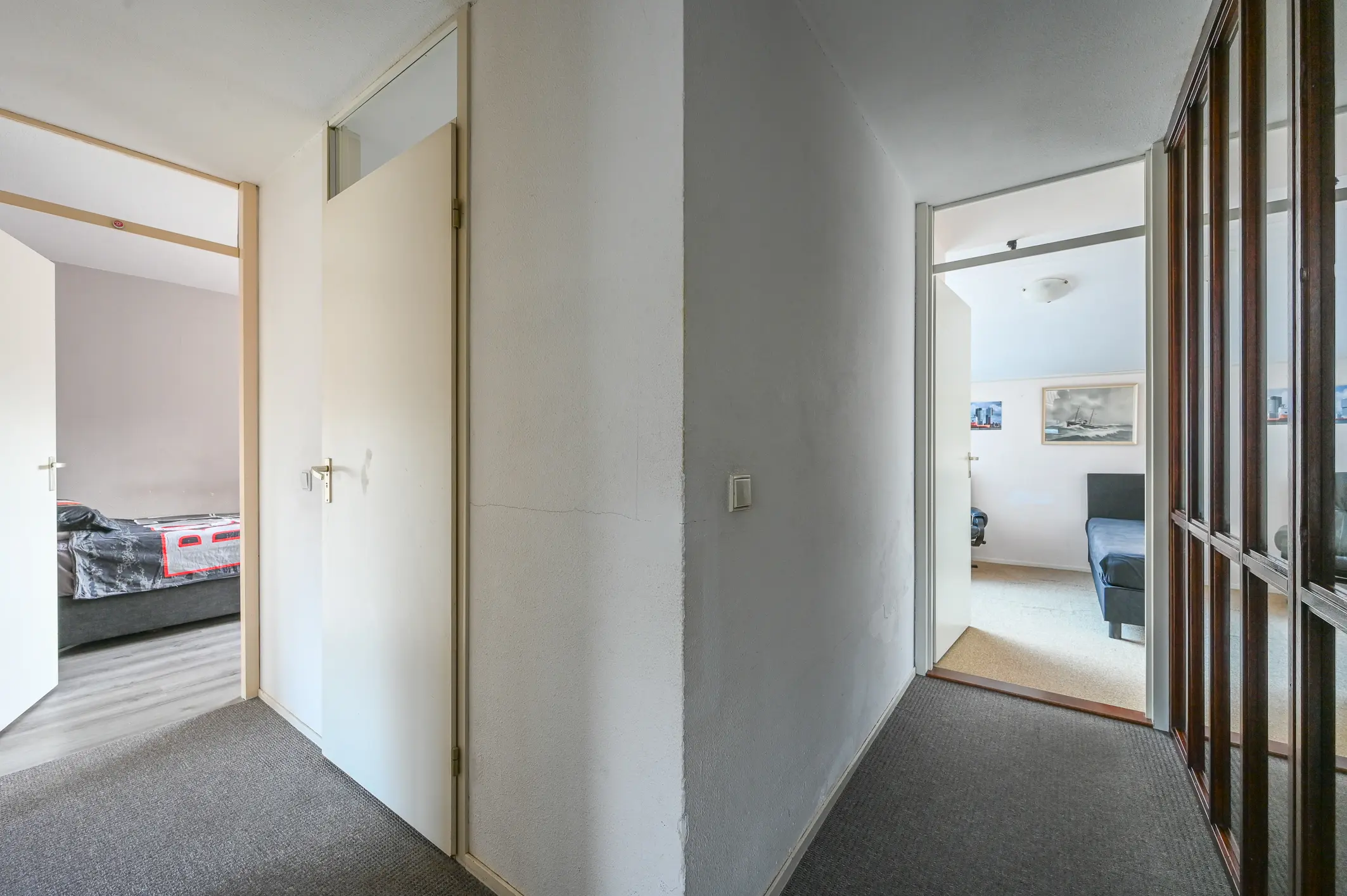 De overloop geeft toegang tot vier slaapkamers, allen goed van formaat en veelzijdig in te richten als slaap-, werk- of hobbykamer. De badkamer is compleet uitgevoerd met een ligbad/douchecombinatie, tweede toilet en een wastafel.