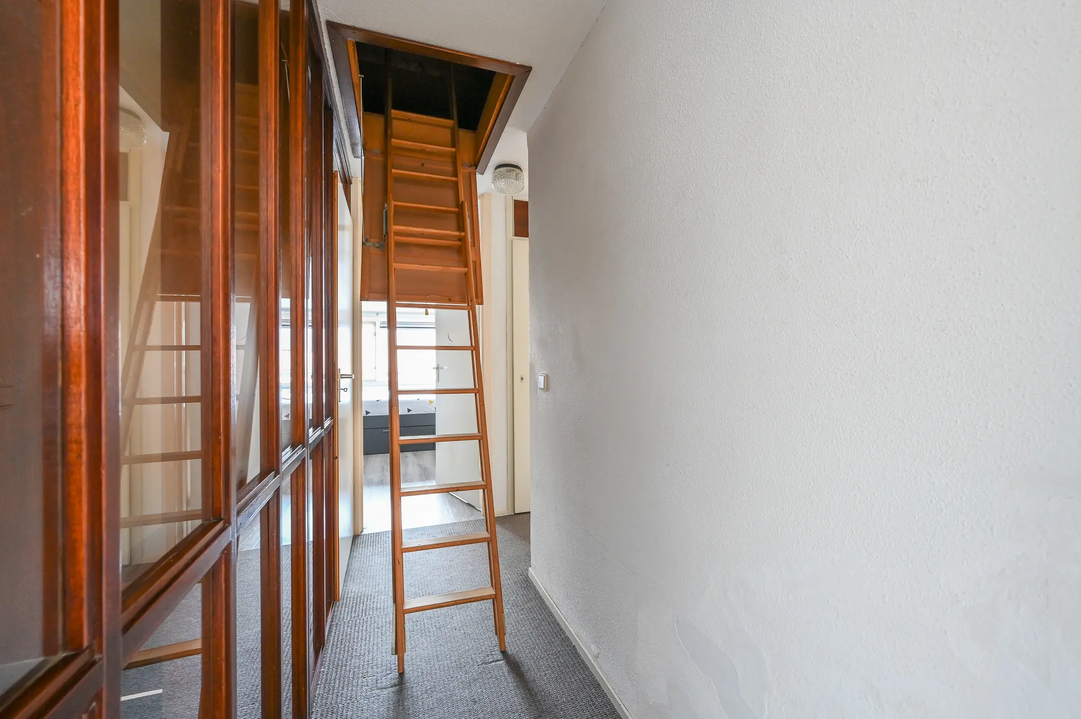 Vanaf de overloop is via een vlizotrap de vliering bereikbaar, ideaal voor extra bergruimte.