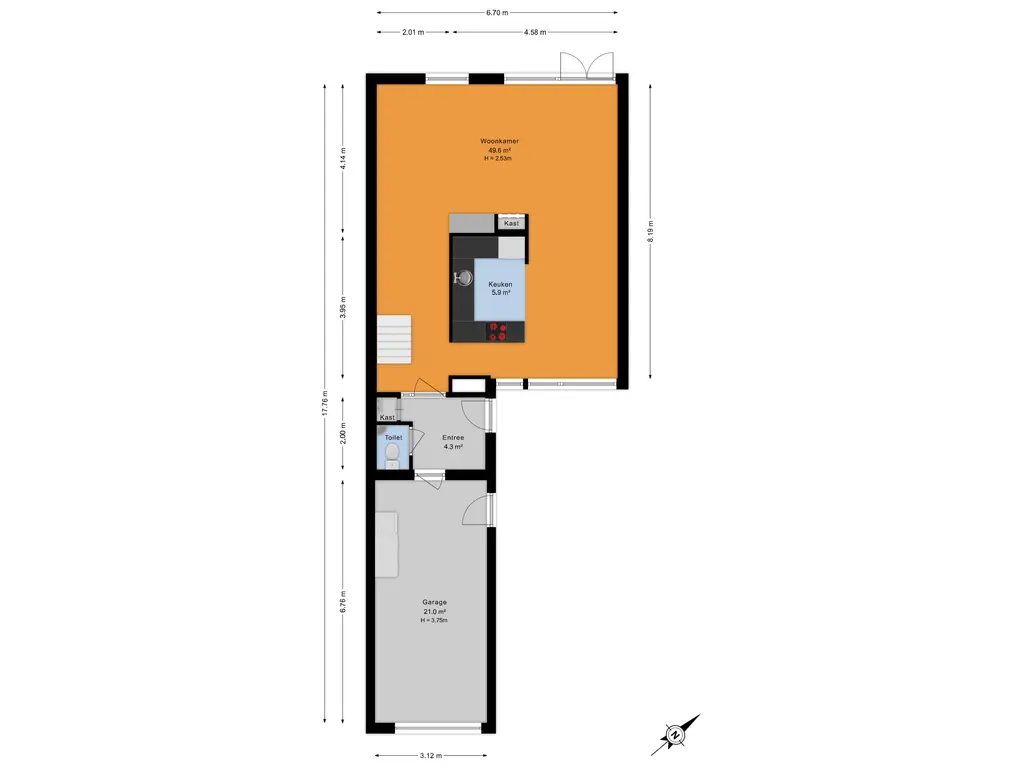 - Oprit en aangebouwde garage (ca. 21 m²)