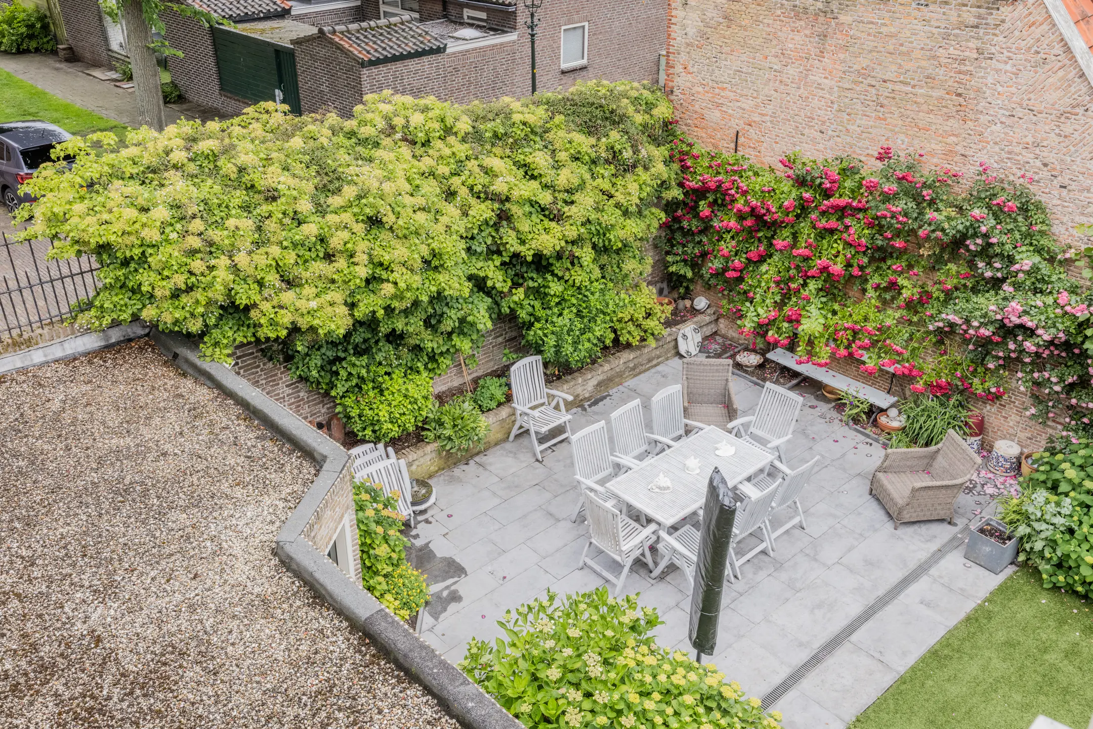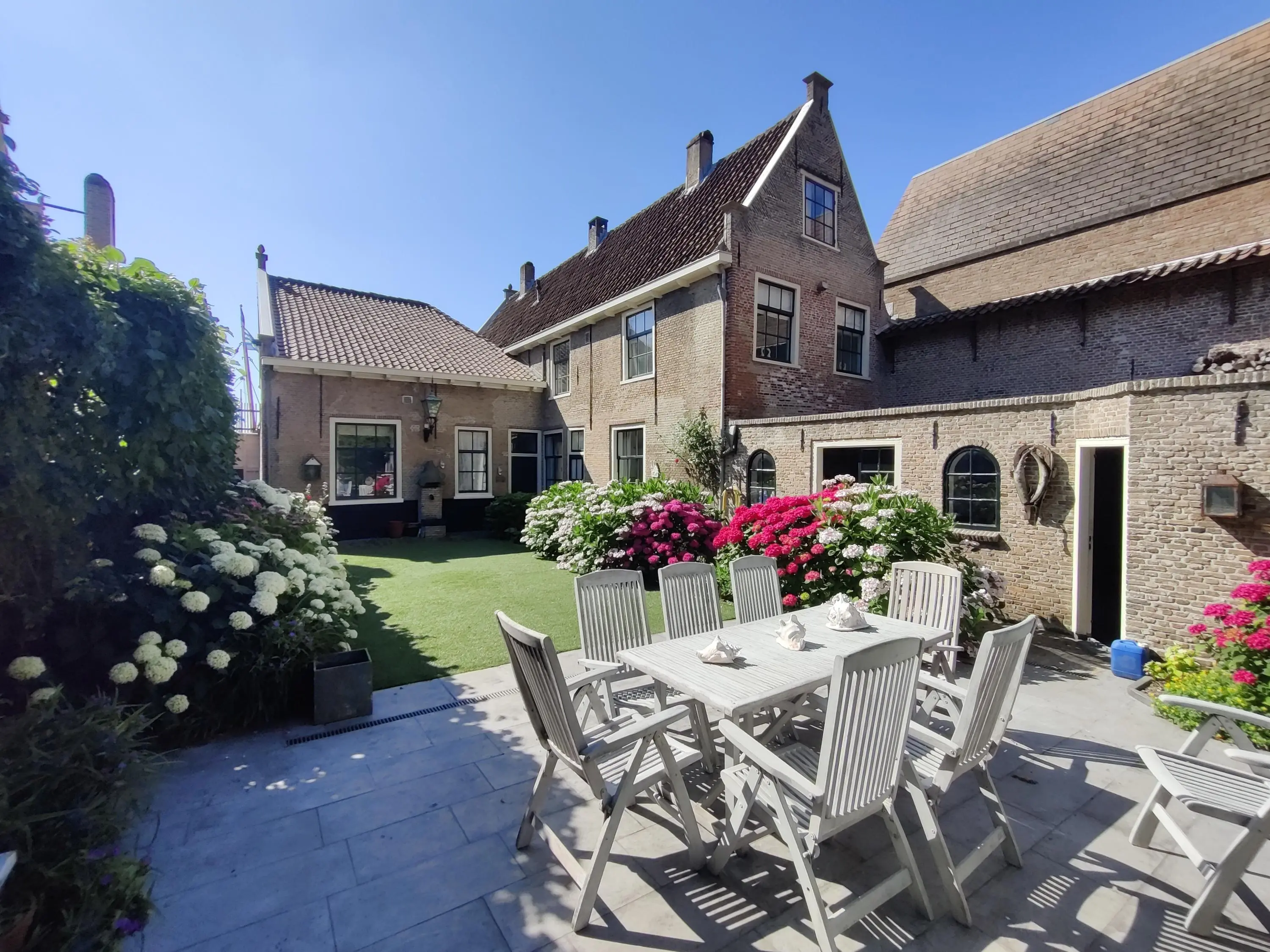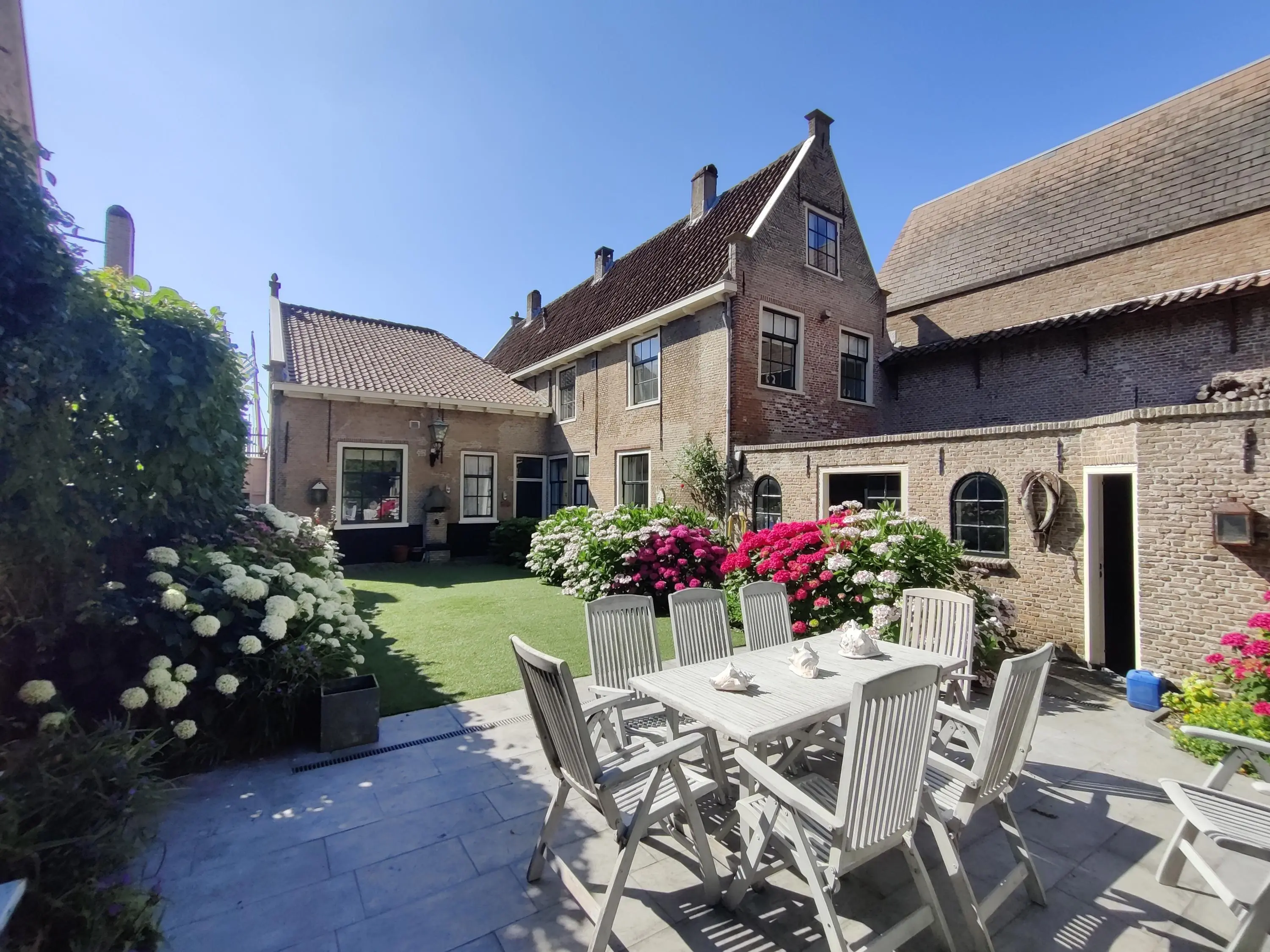 De Grote Kerk vormt hier een indrukwekkende achtergrond, wat de tuin een bijna schilderachtige uitstraling geeft. Met voldoende ruimte voor meerdere terrassen, speelgelegenheid, een buitenkeuken of zelfs een jacuzzi is dit een plek waar stad en rust naadloos samenkomen.