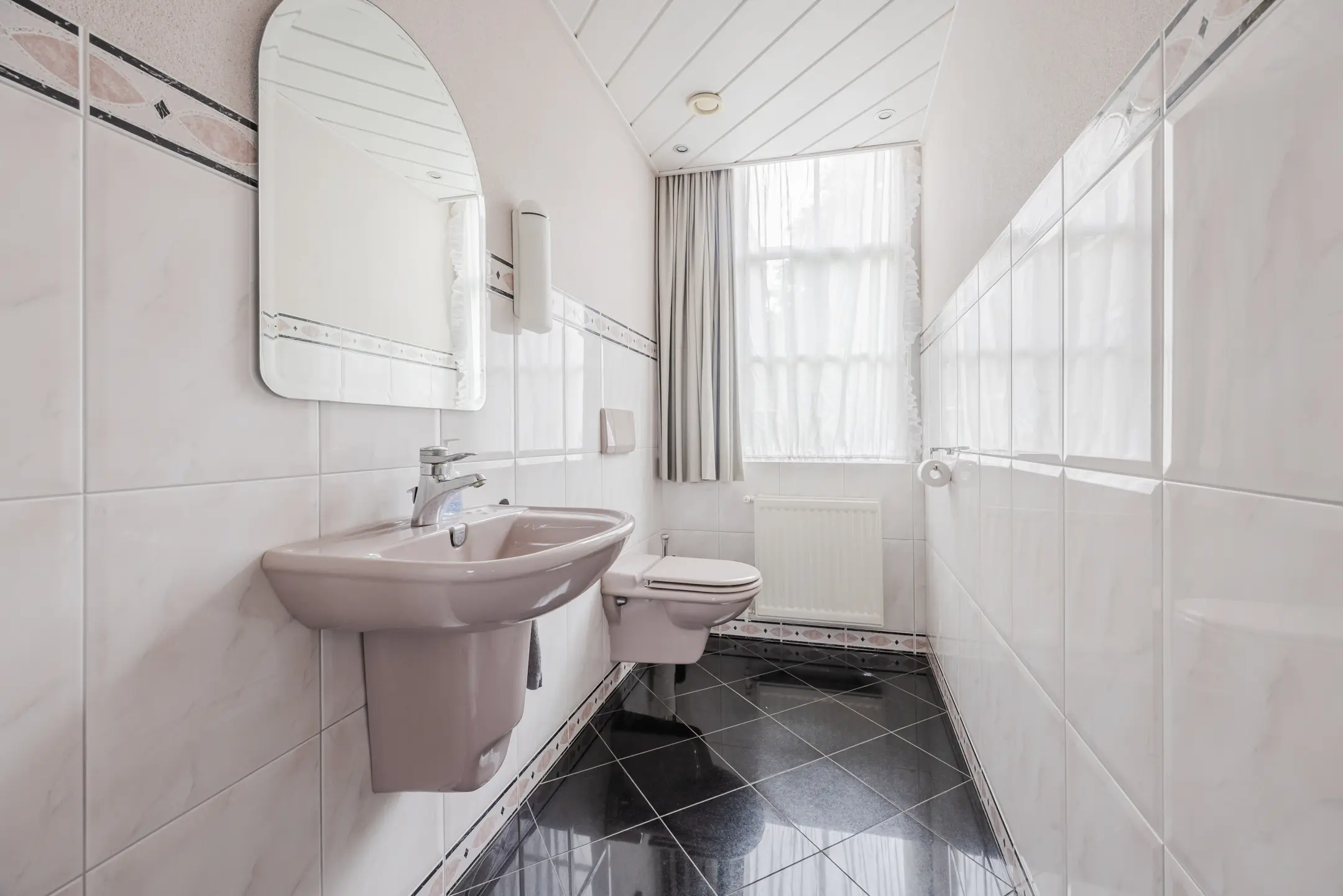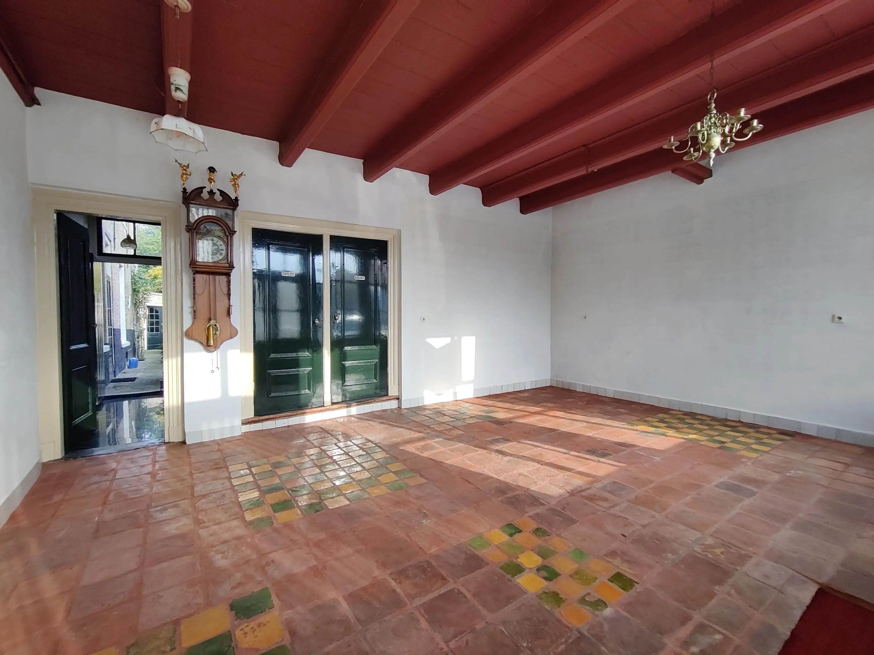 De entree bevindt zich in de voormalige kruidenierswinkel, een unieke en sfeervolle ruimte waar de rijke historie van het pand direct voelbaar is. Deze karaktervolle plek leent zich uitstekend als ontvangsthal, galerie, atelier, werkruimte tevens ook uitstekend geschikt voor het voeren van detailhandel. Deze ruimte vormt een bijzonder begin van de rondgang door het huis. Vanuit deze ruimte zijn diverse vertrekken bereikbaar. Aangrenzend bevindt zich een volledig betegelde badkamer met douche, ligbad en wastafel, evenals een separaat toilet – praktisch en ideaal voor gasten.
