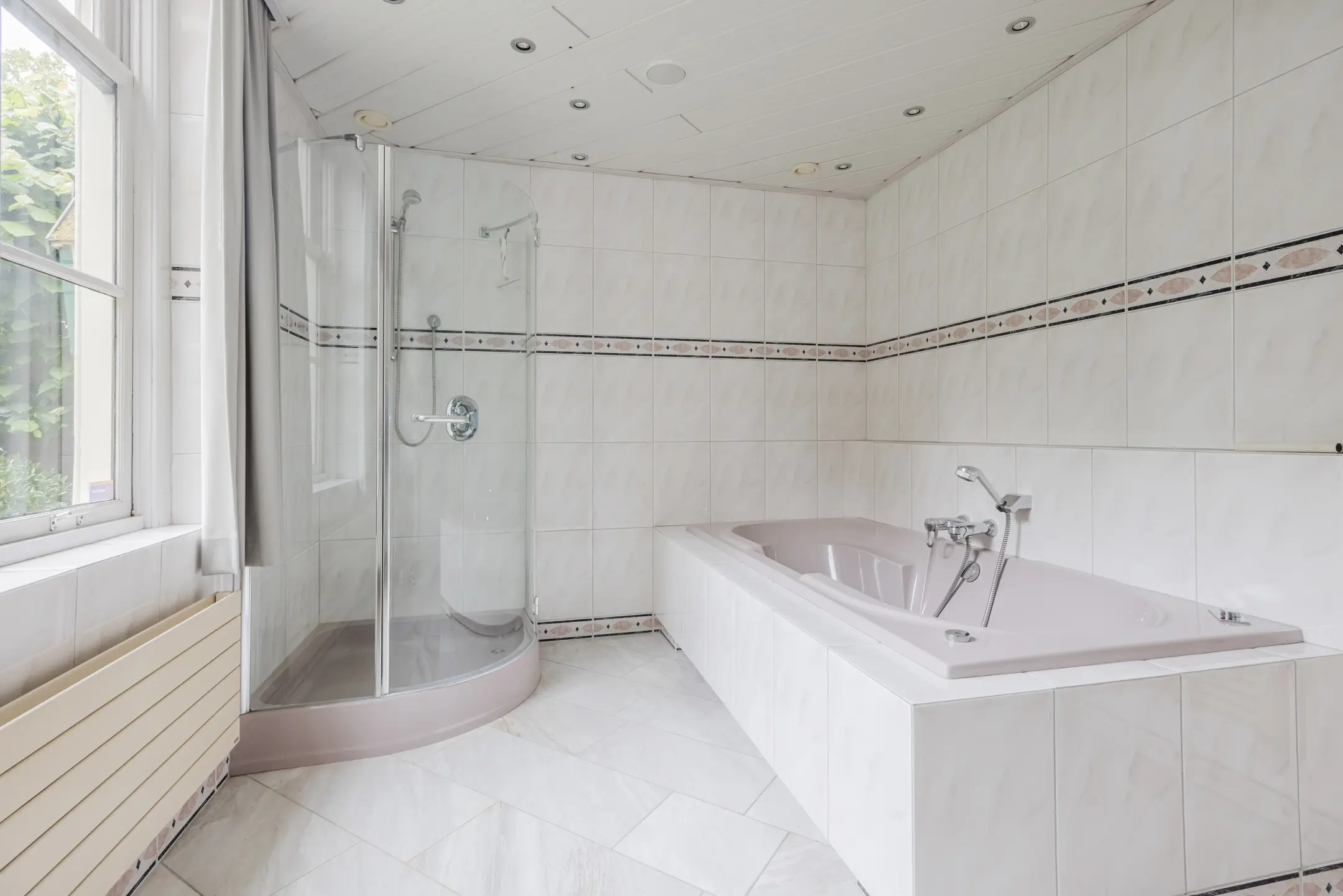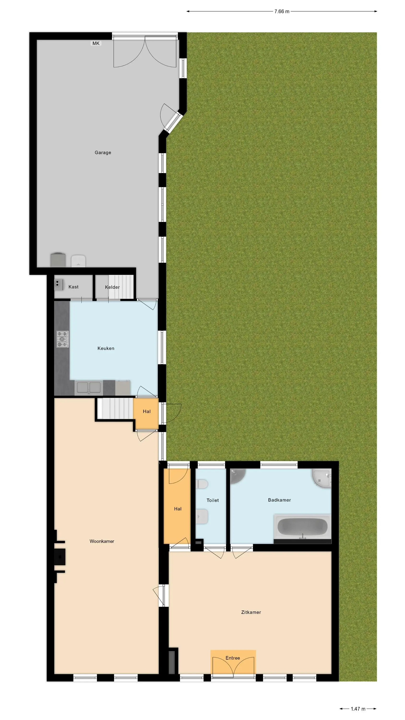 - Dubbele inpandige garage met wasmachine- en drogeraansluitingen