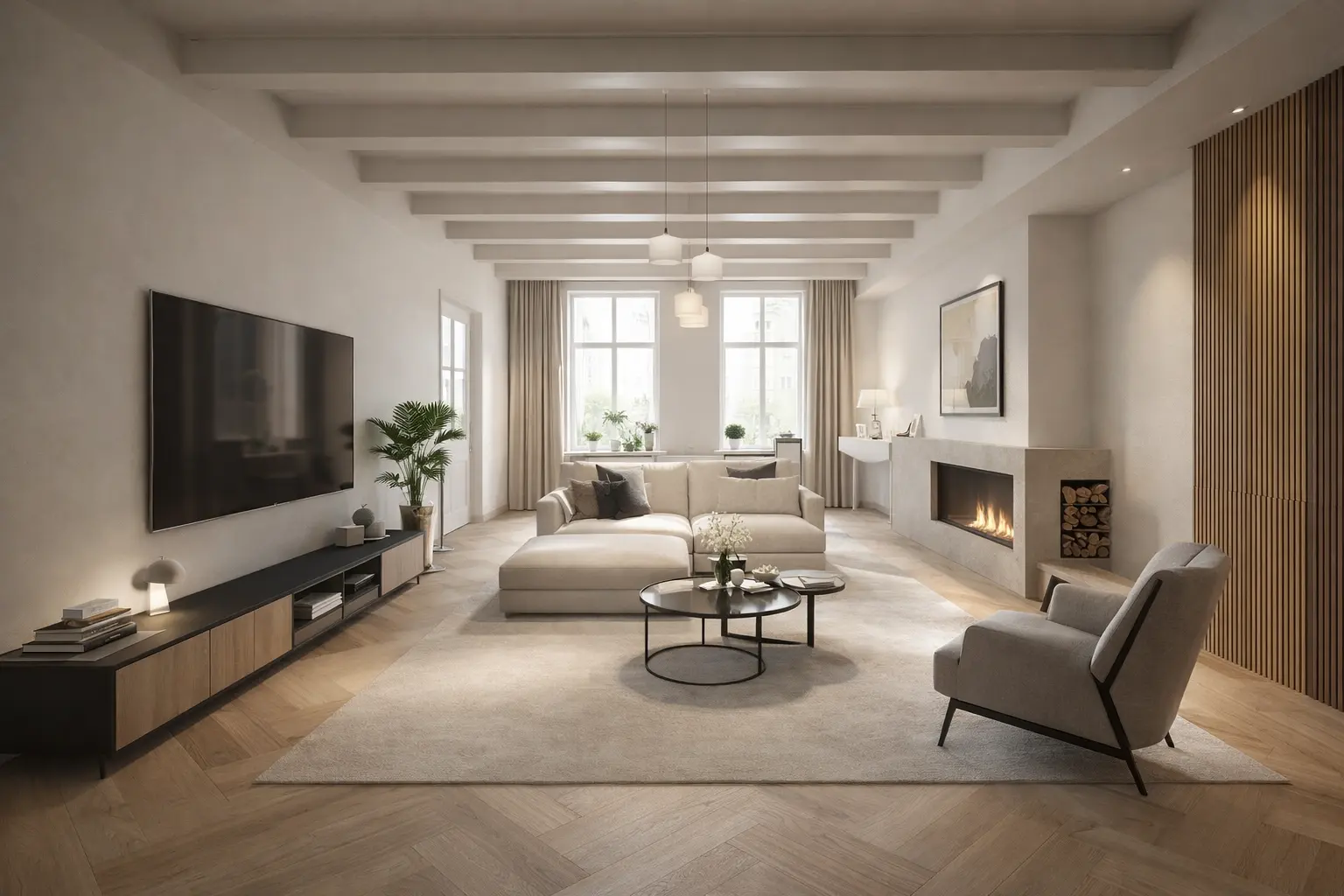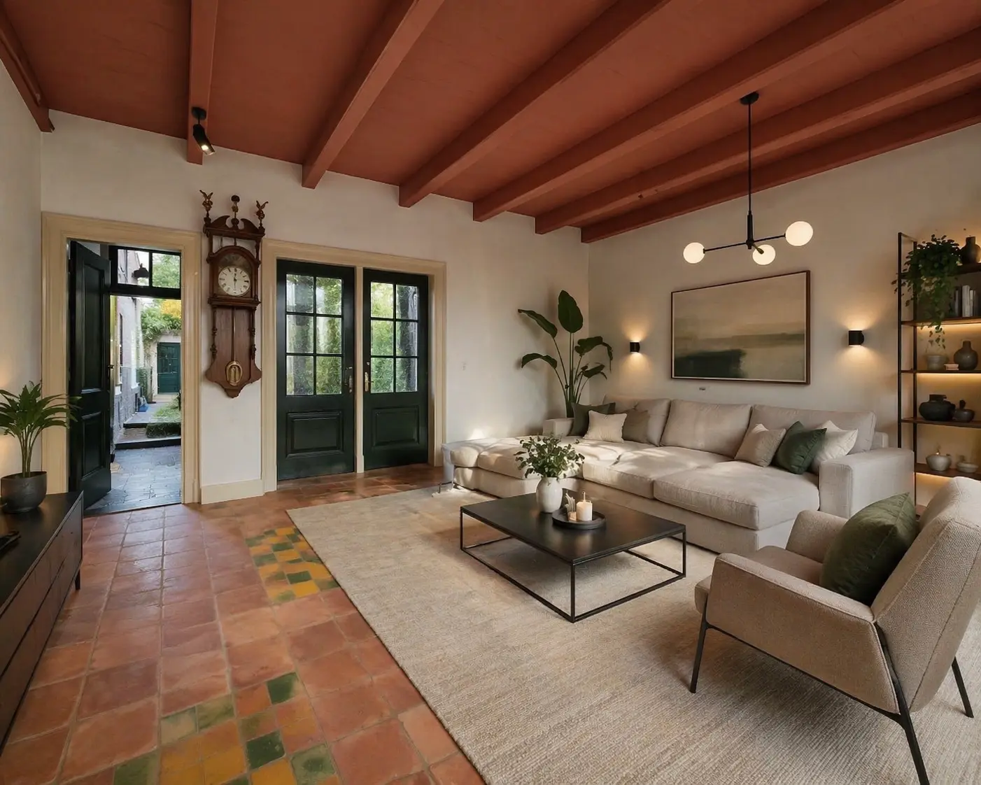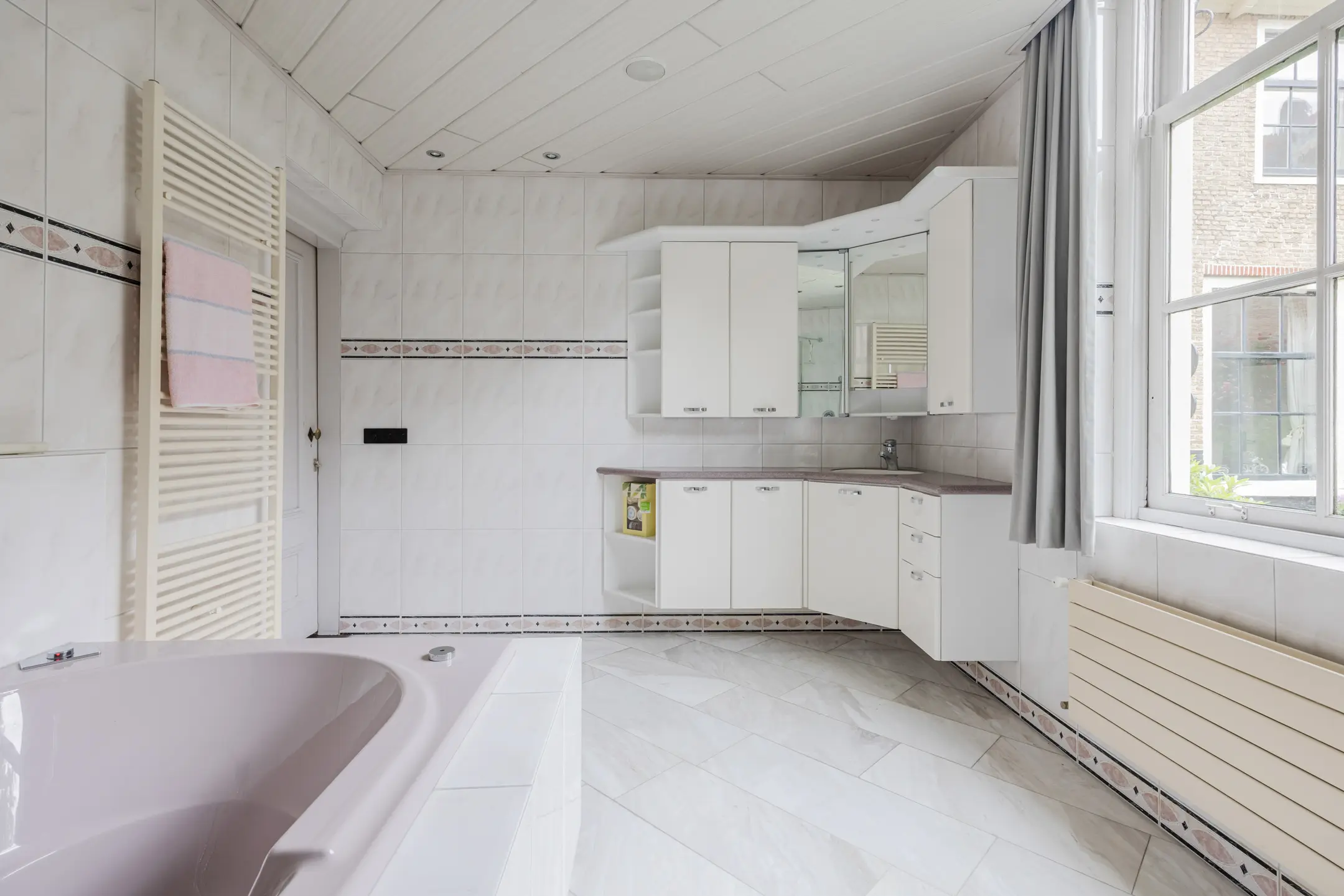 De begane grond vormt een perfecte balans tussen openheid en geborgenheid, met een fraaie mix van historische details en modern wooncomfort.