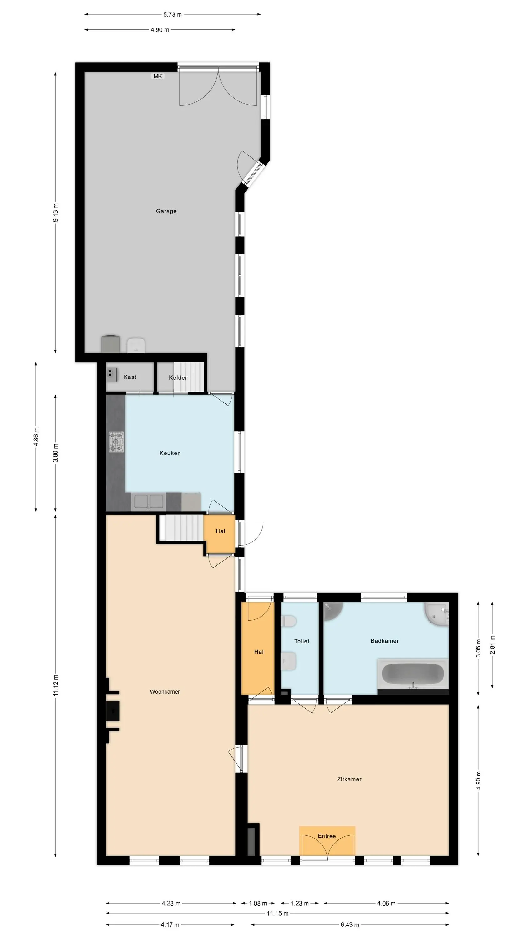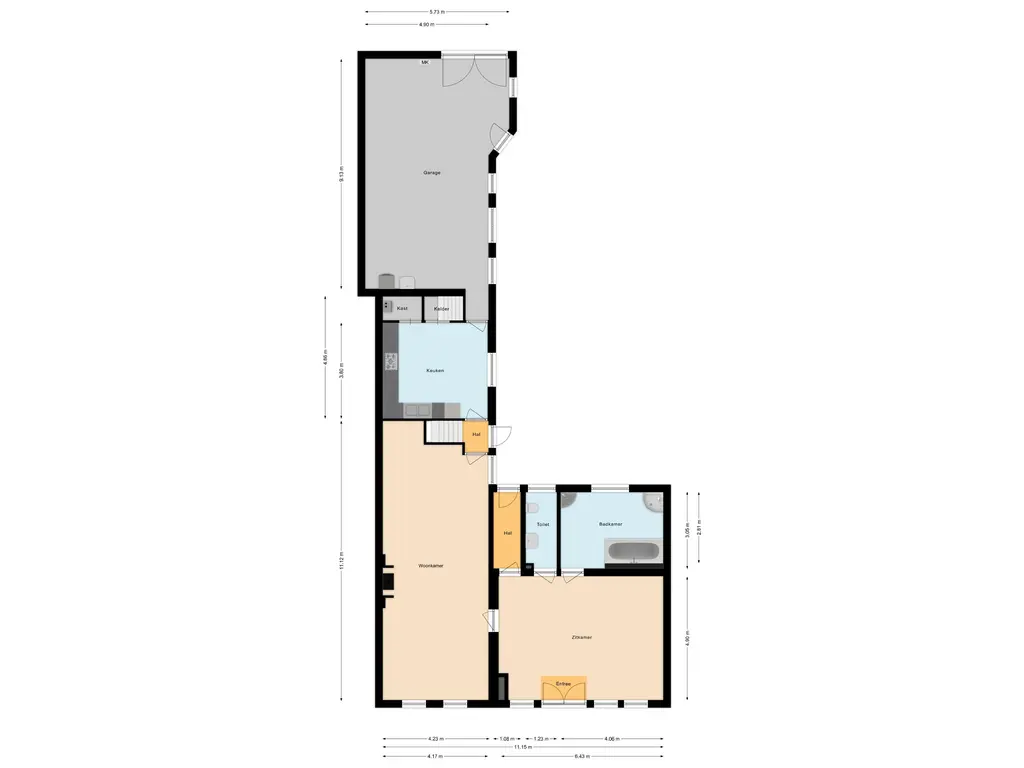 - Overige inpandige ruimte ca. 55 m² (garage en bergruimte)