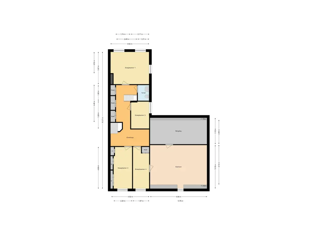 - Acht kamers, waaronder zes slaapkamers en een kantoorruimte