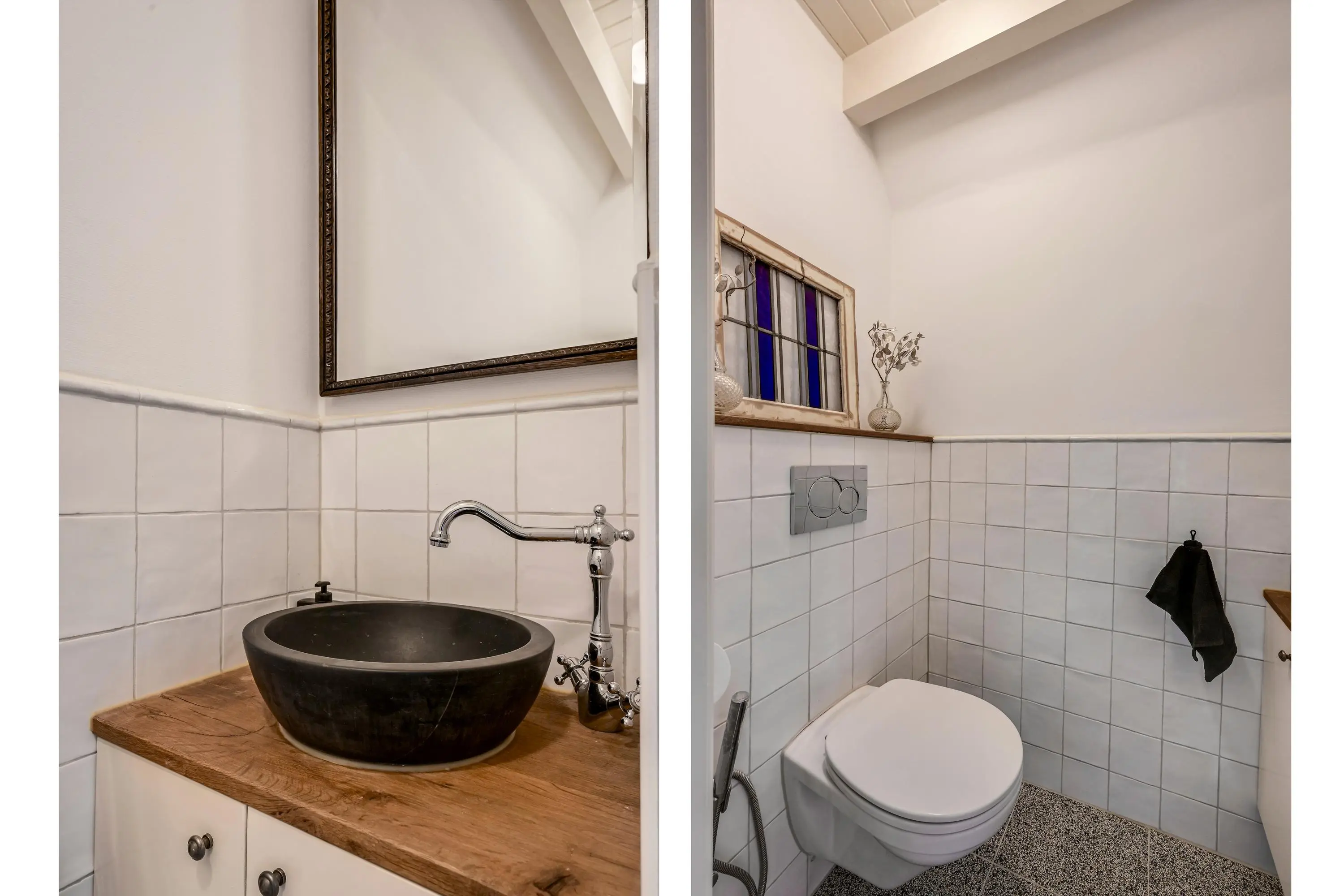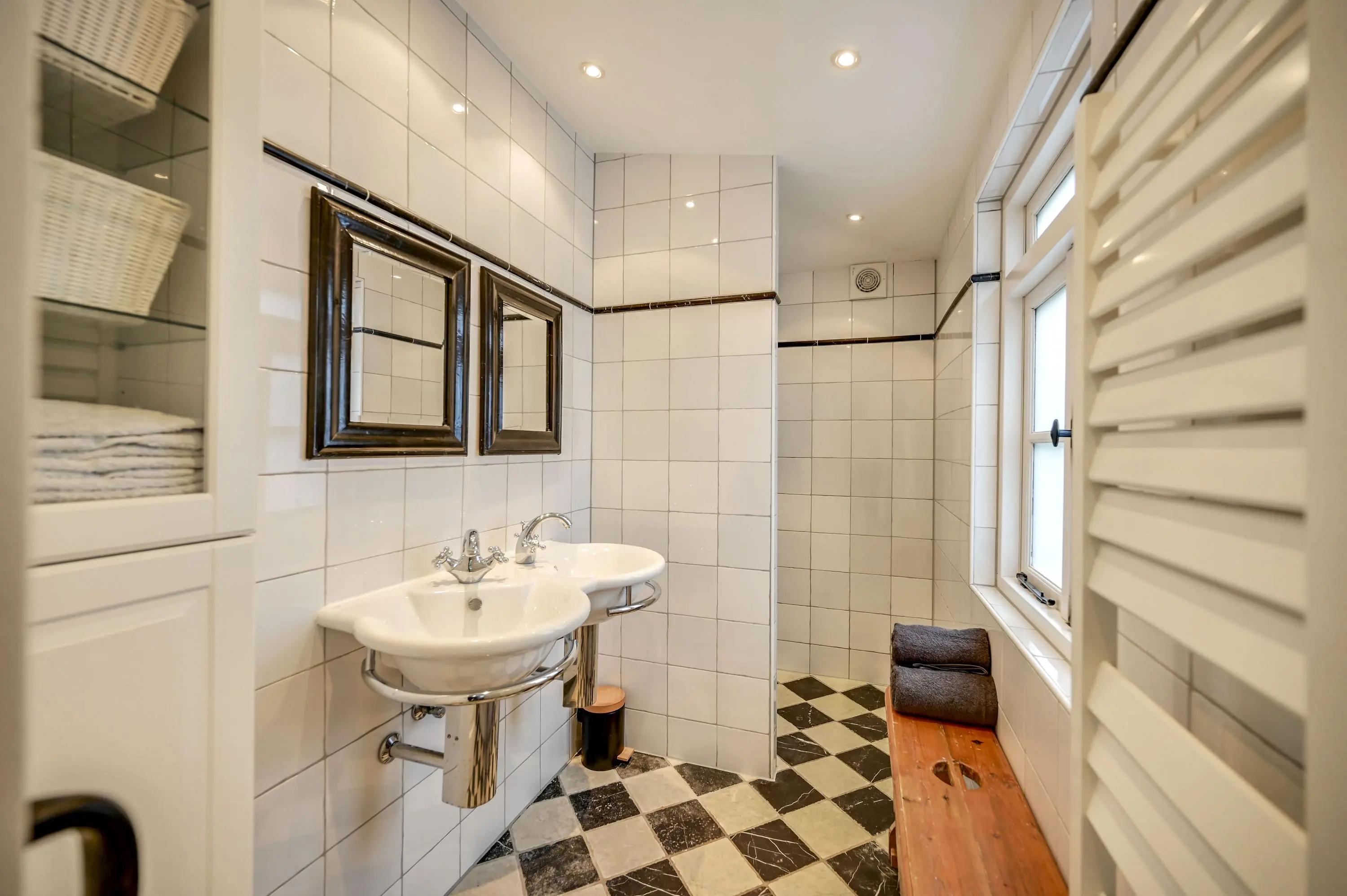 Op de begane grond bevindt zich tevens de badkamer met inloopdouche en een dubbele wastafel, wat zorgt voor extra comfort en praktisch gebruiksgemak. Het toilet op de begane grond is via de keuken te bereiken. Dit toilet is voorzien van een lichtkoepel wat extra veel daglicht binnen brengt.