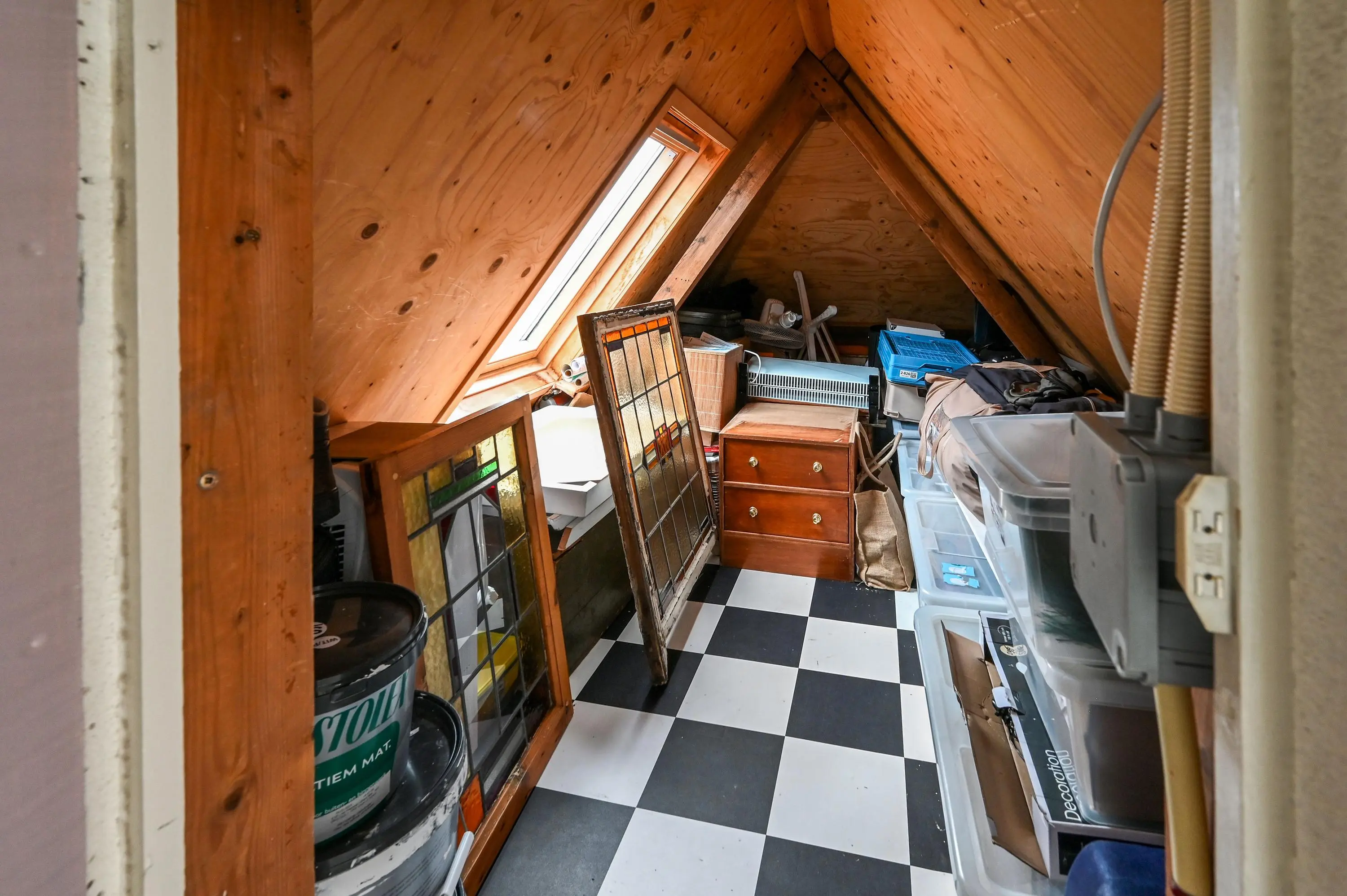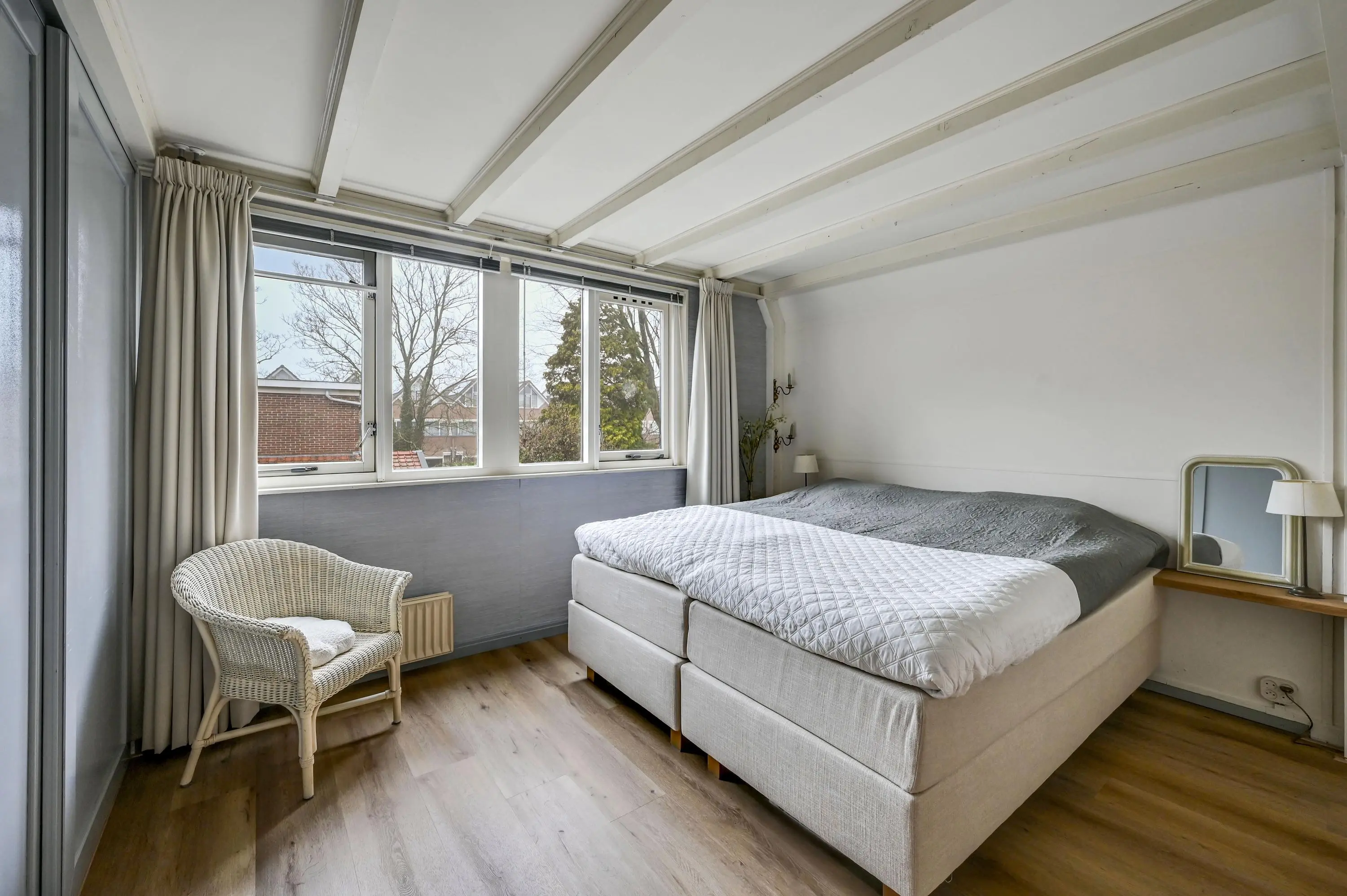 De tweede verdieping biedt een 3e royale slaapkamer met Frans balkon. Daarnaast is er een aparte bergruimte met dakraam, ideaal voor opslag.