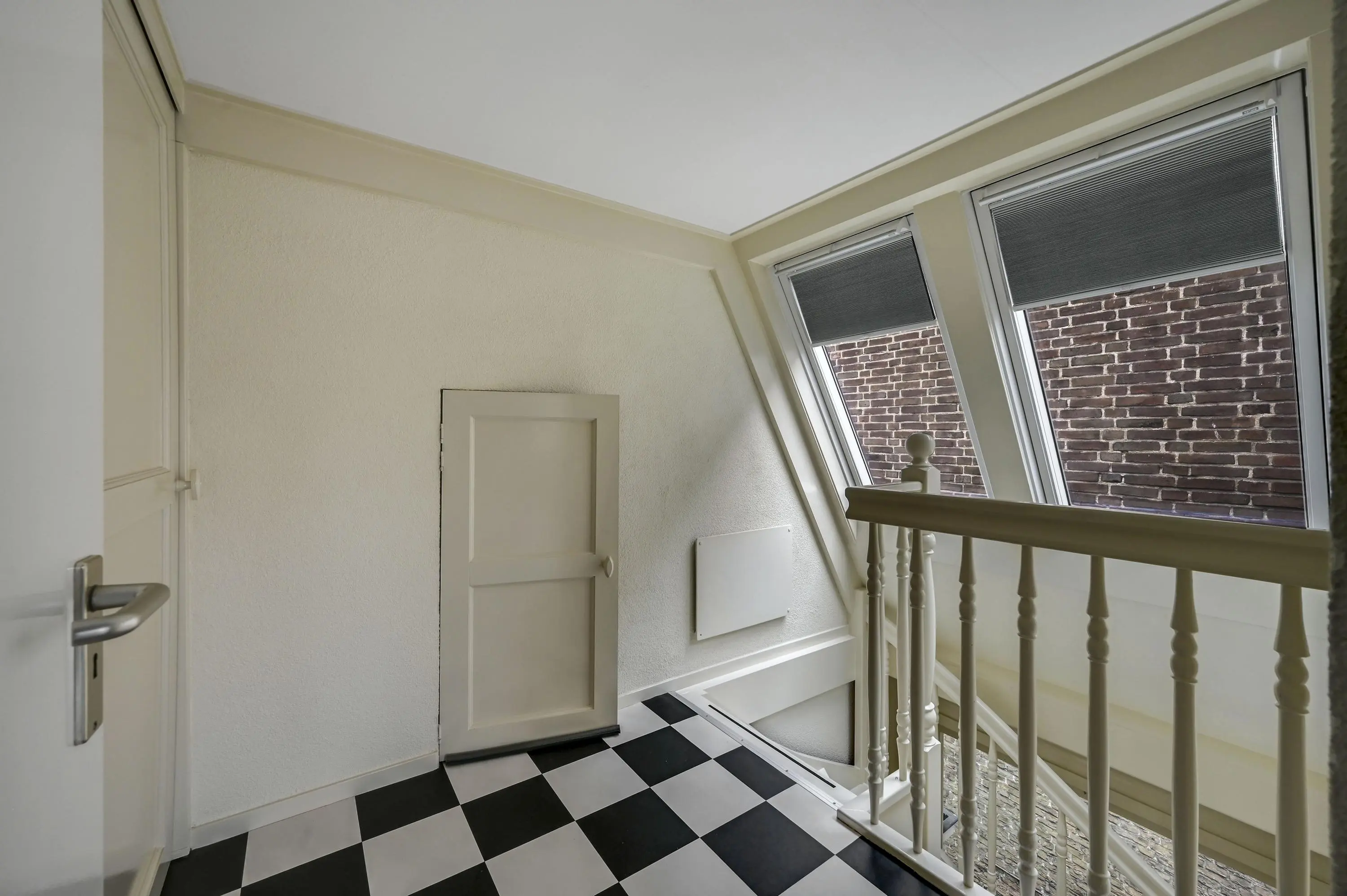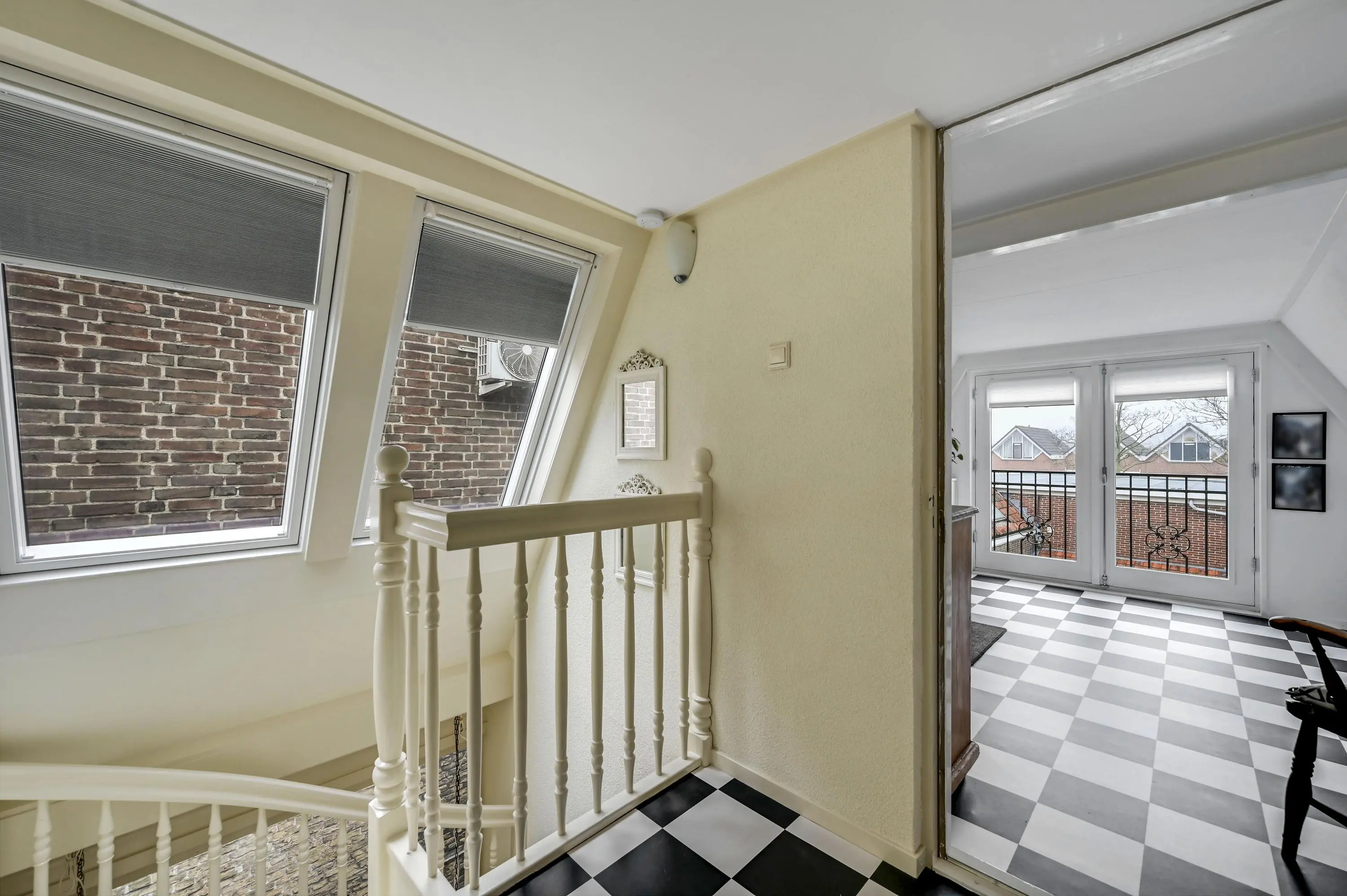 Het trapgat met fraaie raampartij in de gevel en het dak zorgt voor veel lichtinval en versterkt het ruimtelijke gevoel in huis.