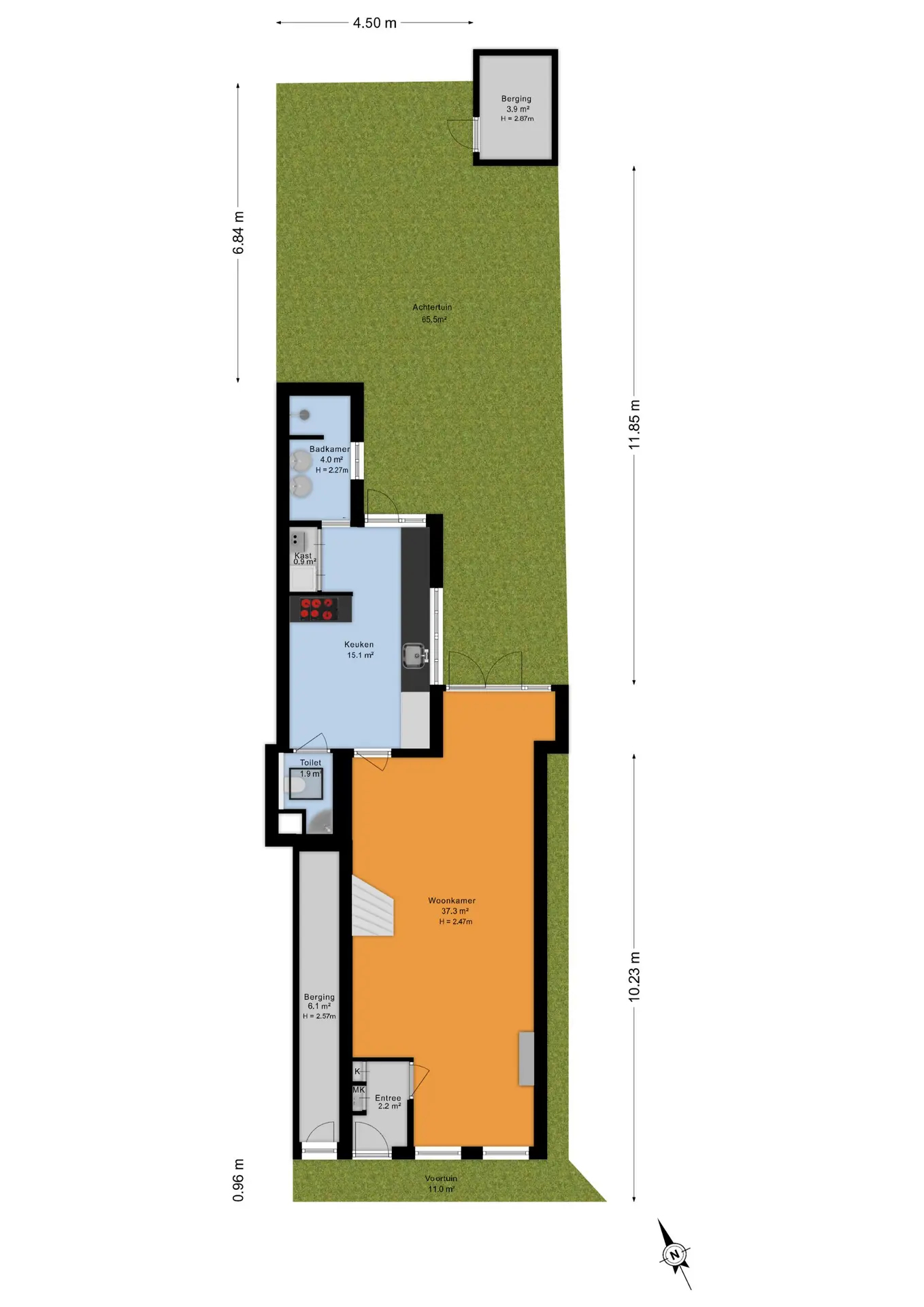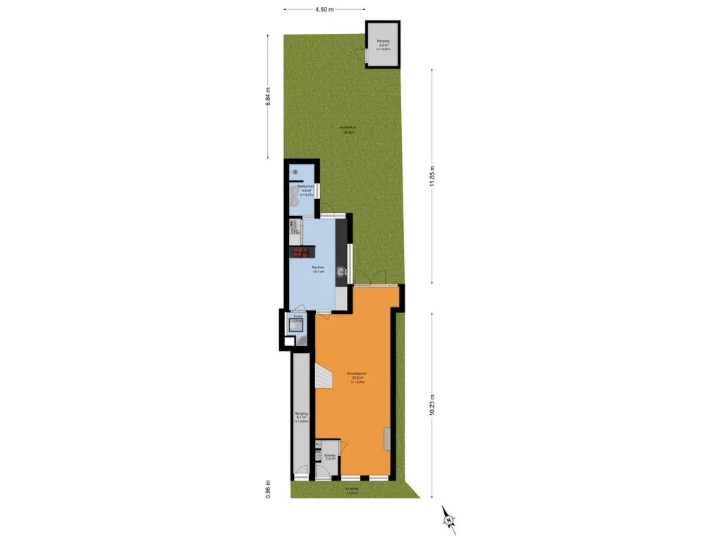 - Diepe tuin met overkapping, buitenkeuken en berging