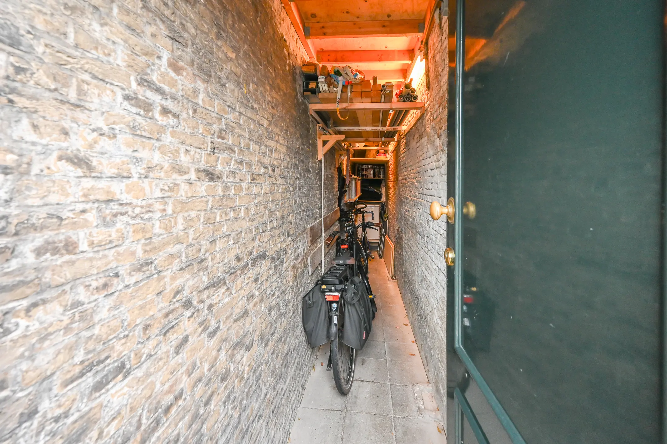 De zijkant van de woning is vanaf de voorzijde bereikbaar. Hier vind je een smalle diepe berging perfect voor het stallen van o.a. fietsen.