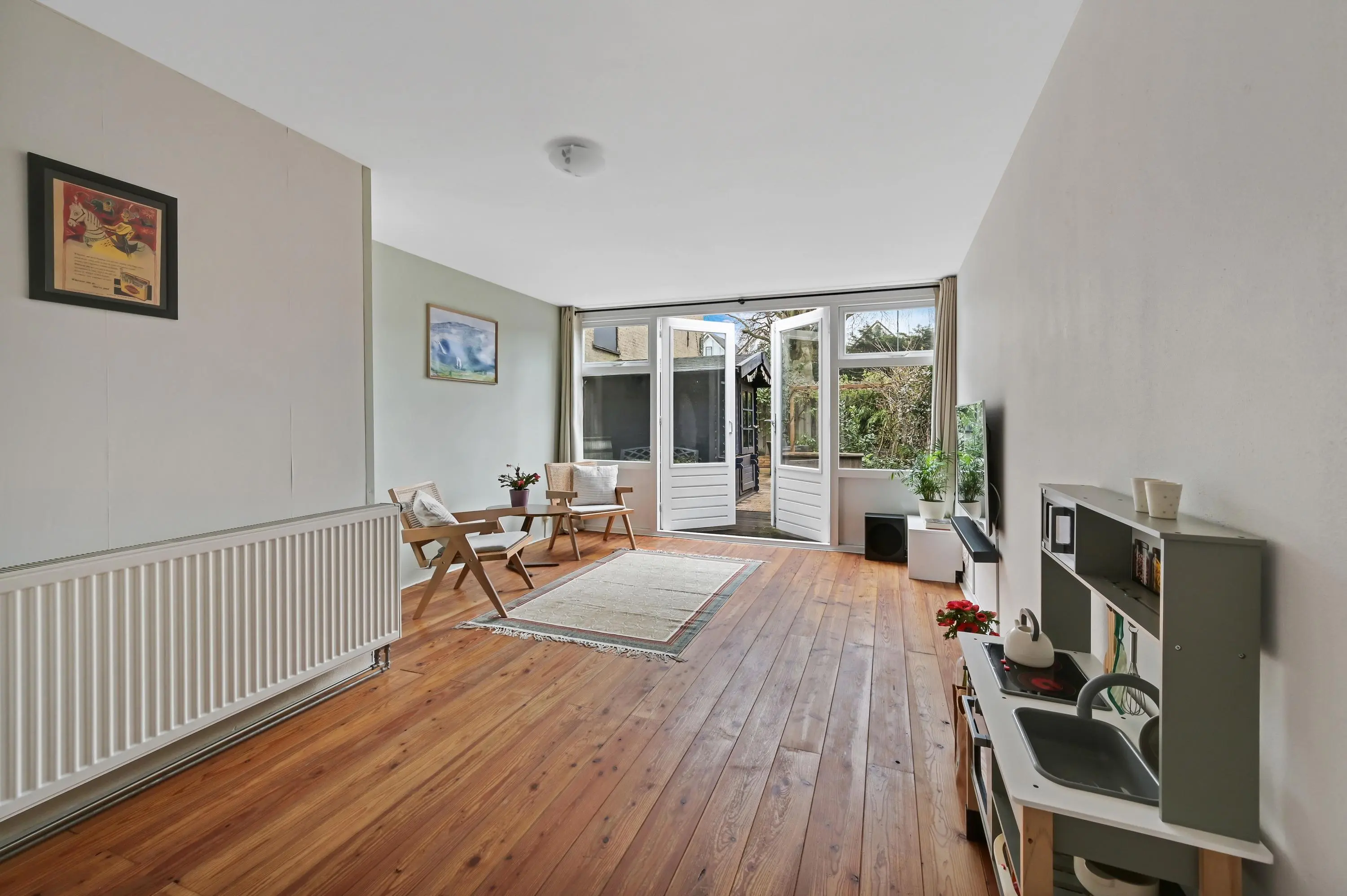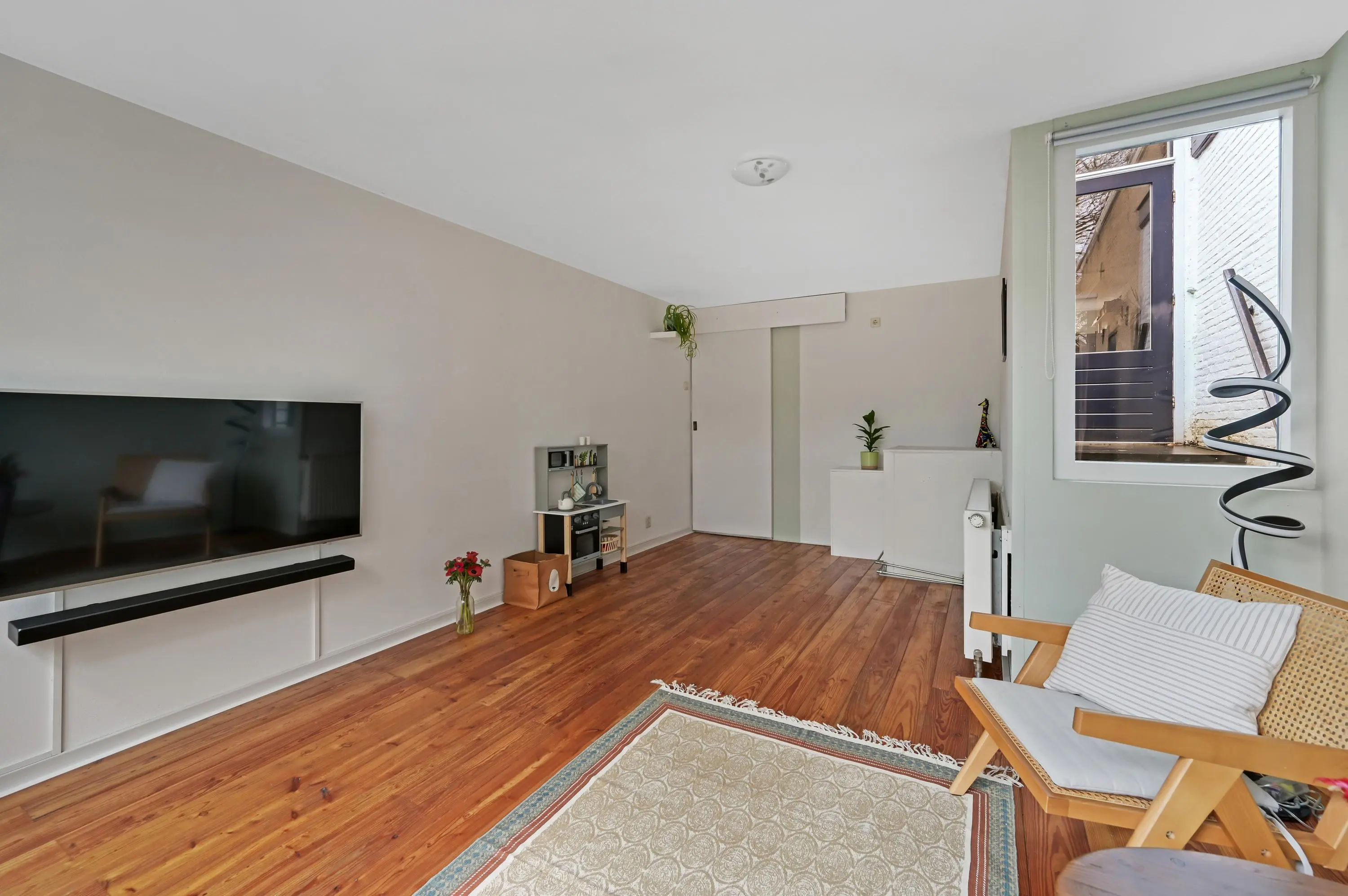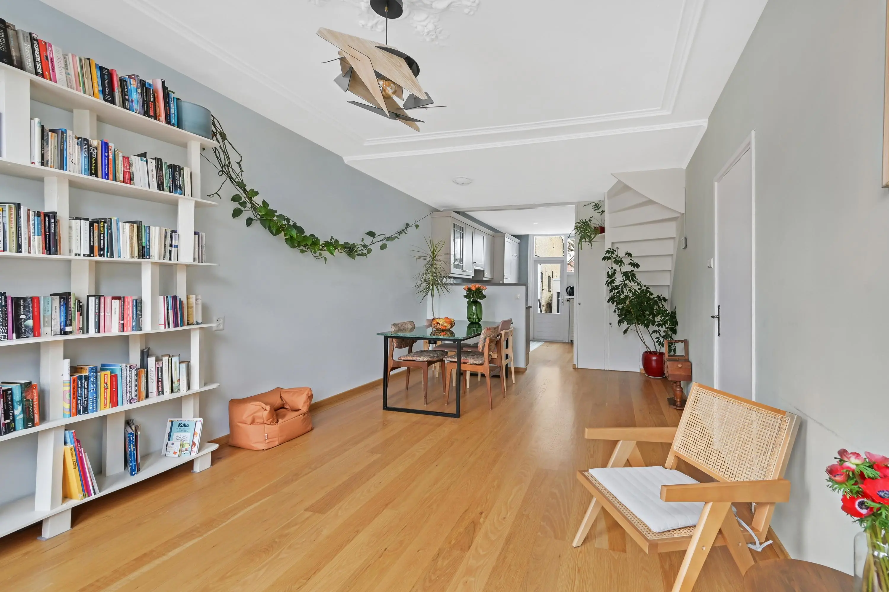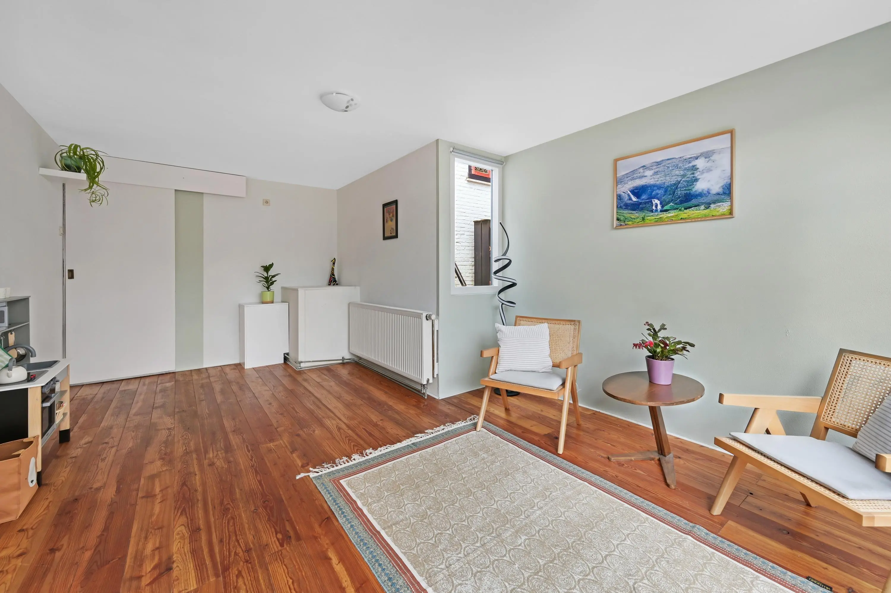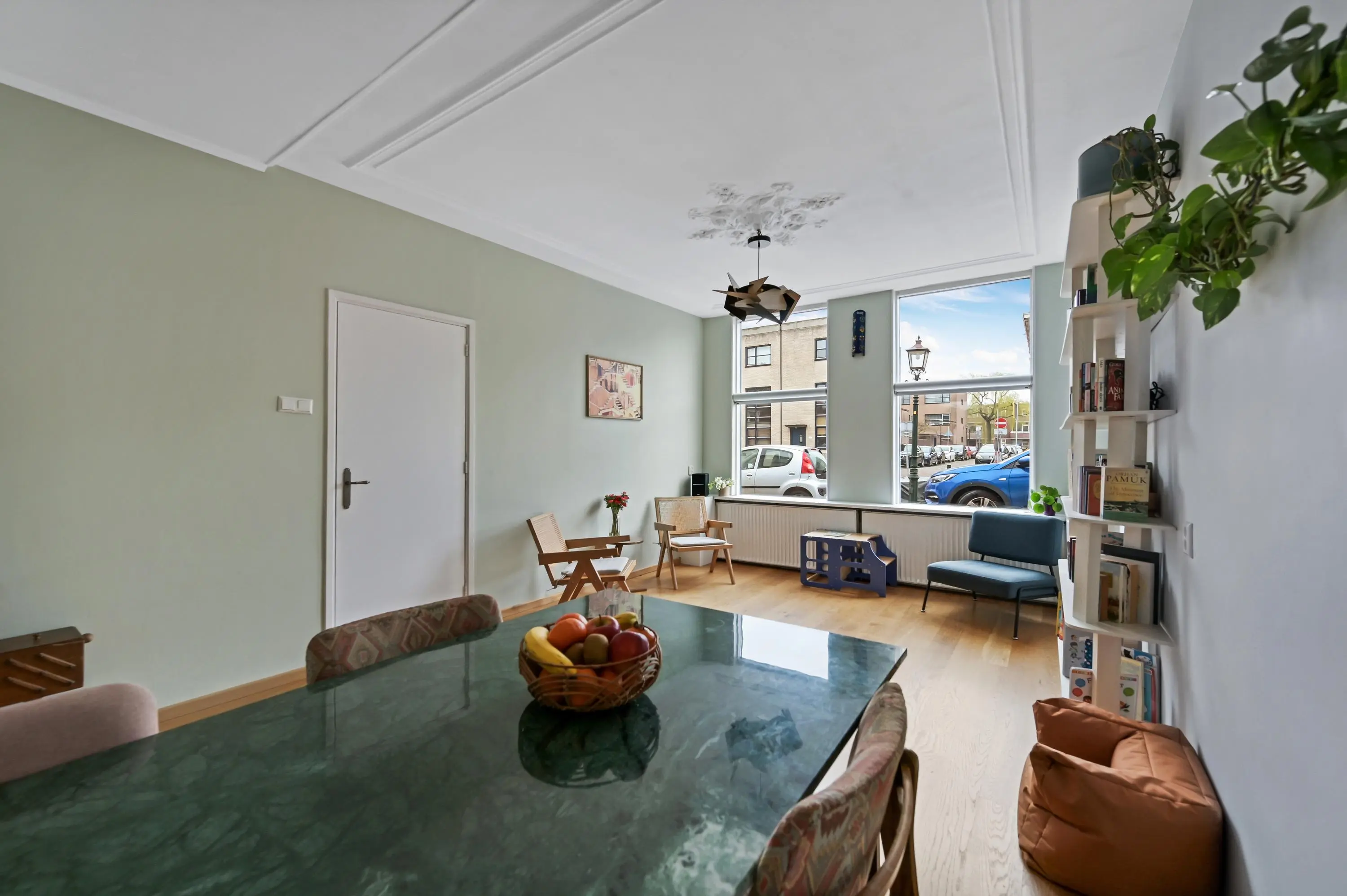 Via de entree kom je in de hal met meterkast en toegang tot de lichte en sfeervolle woonkamer met halfopen keuken. Aan de voorzijde zorgen de grote, kamerhoge ramen voor een prachtige lichtinval en een vrij uitzicht over de Noordvliet. Deze raampartijen dragen bovendien bij aan een aangename temperatuur in huis, doordat ze op zonnige dagen extra warmte binnenlaten.