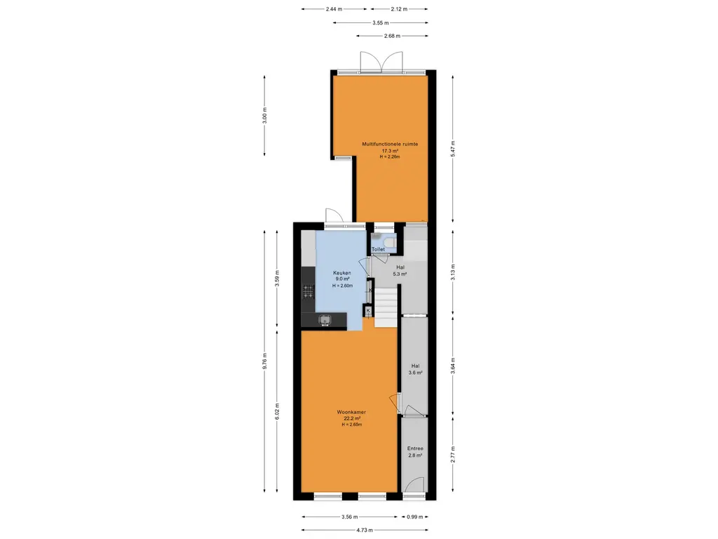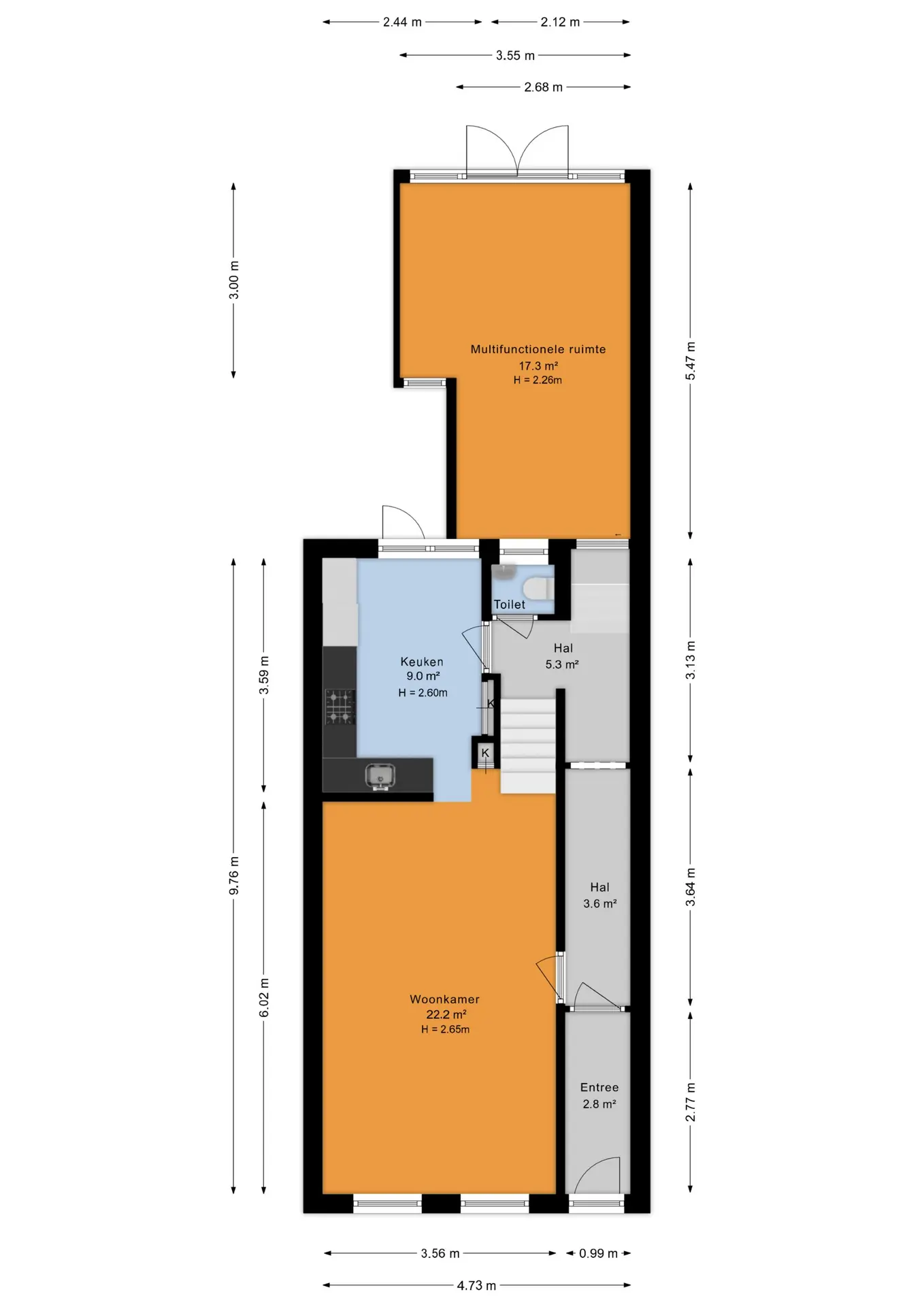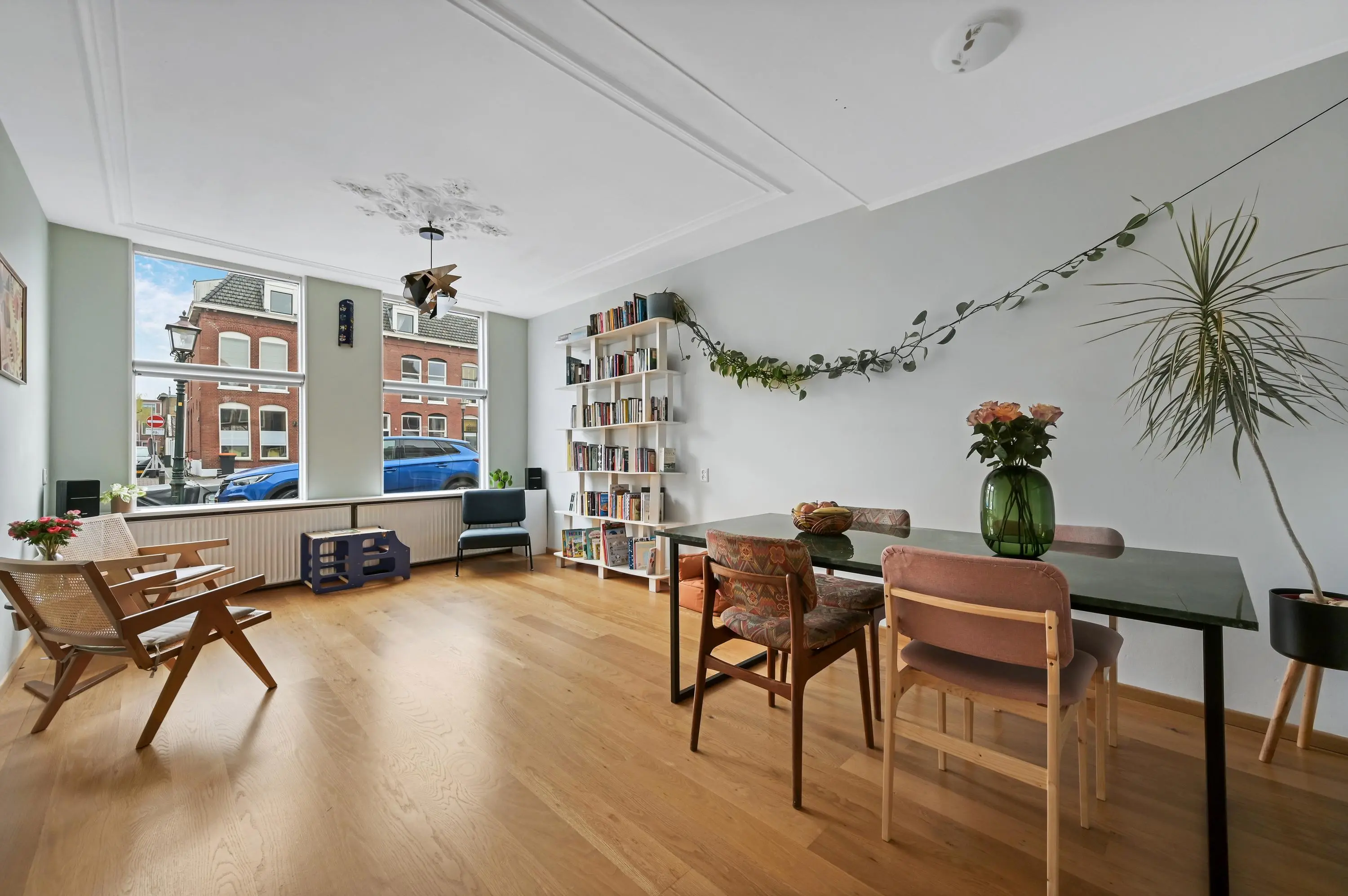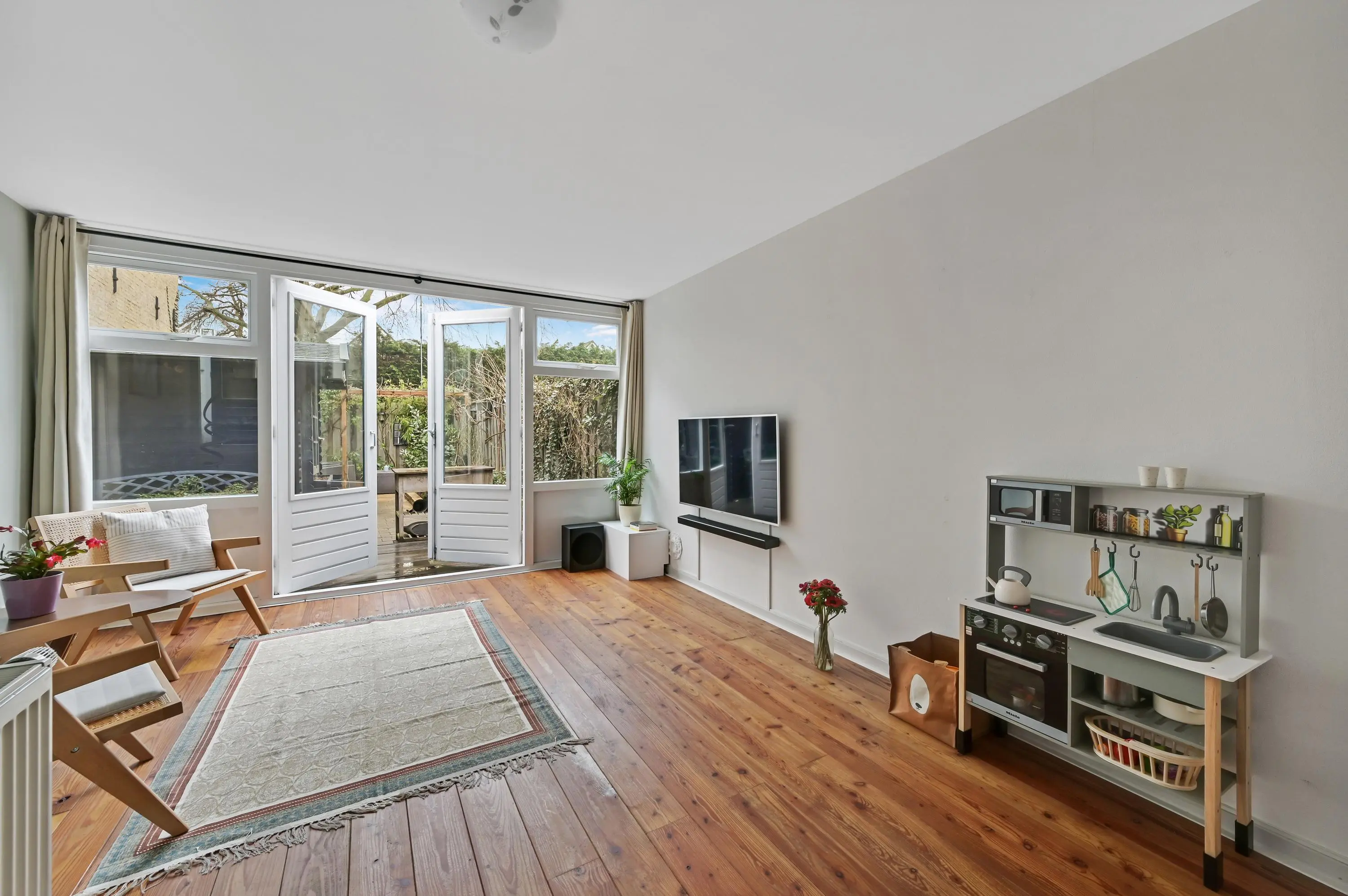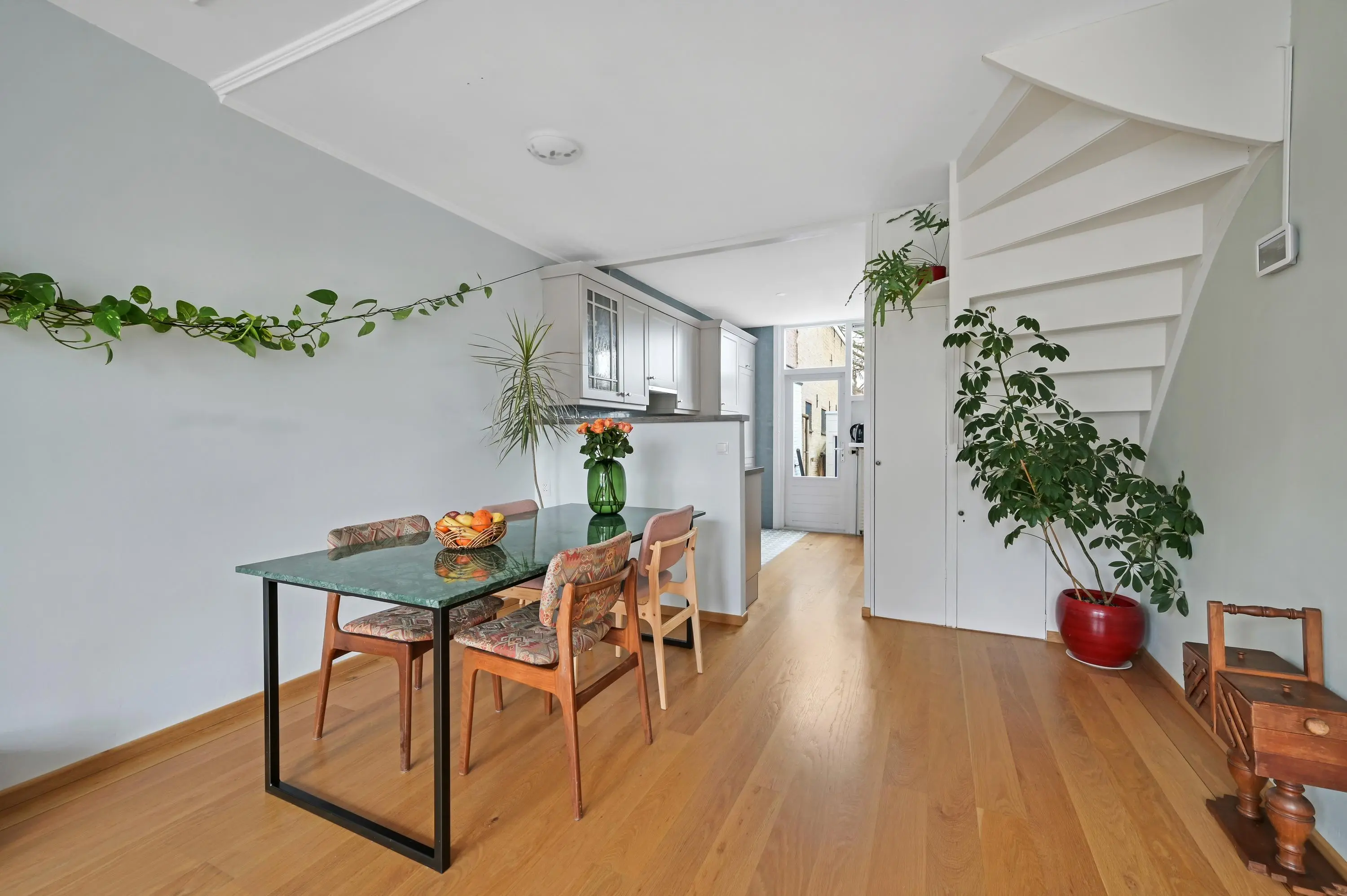 Via de entree kom je in de hal met meterkast en toegang tot de lichte en sfeervolle woonkamer met halfopen keuken. Aan de voorzijde zorgen de grote, kamerhoge ramen voor een prachtige lichtinval en een vrij uitzicht over de Noordvliet. Deze raampartijen dragen bovendien bij aan een aangename temperatuur in huis, doordat ze op zonnige dagen extra warmte binnenlaten.
