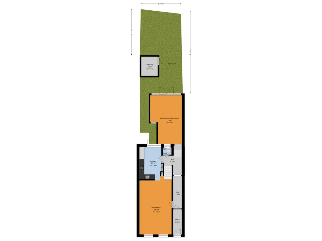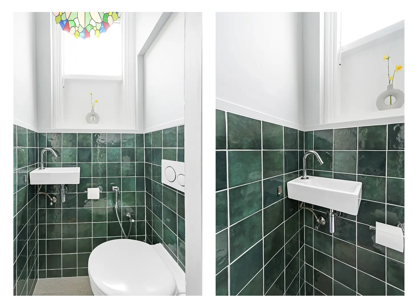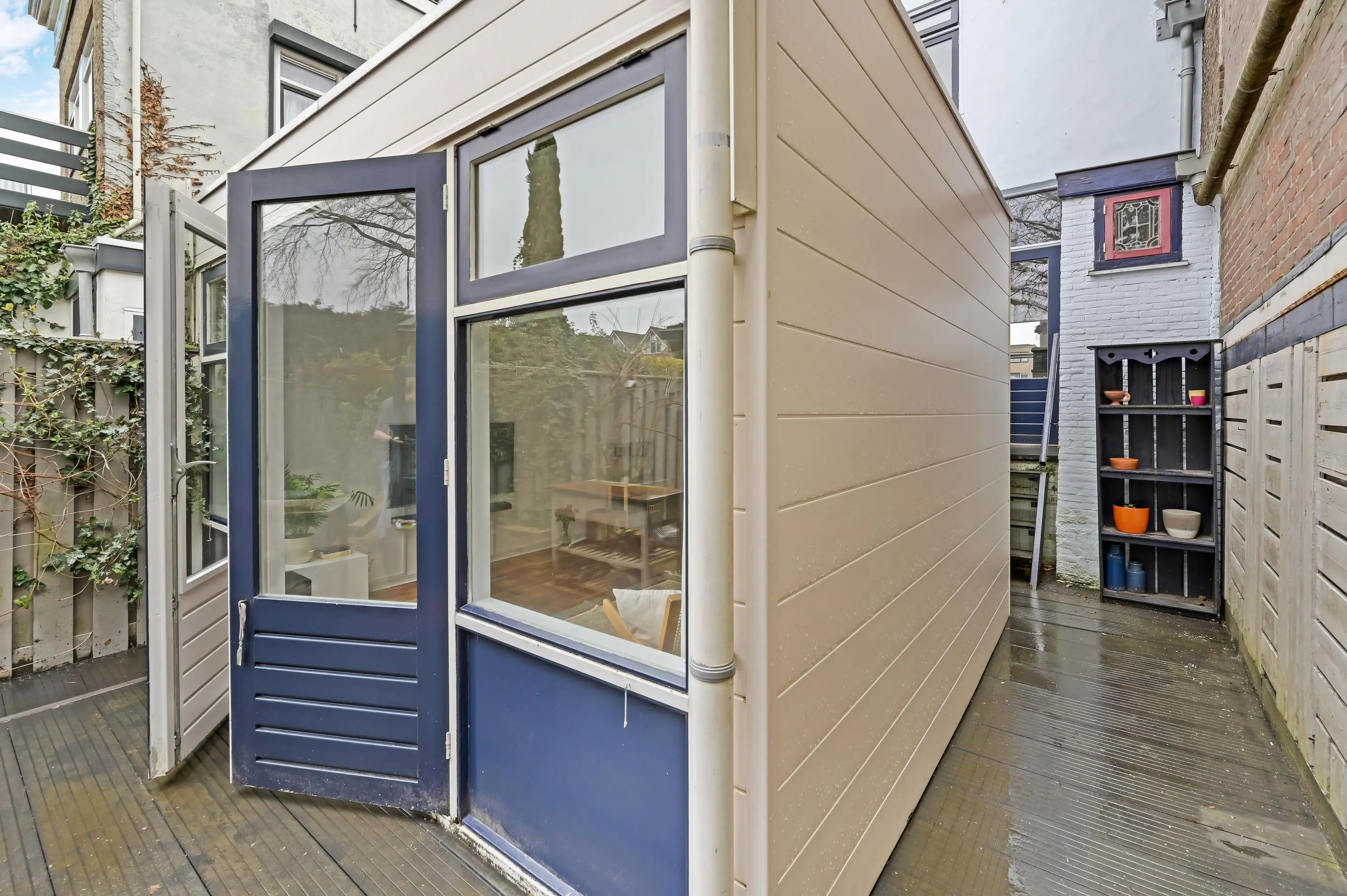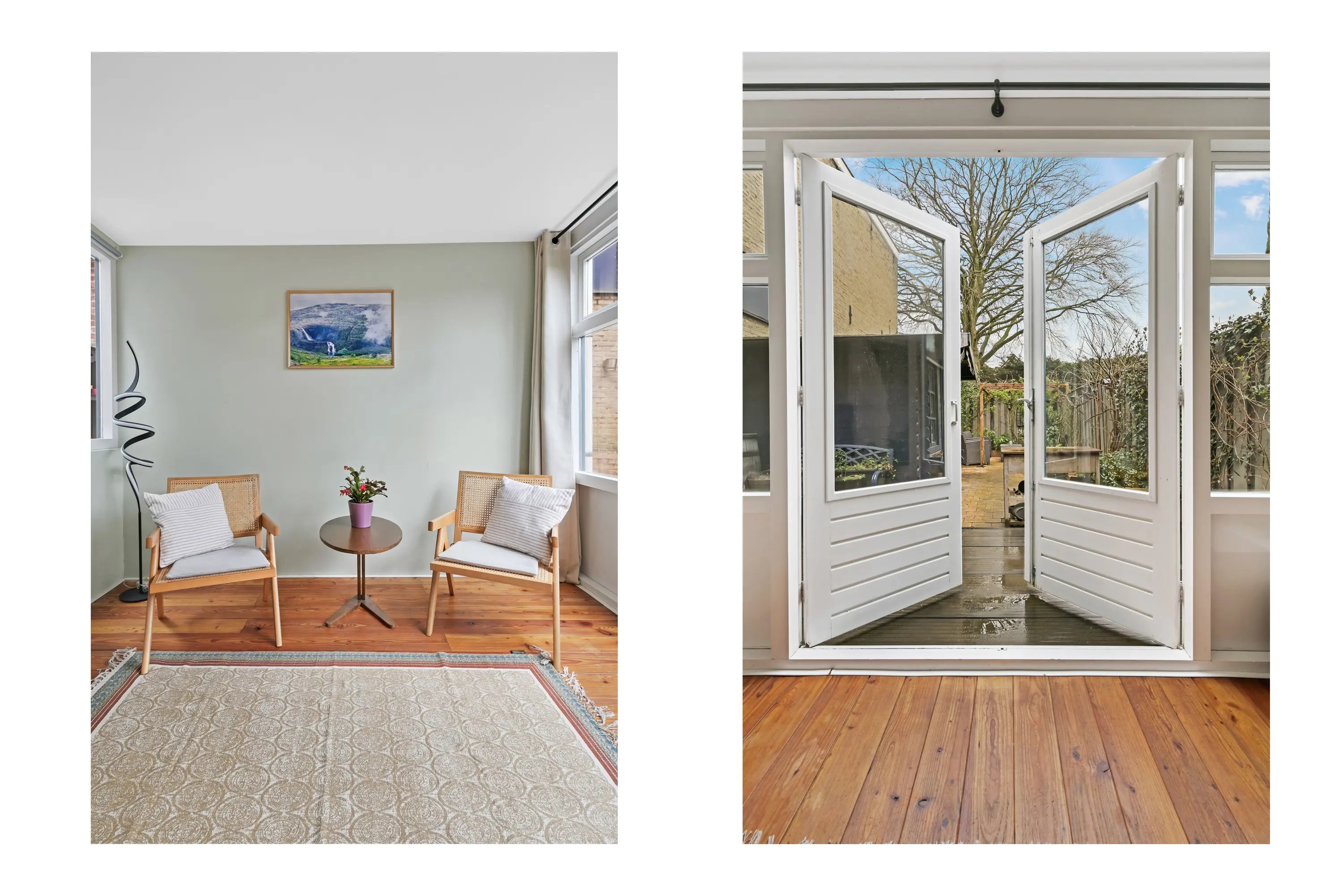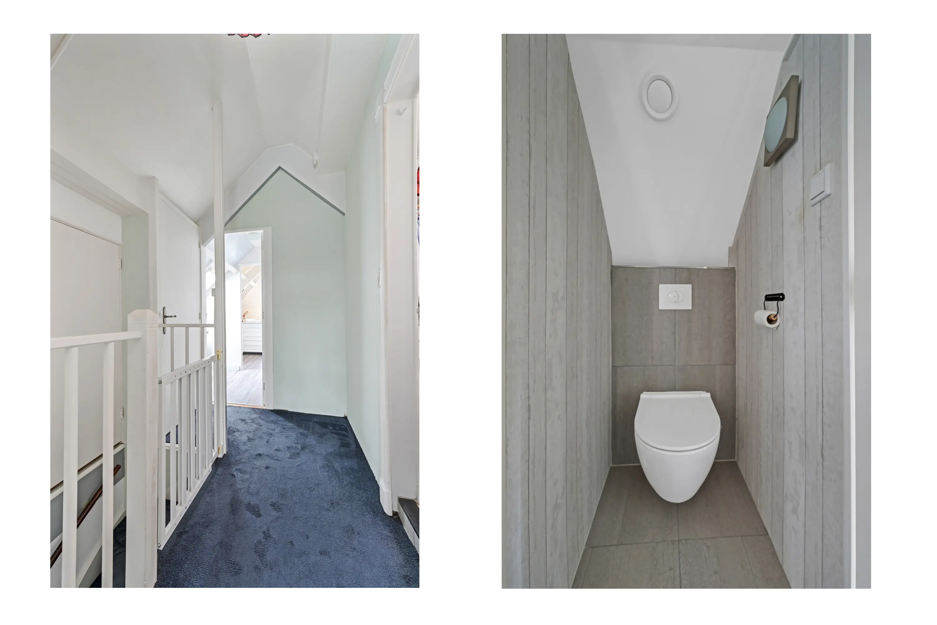 In de hal bevinden zich daarnaast twee vaste opbergkasten en het moderne toilet (2022), voorzien van wandcloset en bidetfunctie. Via een kleine trap bereik je de sfeervolle aanbouw, een veelzijdige ruimte die perfect kan dienen als slaap-, werk-, hobby- of tuinkamer. Deze ruimte biedt middels openslaande deuren direct toegang tot de achtertuin en vormt een heerlijke plek om het hele jaar door van binnen én buiten te genieten.