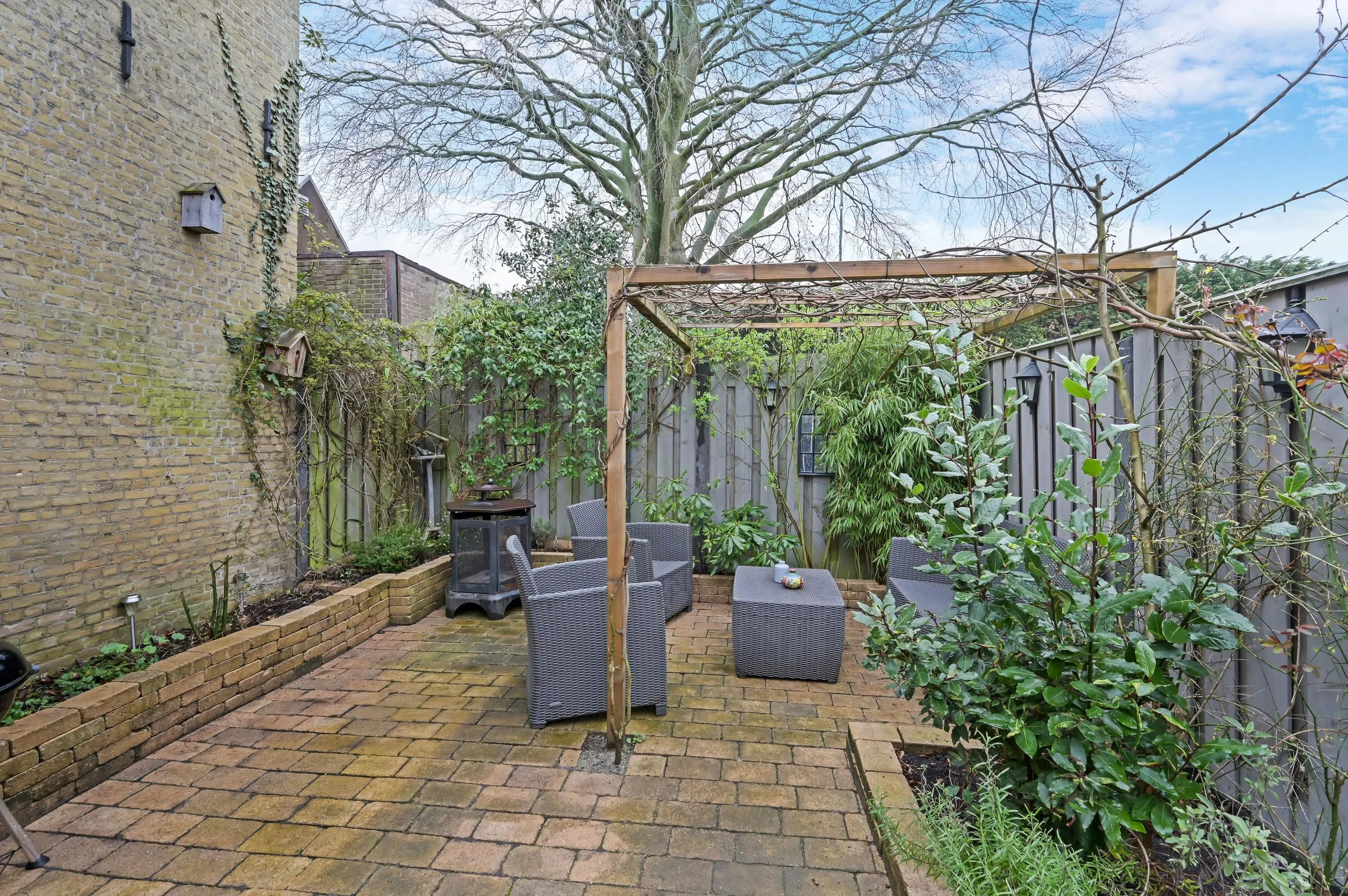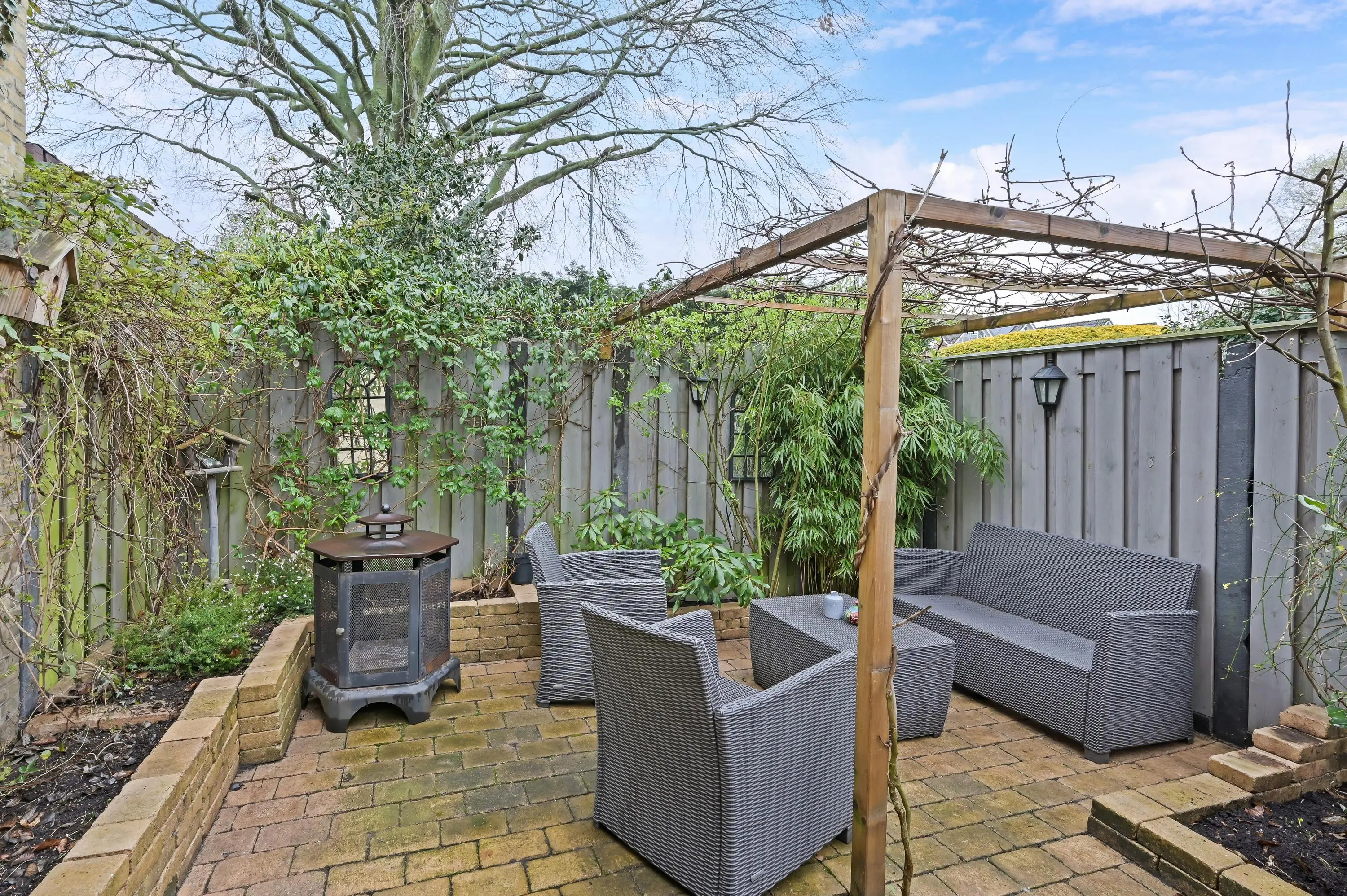 De achtertuin is een van de absolute pluspunten van deze woning. Deze is niet alleen verrassend ruim, maar ook bijzonder groen, sfeervol en met veel privacy. Hier geniet je van het buitenleven van het vroege voorjaar tot diep in het najaar: van maart tot oktober is er altijd zon in de tuin, terwijl je na 15:00 uur heerlijk kunt ontspannen in de avondzon bij de zithoek.