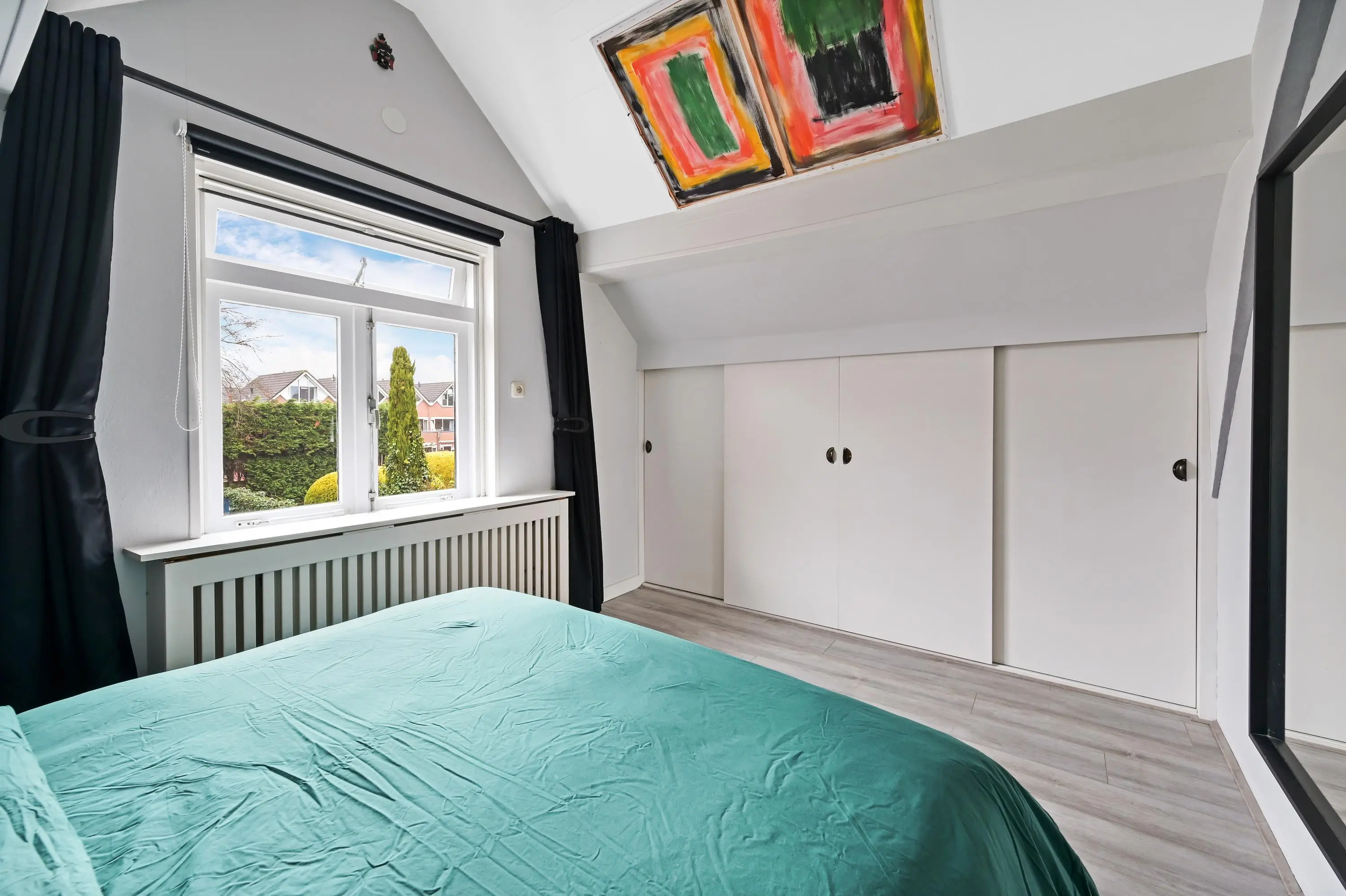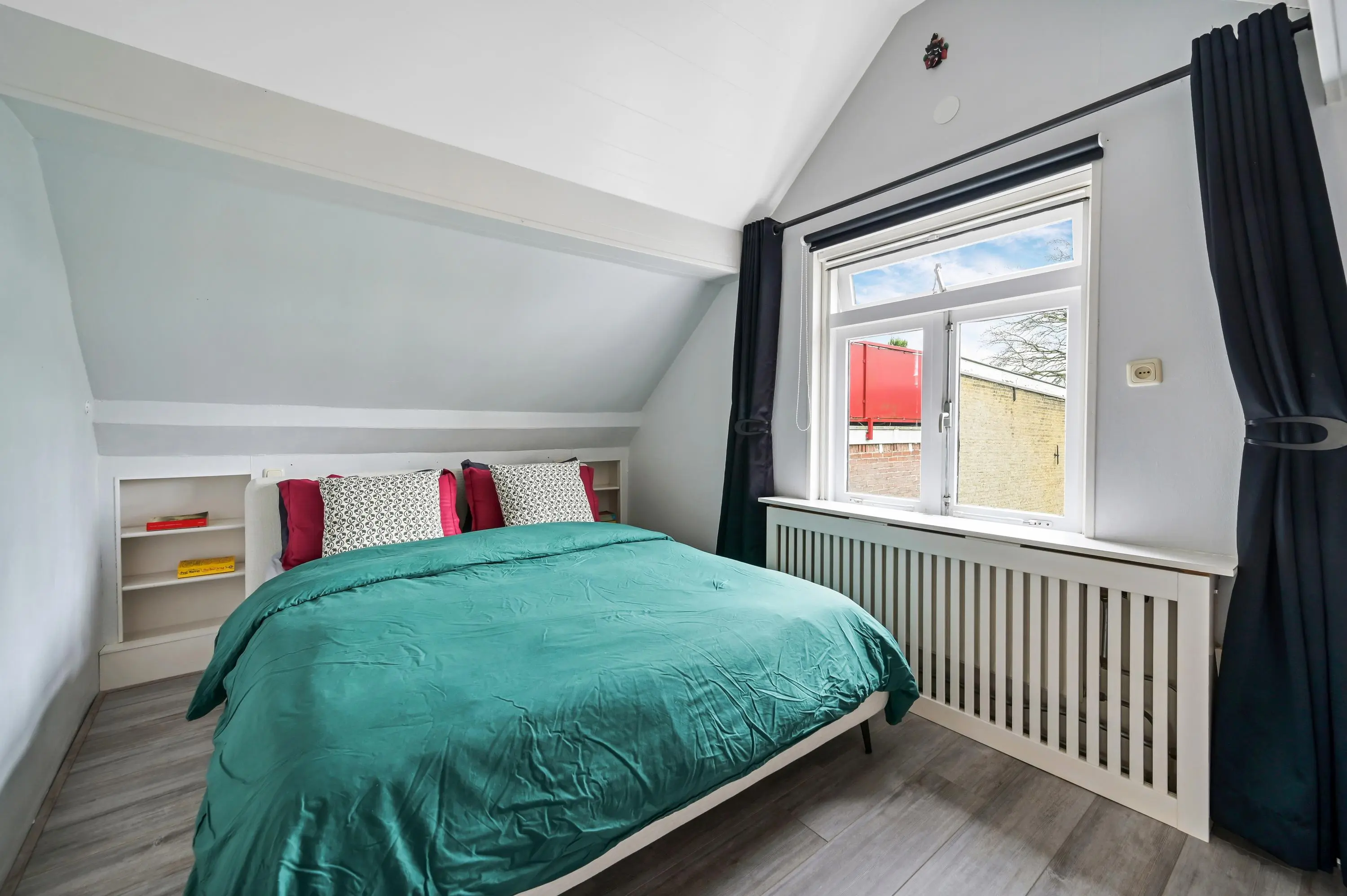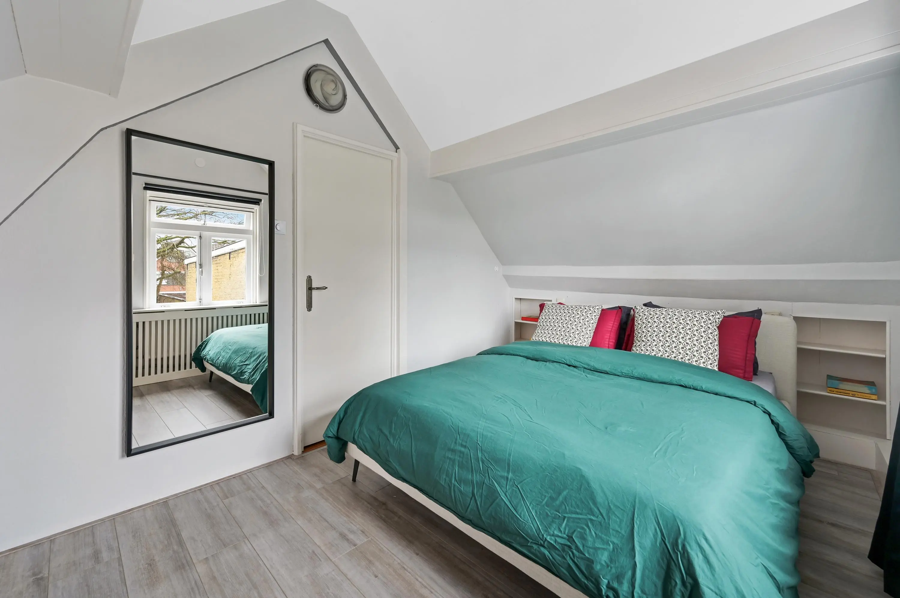 De slaapkamer aan de achterzijde is rustig gelegen en voorzien van een ruime vaste garderobekast.
