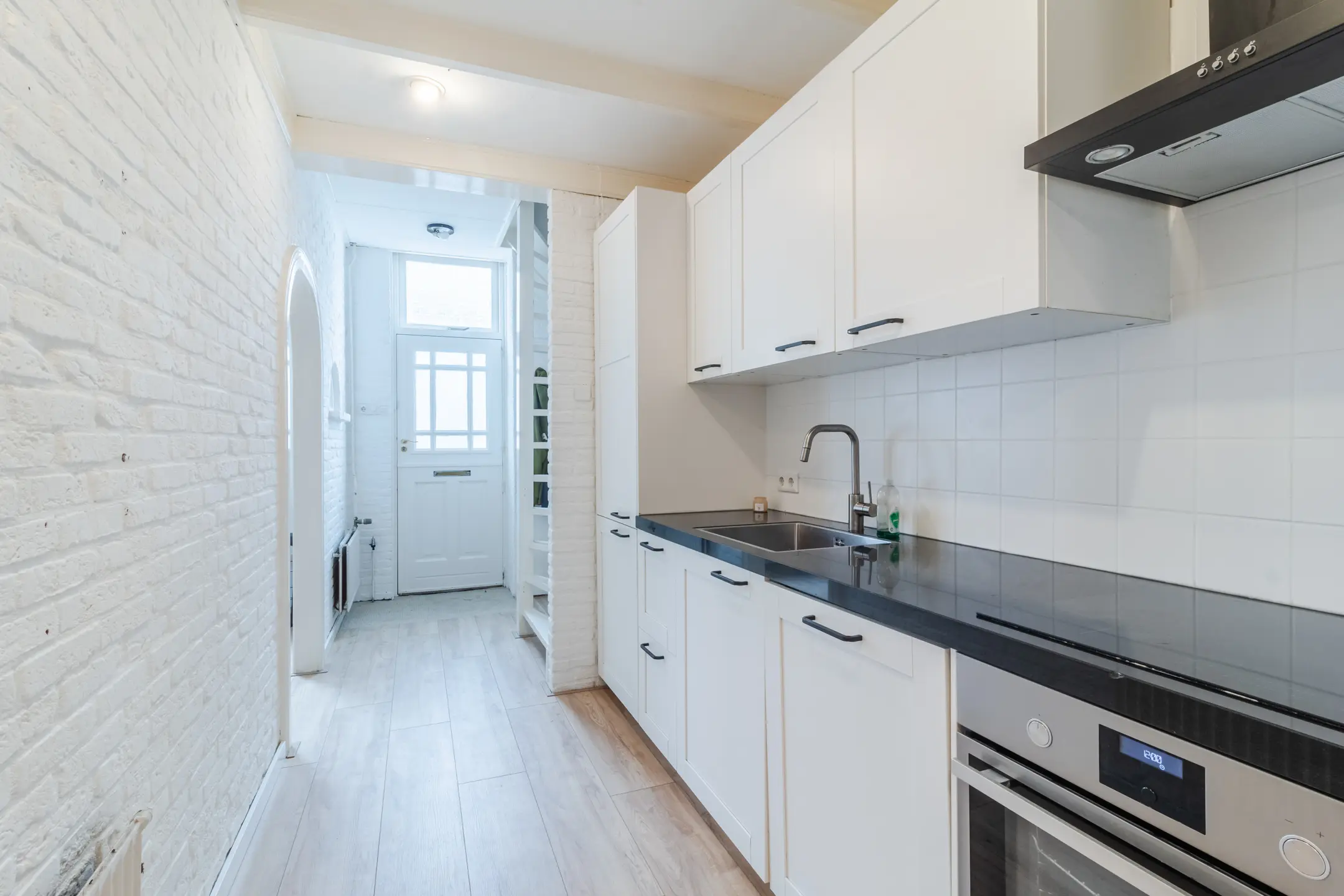 De open keuken (2018) is modern afgewerkt met een natuurstenen werkblad en uitgerust met alle benodigde inbouwapparatuur: een 4-pits inductiekookplaat, RVS afzuigkap, koel-/vriescombinatie, vaatwasser en elektrische oven.