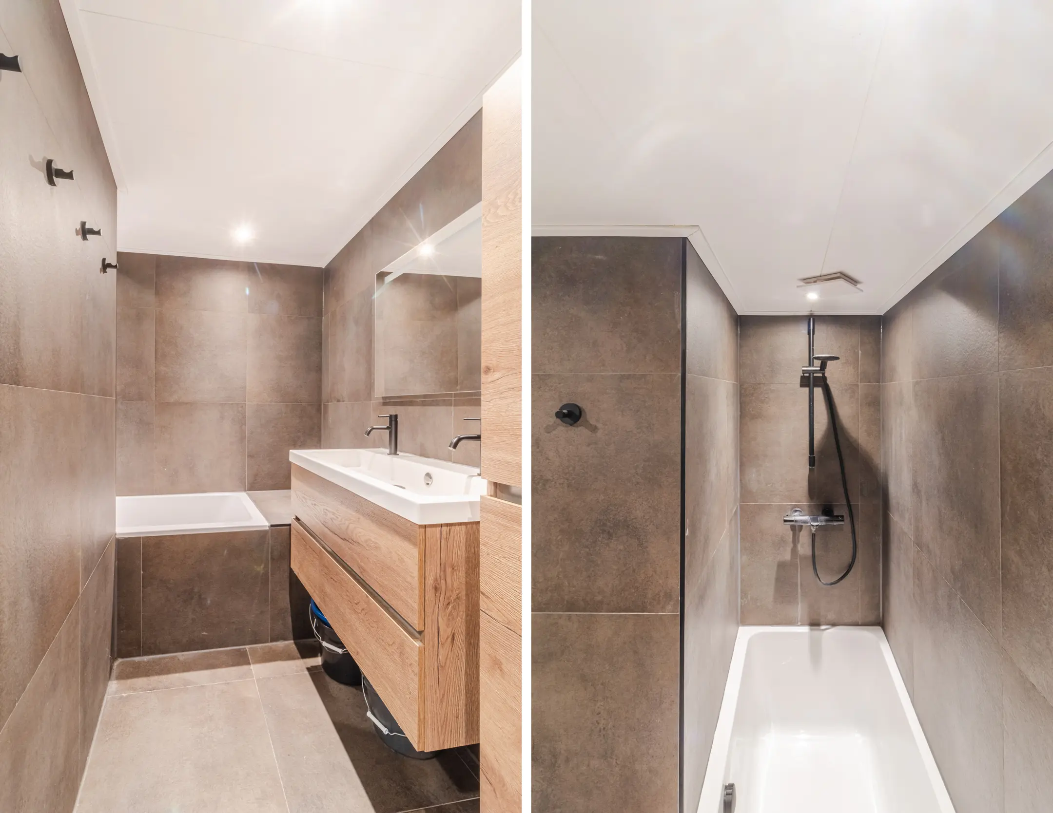 Achter de keuken bevindt zich de handige bijkeuken met lichtkoepel, en de strak afgewerkte badkamer. De badkamer is in 2023 vernieuwd en voorzien van een ruime ligbad/douche, dubbele wastafel en een zwevend toilet.
