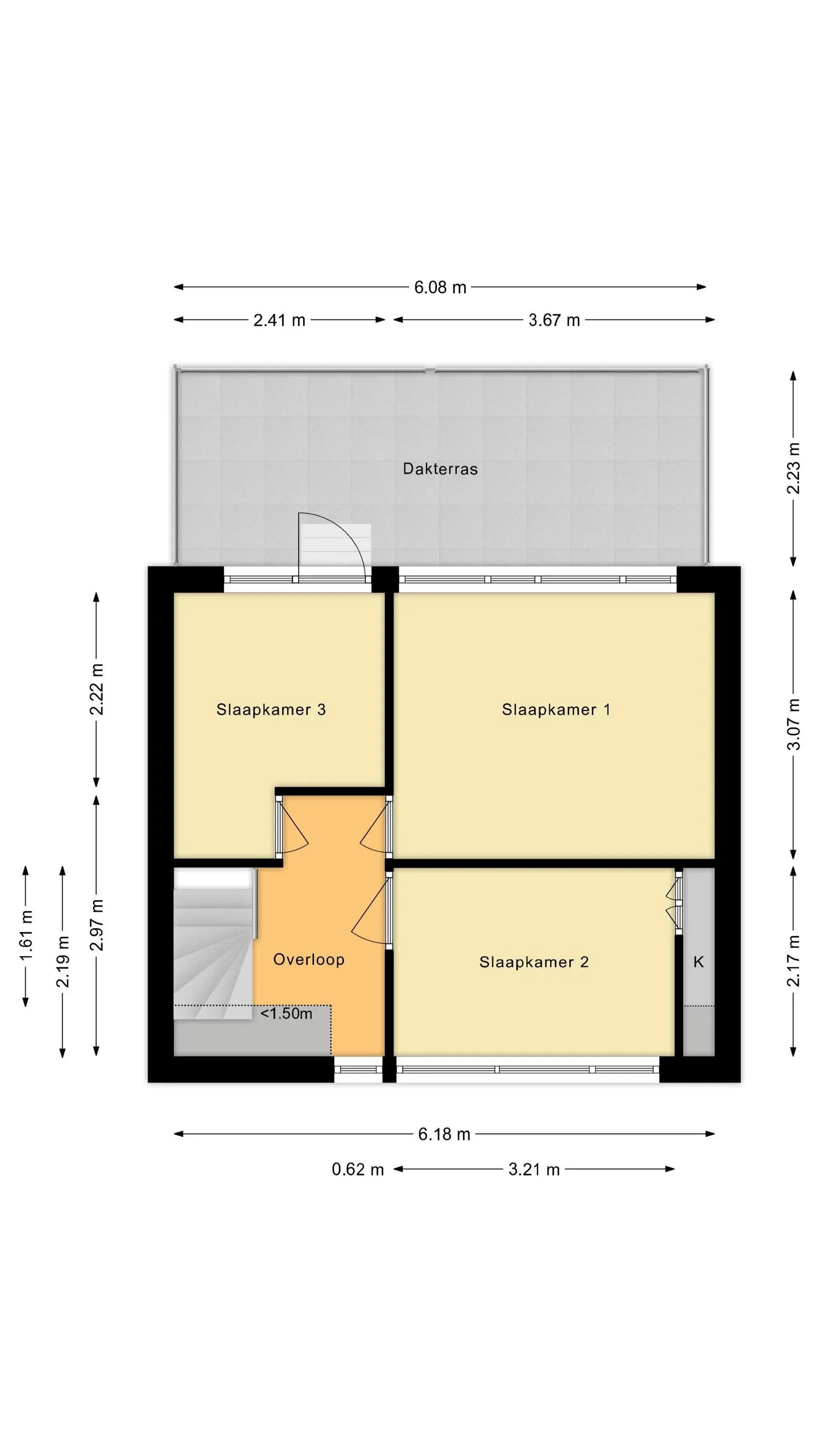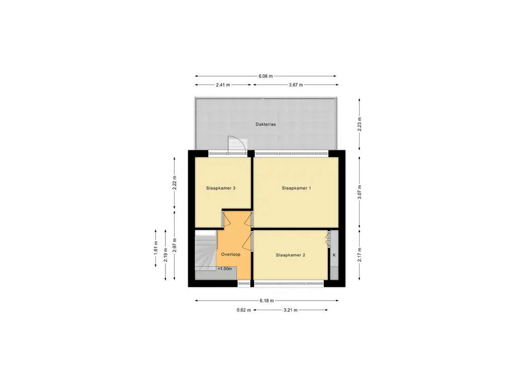 Boven kom je op de overloop met toegang tot drie kamers. Aan de voorzijde ligt een gezellige slaapkamer met vaste kast. Aan de achterzijde vind je de royale hoofdslaapkamer én een extra kamer die je kunt gebruiken als derde slaapkamer, inloopkast of thuiswerkplek. Vanuit deze kamer stap je zo het heerlijke dakterras op. Dankzij de ligging op het zuidwesten geniet je hier volop van de middag- en avondzon!