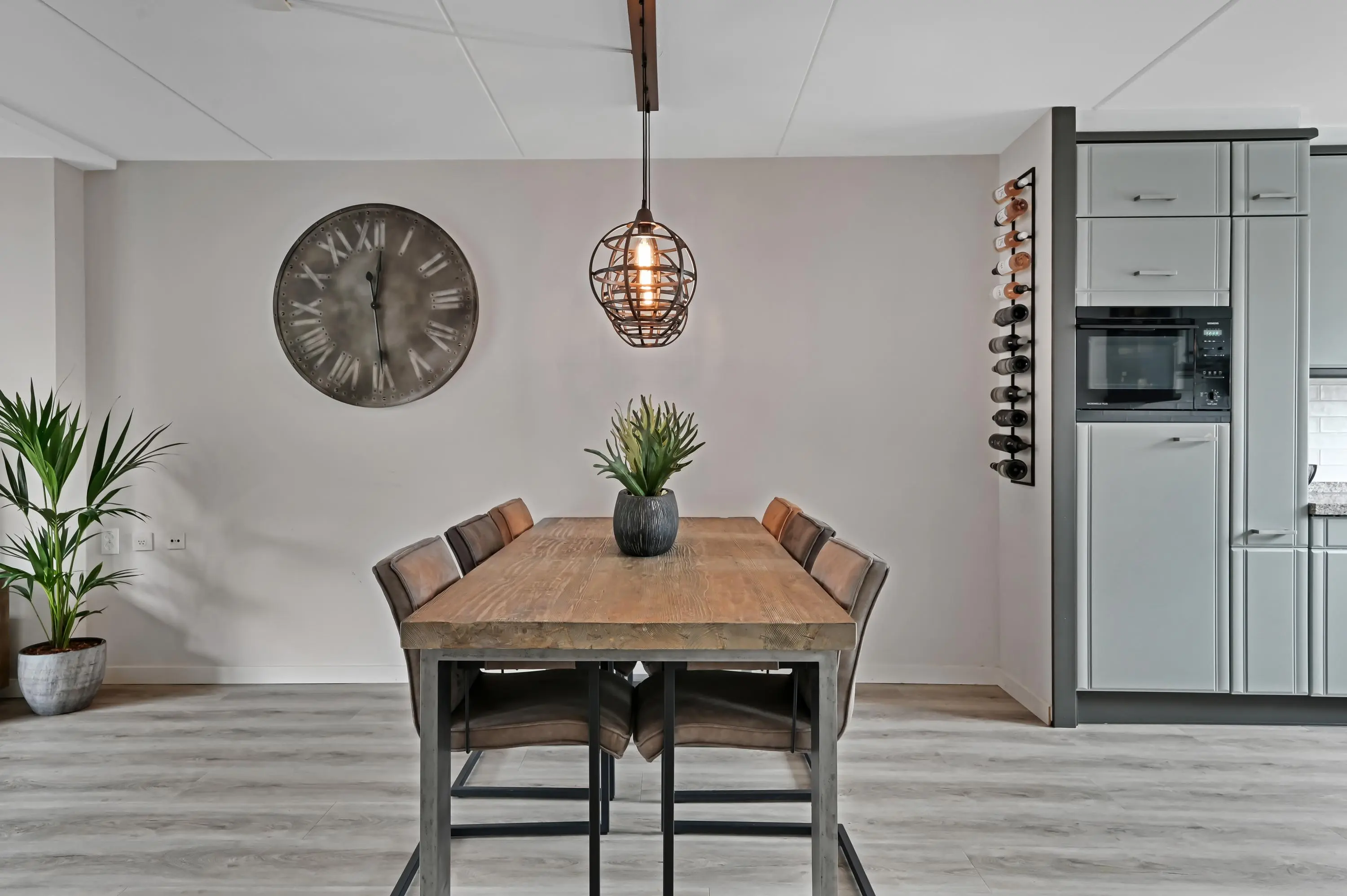 Vanuit de woonkamer bereikt u via een loopdeur het zogenoemde ‘klompenhok’: een extra bergruimte die ideaal is voor het tegenhouden van kou en vuil schoeisel.