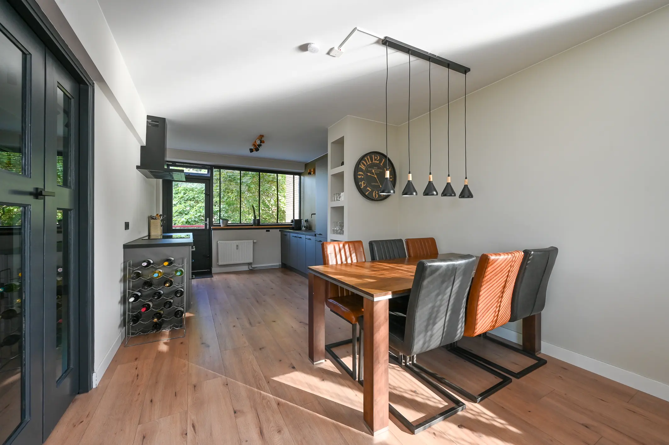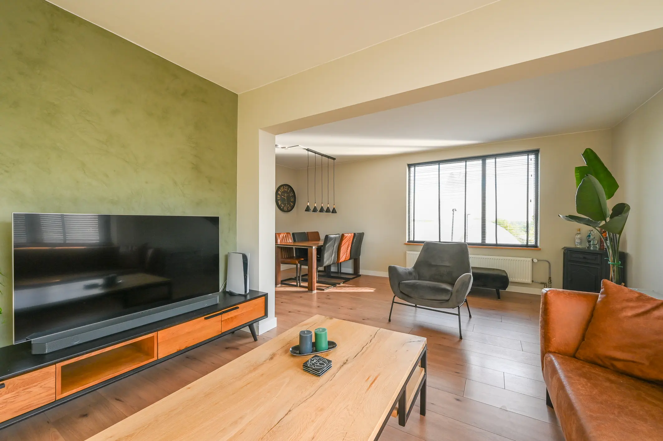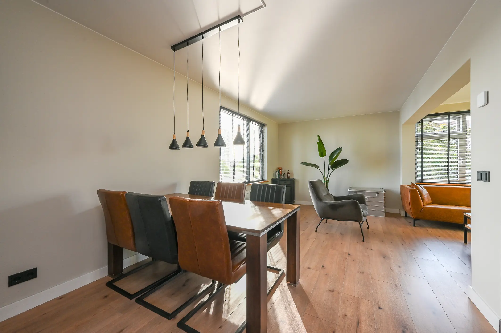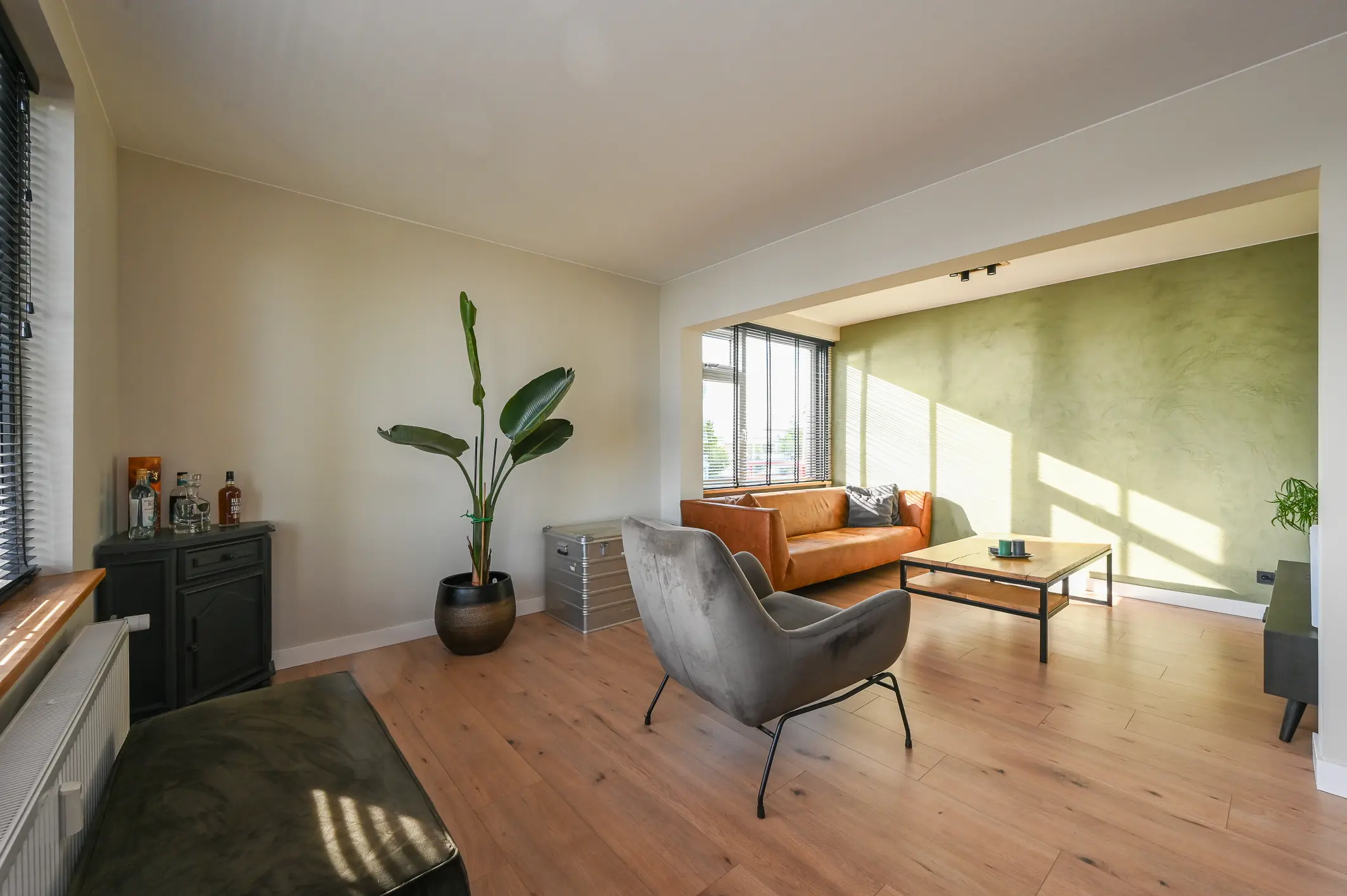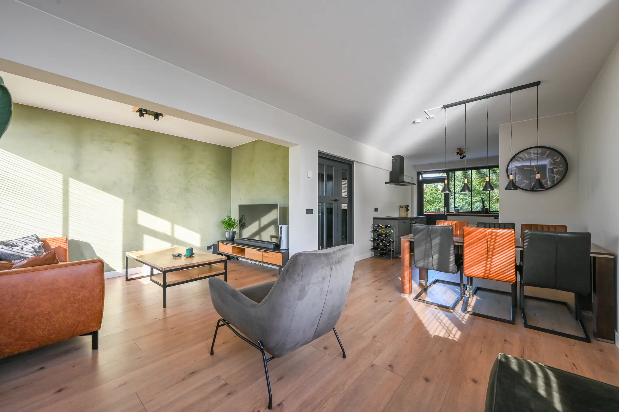 De L-vormige woonkamer voelt direct ruim en licht aan – dankzij de hoekligging komt er van drie kanten daglicht binnen. Een fijne plek voor een grote eettafel én een comfortabele zithoek.