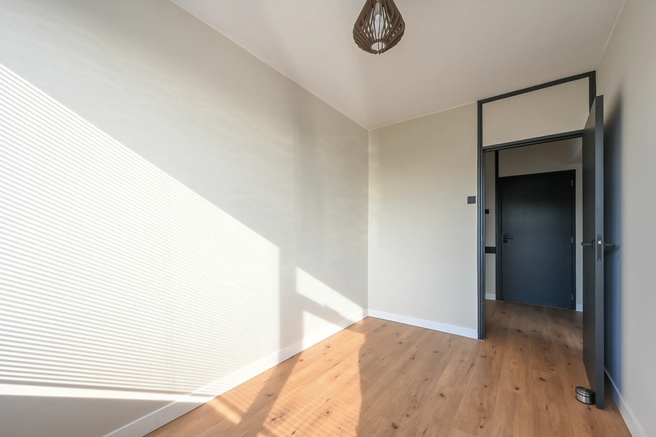 De slaapkamer aan de voorzijde is ideaal als werkkamer, kledingkamer of kinderkamer. Aan de achterzijde liggen twee ruime slaapkamers, waarvan de grootste (hoekligging) perfect als master bedroom – extra licht en met een vaste kast.