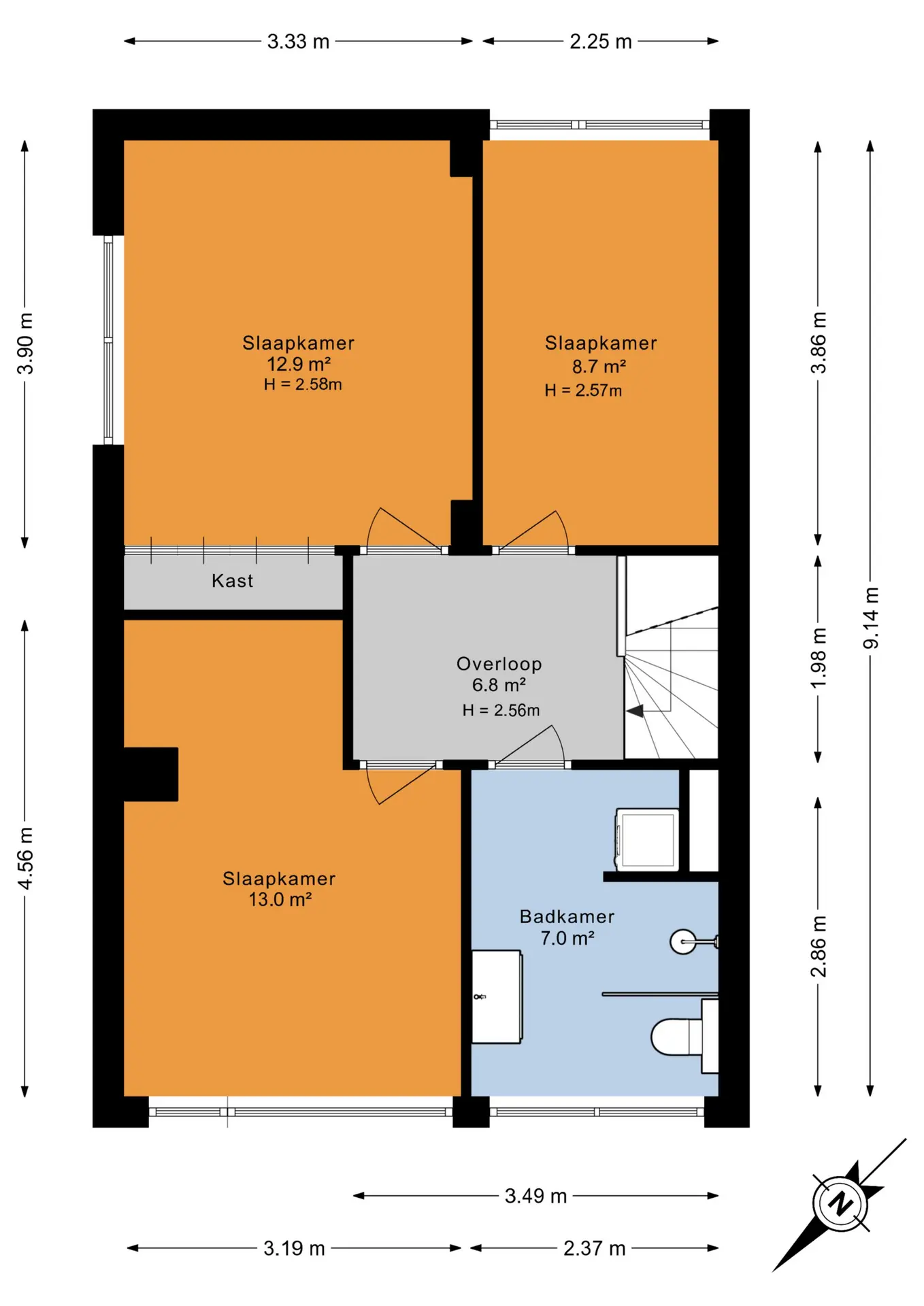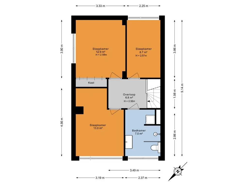 Via de trap kom je op de slaapverdieping met drie kamers en de badkamer.
