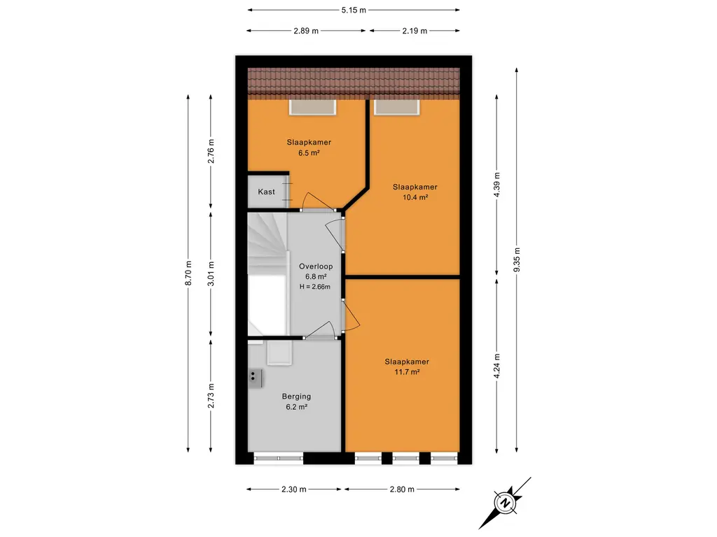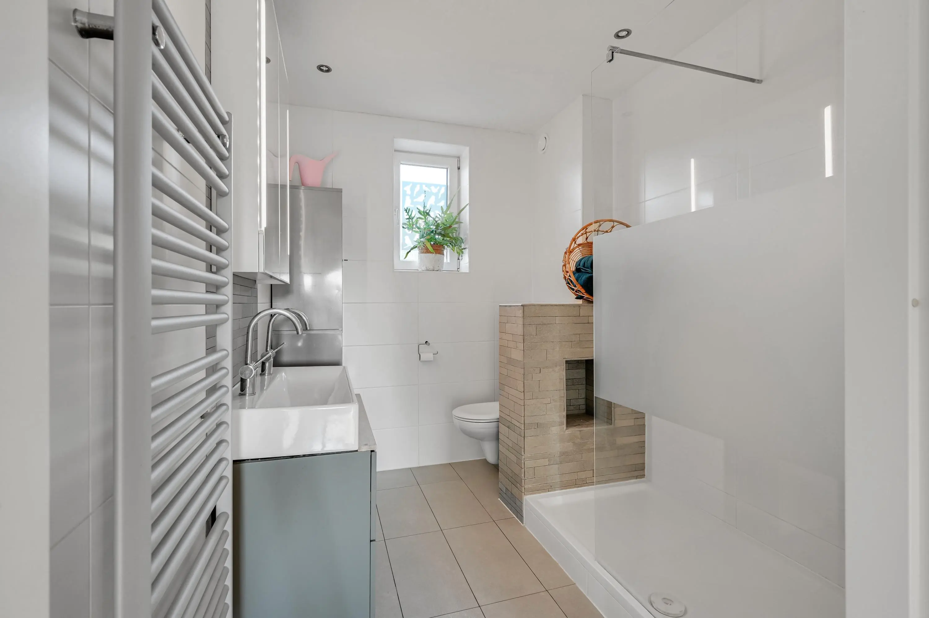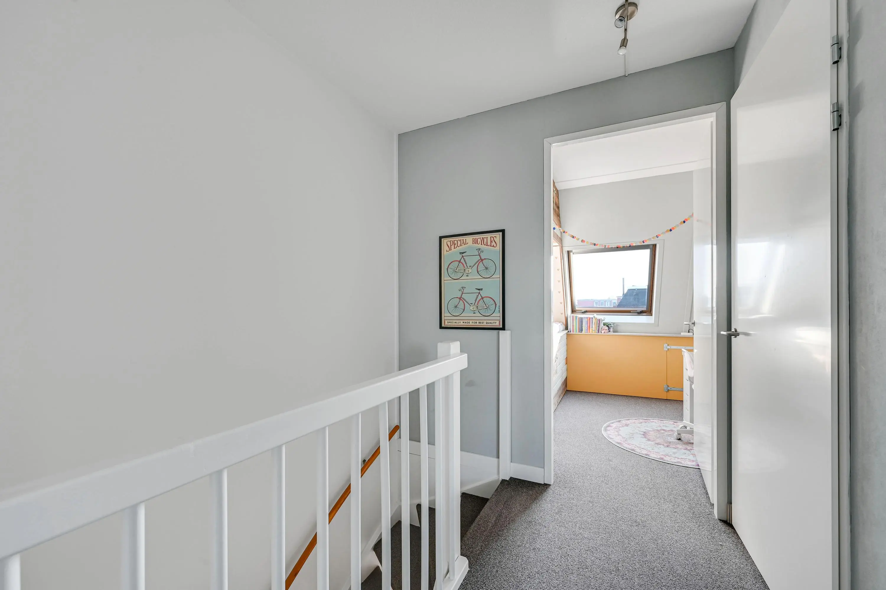 De tweede verdieping is praktisch én ruim ingedeeld. Aan de achterzijde bevinden zich twee slaapkamers, beide voorzien van een dakraam waardoor er veel daglicht binnenvalt. Aan de voorzijde ligt een derde slaapkamer. Daarnaast is er een riante wasruimte met aansluitingen voor de wasmachine en de opstelling van de cv-combiketel. Dankzij de extra ramen is ook deze ruimte verrassend licht en comfortabel in gebruik.