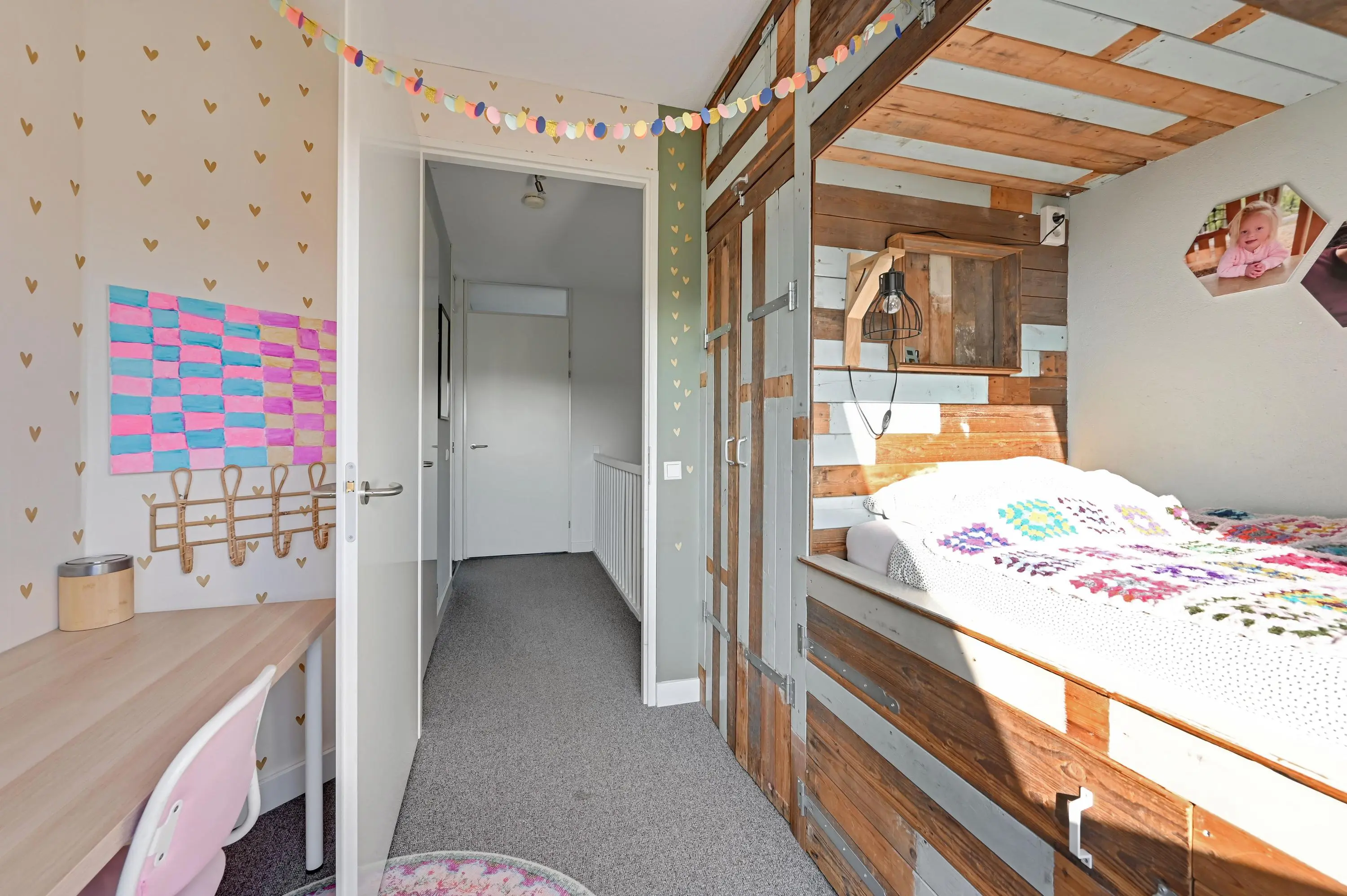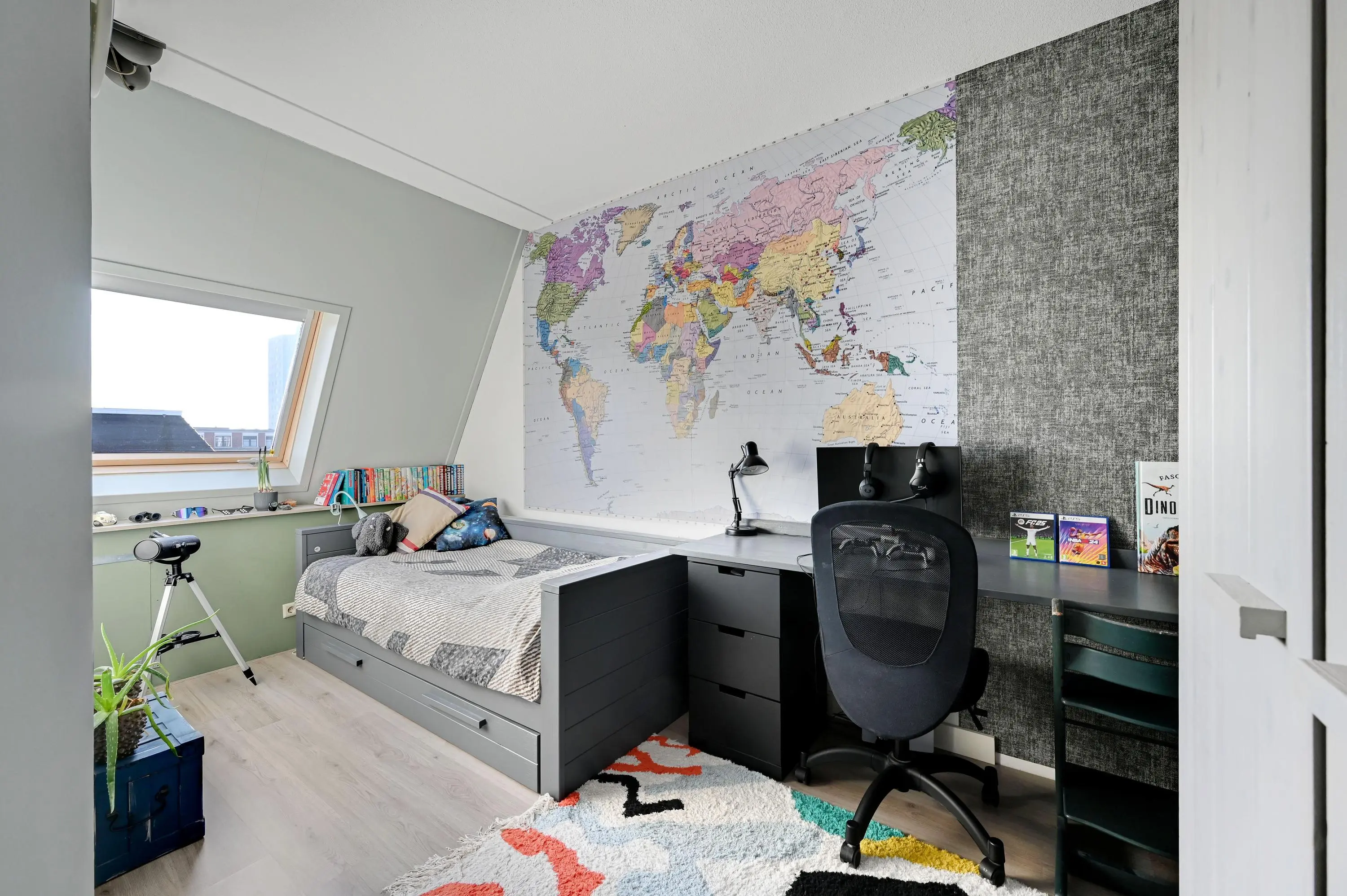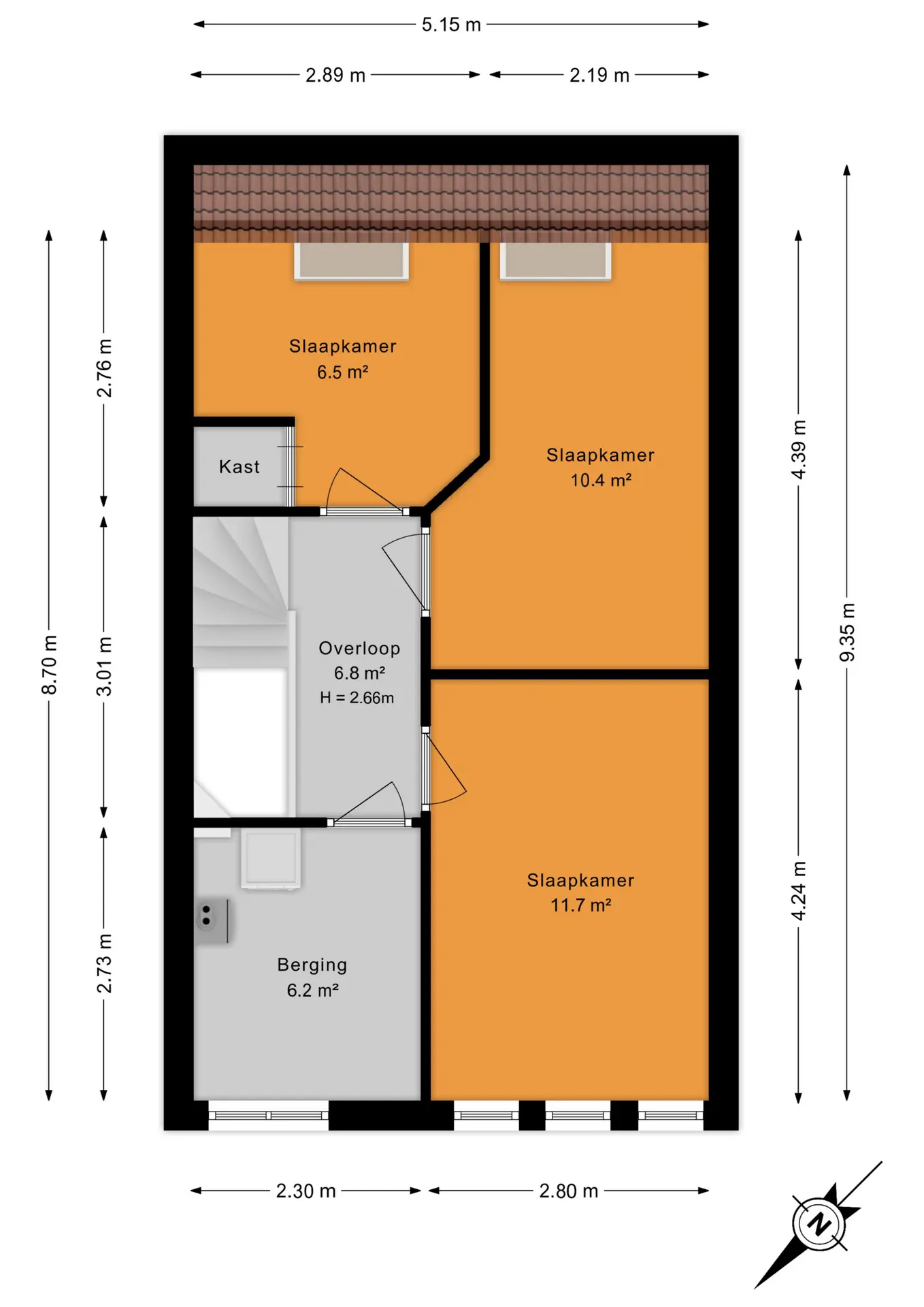 De tweede verdieping is praktisch én ruim ingedeeld. Aan de achterzijde bevinden zich twee slaapkamers, beide voorzien van een dakraam waardoor er veel daglicht binnenvalt. Aan de voorzijde ligt een derde slaapkamer. Daarnaast is er een riante wasruimte met aansluitingen voor de wasmachine en de opstelling van de cv-combiketel. Dankzij de extra ramen is ook deze ruimte verrassend licht en comfortabel in gebruik.