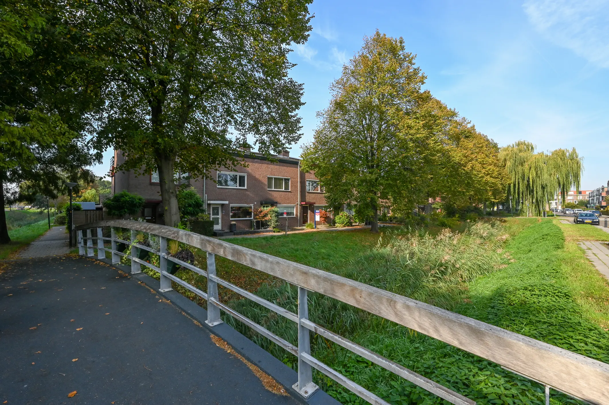 Je bereikt de woning via een brede stoep in een open en ruim opgezette wijk. Aan de voorzijde kijk je vrij weg over het water – een rustige en groene entree met een blik op de nog werkzame korenmolen ‘de Hoop’, gebouwd in 1690.